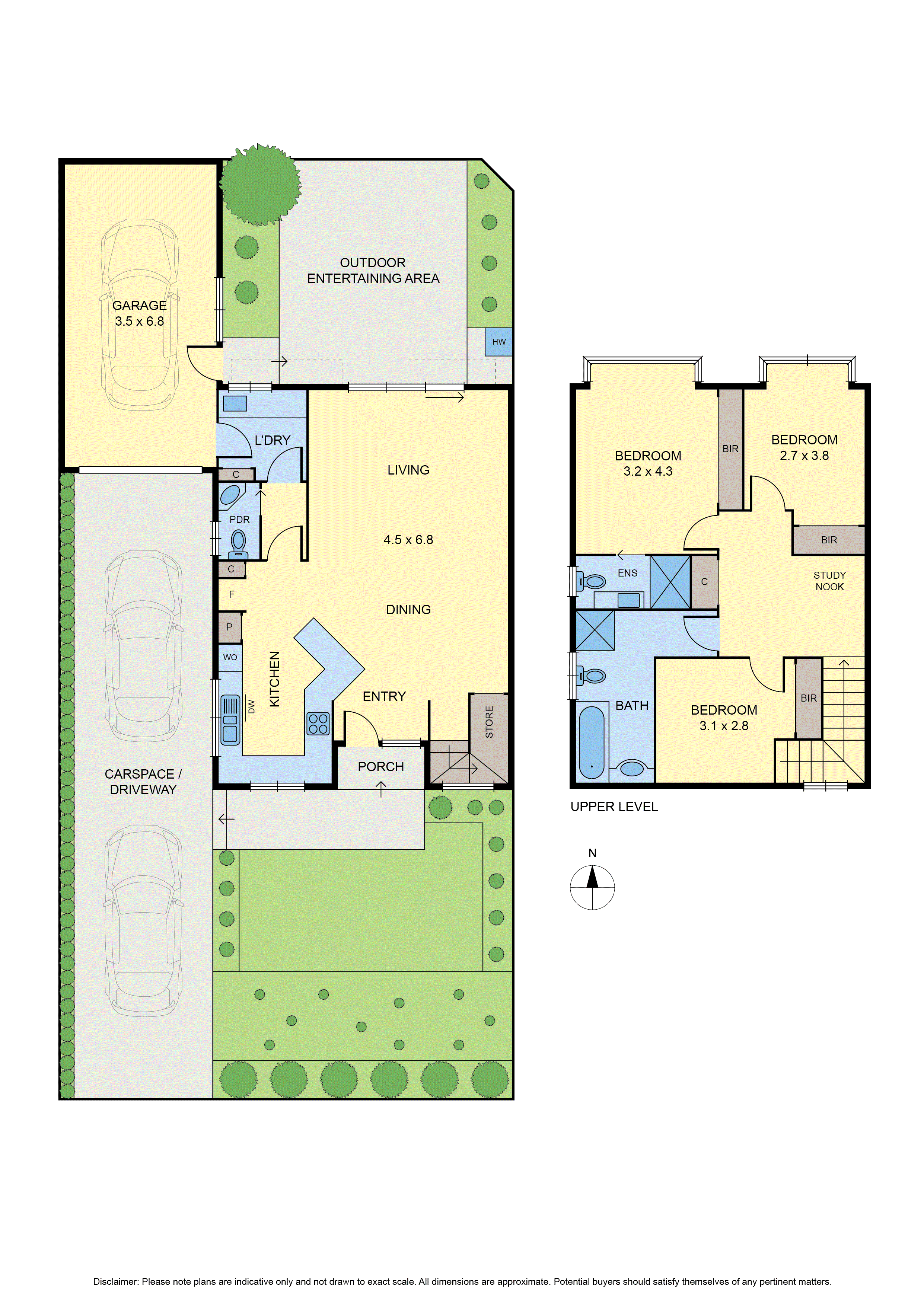 The first floor hosts a study landing separating a joyfully bright master bedroom with a tidy ensuite from two further bedrooms served by a matching central bathroom with tub. Also features gas ducted heating, ducted reverse cycle climate control, security cameras, a garage and driveway parking for more.