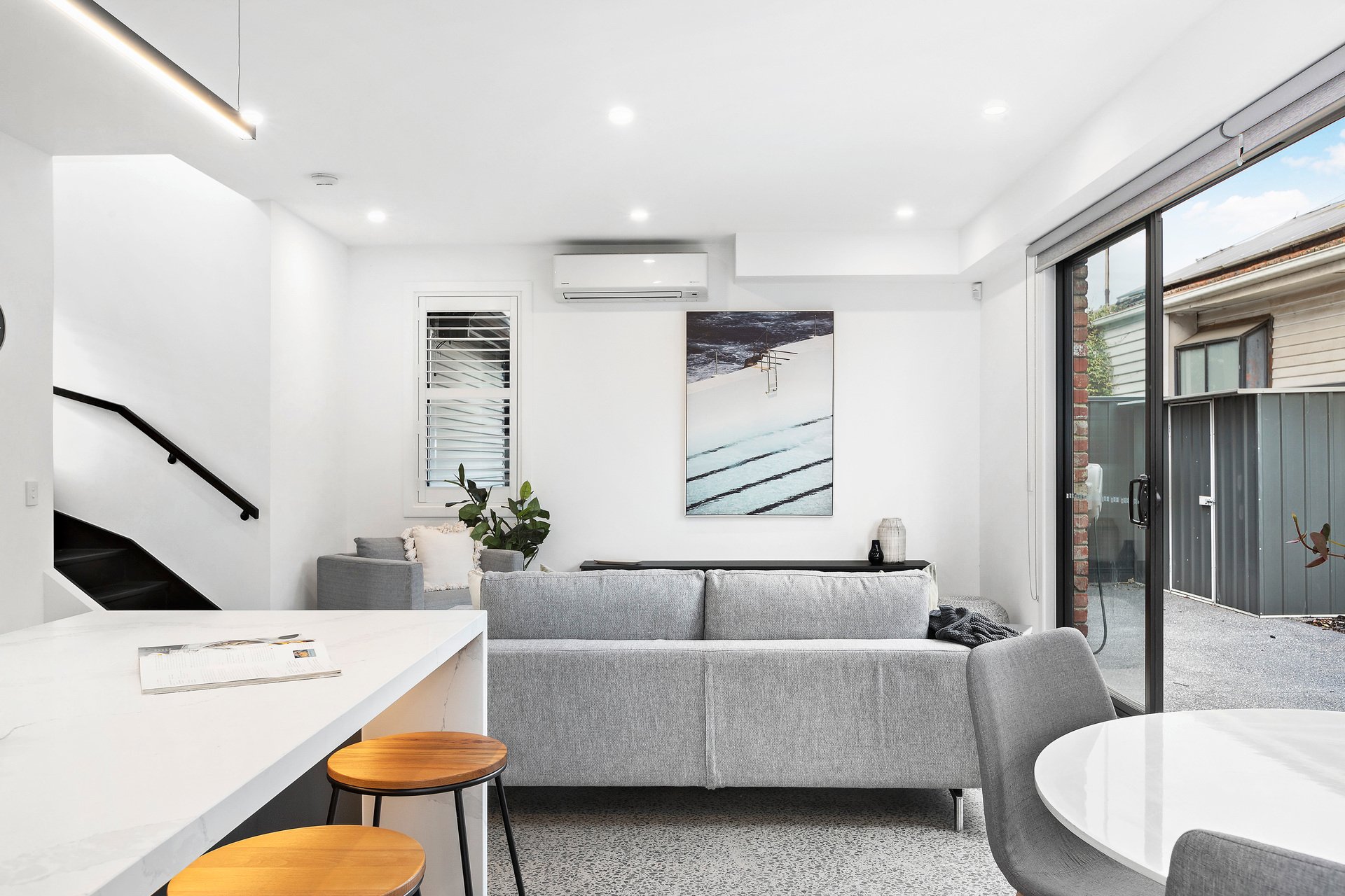 This near new Platinum built townhouse is sure to impress. Downstairs living and dining area featuring polished concrete floors, an open-plan kitchen fitted with stone benches and stainless steel appliances, makes for easy living. Split system heating and cooling, low-maintenance outdoor area contributes to the quality. Downstairs spaces that are completed by European laundry while the upstairs level reveals two bright bedrooms, an ensuite plus central bathroom and storage space. Off street parking via lock up carport add further excellence.