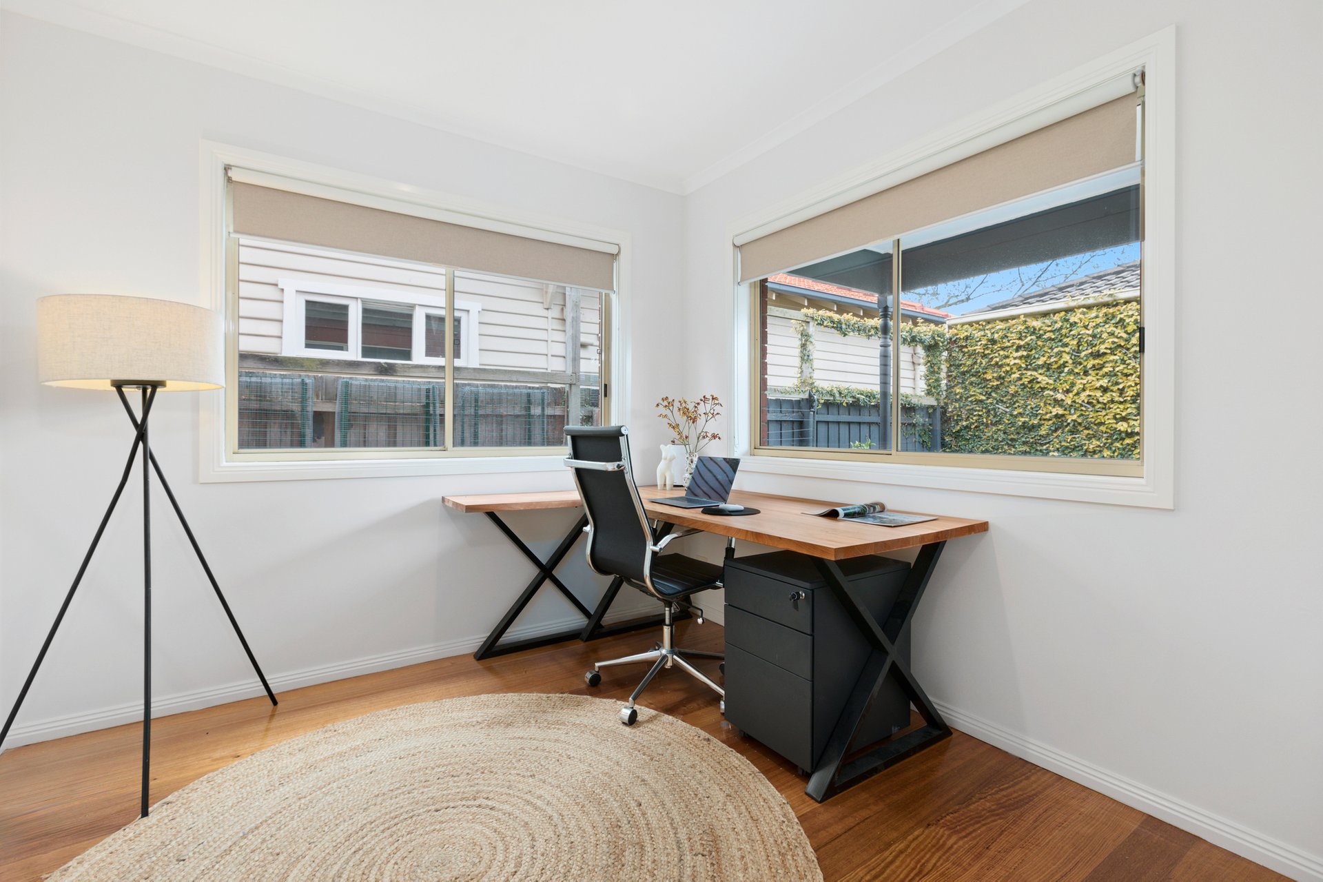 Out from here, the private alfresco patio and mod-grass garden perfectly cater to young families with little kids & pets, whilst the ground floor study could easily become an accessible fourth bedroom if needed.