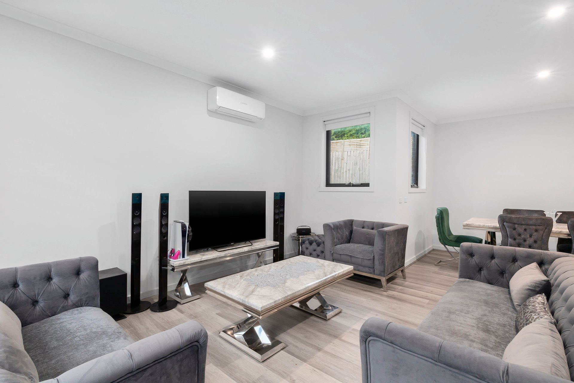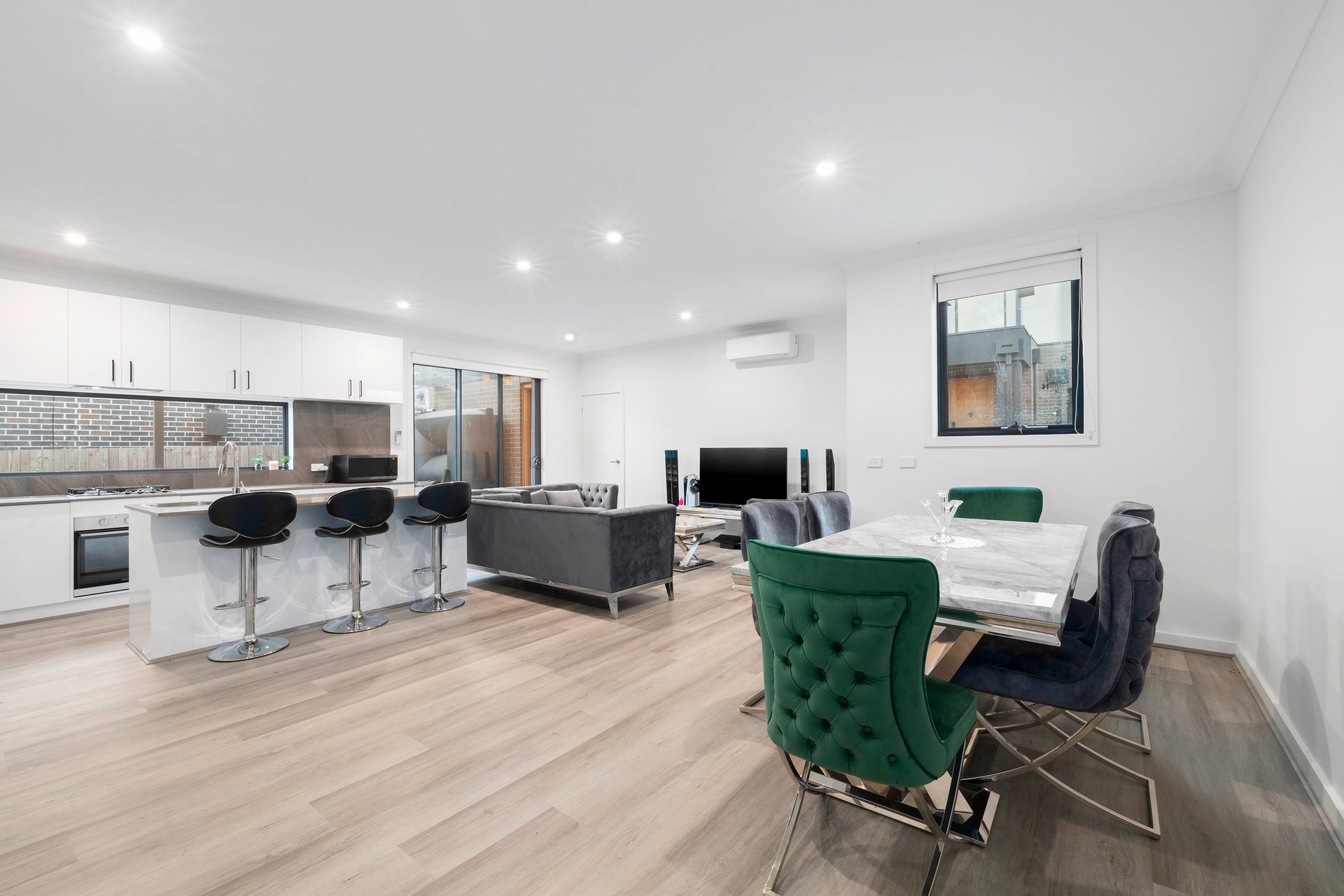 Featuring three generous bedrooms, two sleek bathrooms, and a remote double garage, the home is filled with natural light and smart design. The open-plan living and dining area is complemented by a well-appointed kitchen with quality appliances and ample storage, while split system heating and cooling throughout ensures year-round comfort.