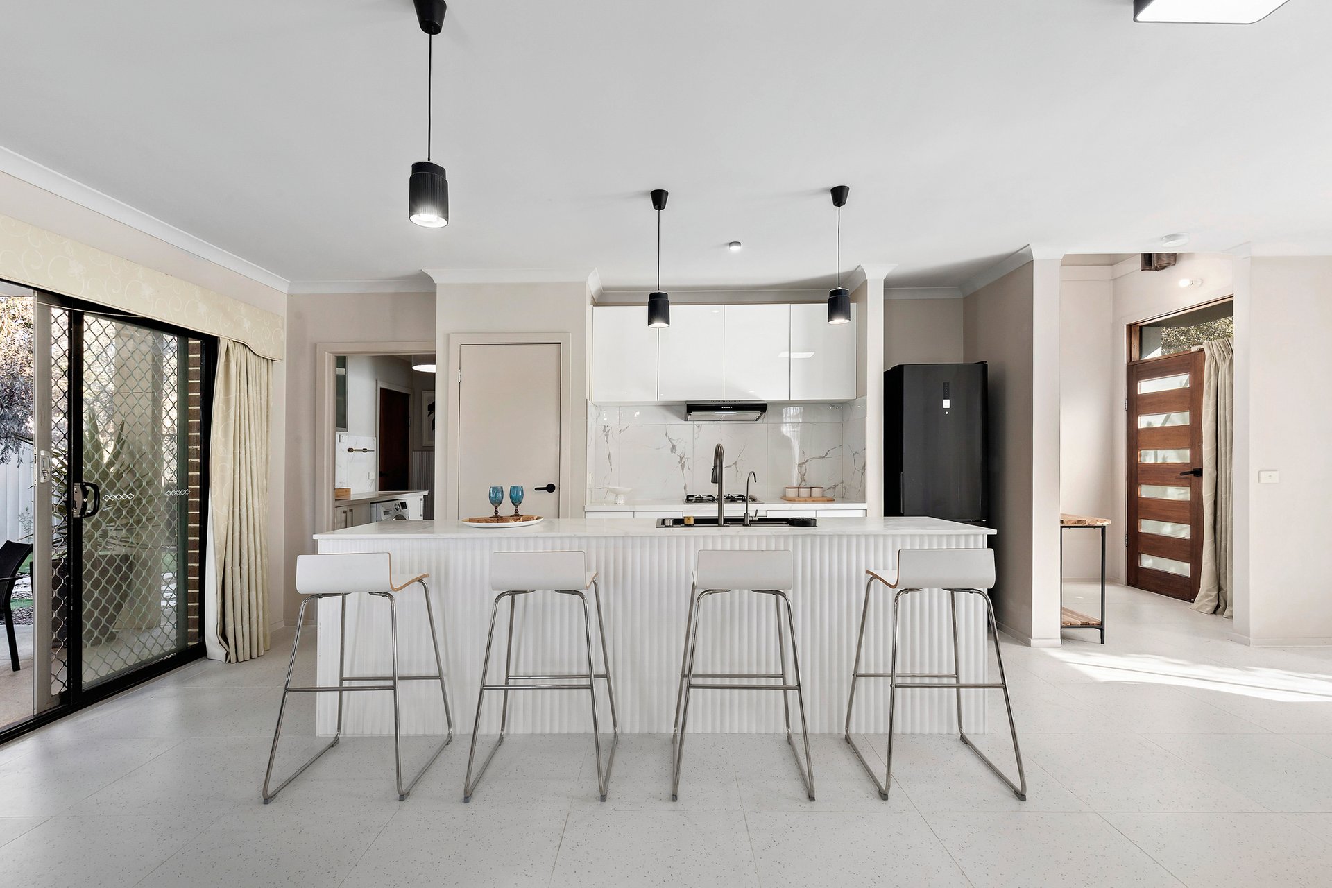 This beautifully renovated townhouse offers the perfect blend of style, space, and comfort. Inside, you'll find three generous bedrooms and two sleek, modern bathrooms designed with attention to detail. The open-plan living area is filled with natural light, creating a warm and welcoming space for both relaxation and entertaining. A contemporary kitchen flows seamlessly into the dining and lounge areas, while heating and split-system air conditioning ensure year-round comfort.