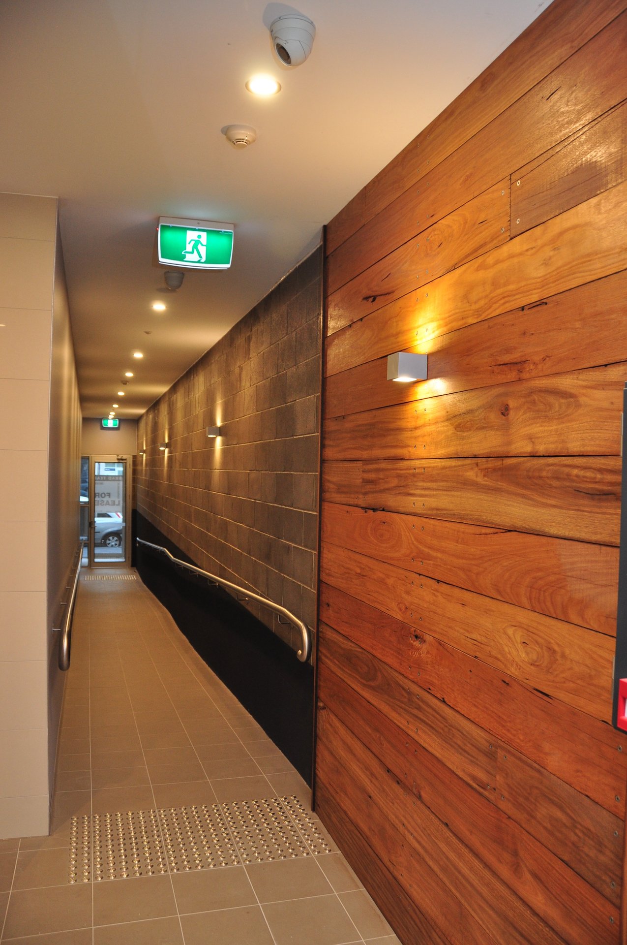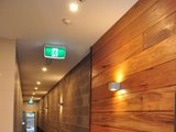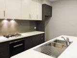 The contemporary kitchen is equipped with quality stainless steel appliances including a gas cooktop, electric oven, and dishwasher. Additional features include secure entry, lift access, bike racks, and a single secure car space.