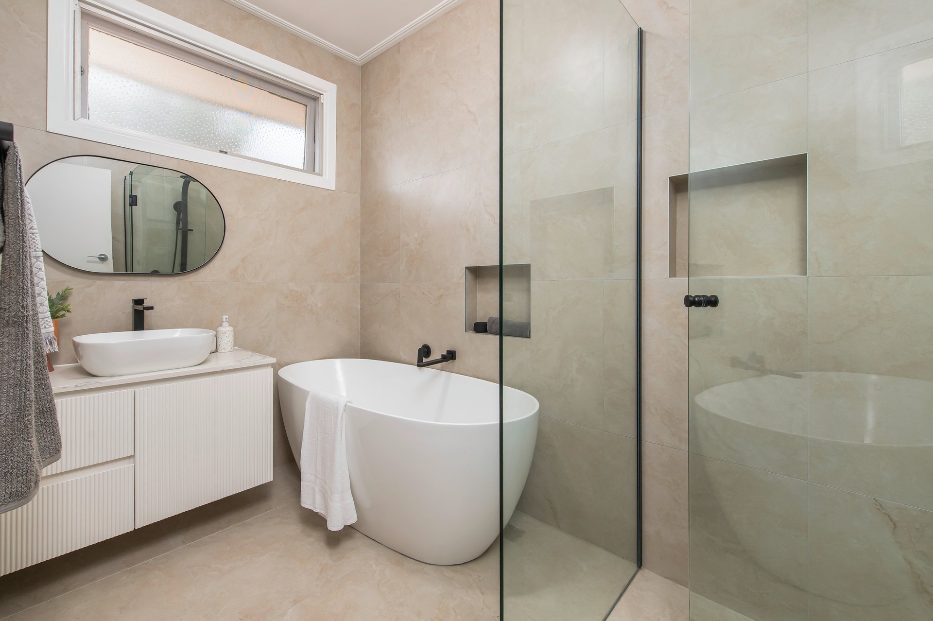 Brand new floating floors and quality carpet adds a contemporary feel to the home, as does the dazzling new bathroom which boasts trendy black tapware, rain shower, and freestanding bath. The living room just off the entry will cover all of your bases, while just next door is the sizeable casual dining area and kitchen which is fitted with modern appliances including a new stainless steel dishwasher.