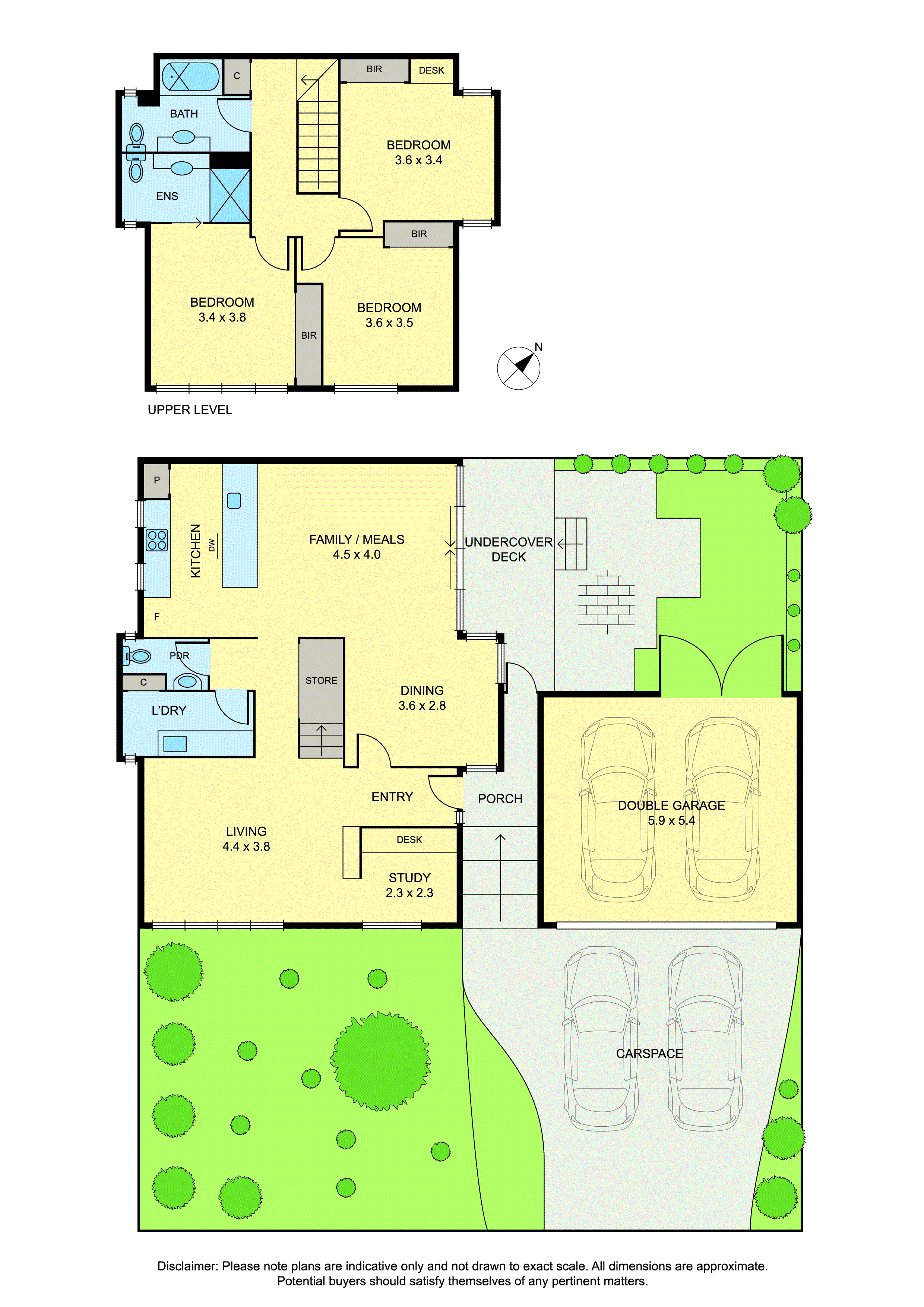 Upstairs, the accommodation is thoughtfully zoned for privacy, headlined by a generous main bedroom with ensuite, while the remaining large bedrooms, both with BIR, serviced by a sleek, contemporary bathroom. A dedicated study upon entry is filled with natural light, providing a private ample space as an ideal work-from-home room.