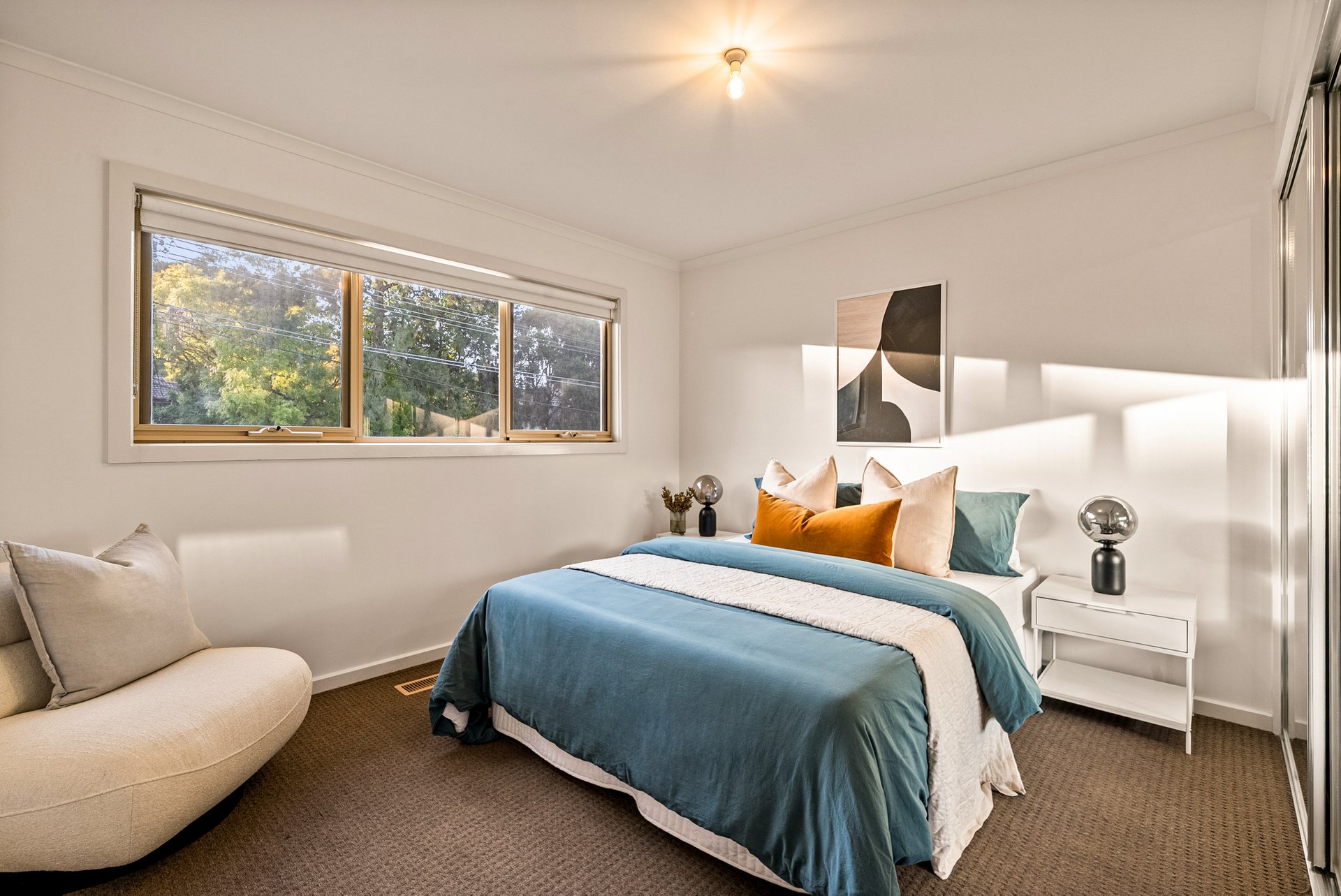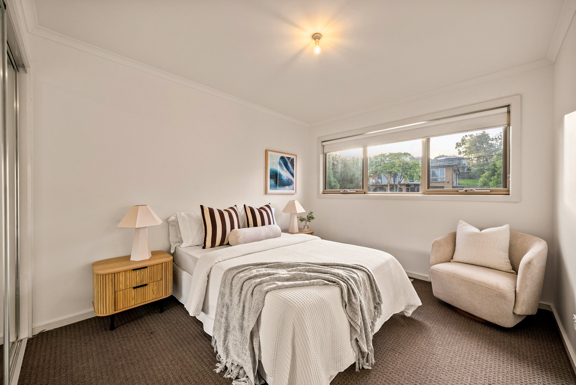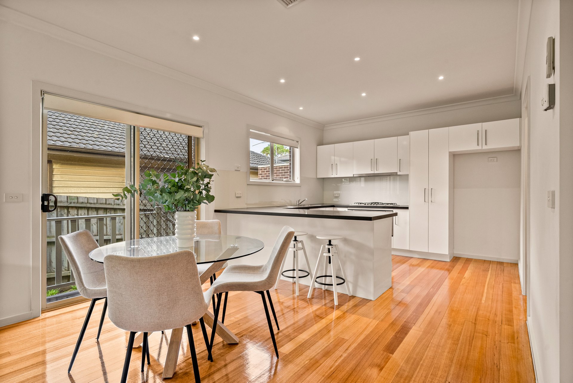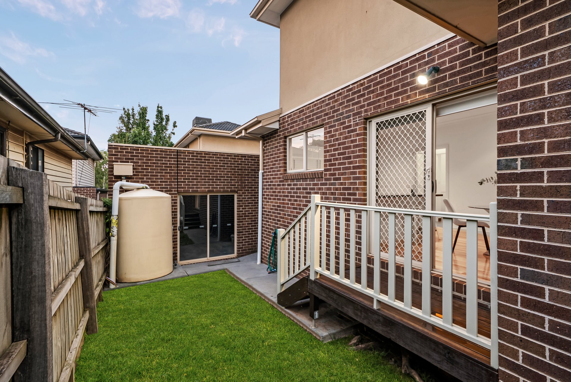 Set in a peaceful, quiet street just moments from the beautiful Darebin Creek Trail, this generously sized three-bedroom street frontage town residence offers comfort, style, and effortless modern living. The ground floor welcomes you with a bright, light-filled open-plan living and dining area, complemented by a sleek contemporary kitchen complete with stainless steel appliances, dishwasher, and elegant stone benchtops perfect for both everyday living and entertaining. The spacious master suite is thoughtfully positioned downstairs, featuring polished floorboards, a walk-in robe, and a private ensuite, alongside a separate toilet and full laundry for added convenience. Upstairs, you’ll find two well-appointed, carpeted bedrooms with built-in robes, serviced by a central bathroom showcasing both a separate shower and relaxing bathtub. Additional highlights include ducted heating and evaporative cooling throughout for year-round comfort, a private courtyard ideal for outdoor enjoyment, and the security and practicality of a remote-controlled double garage. A beautifully presented home that combines space, warmth, and lifestyle in a truly inviting setting.