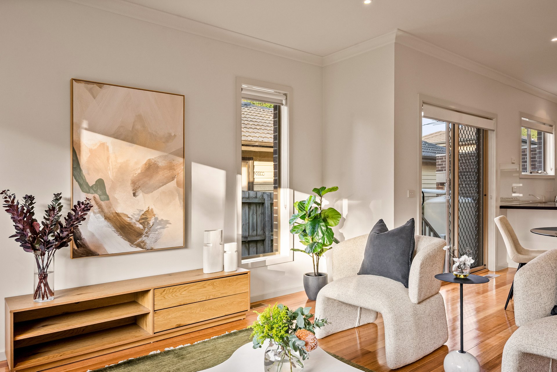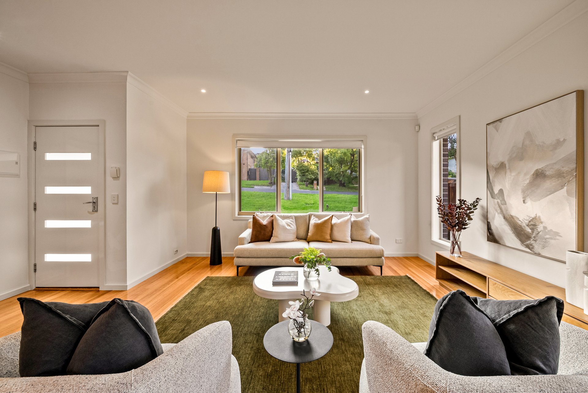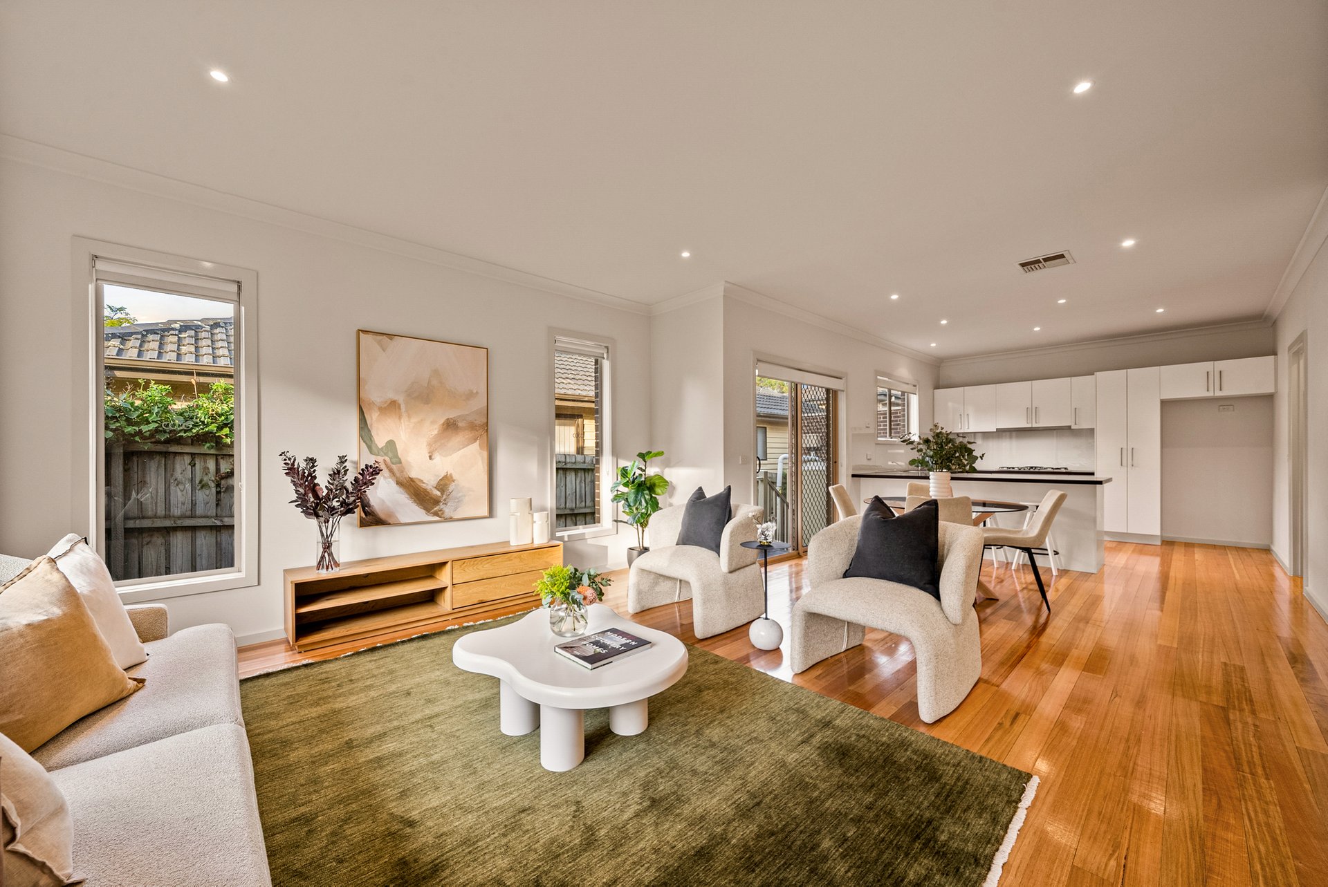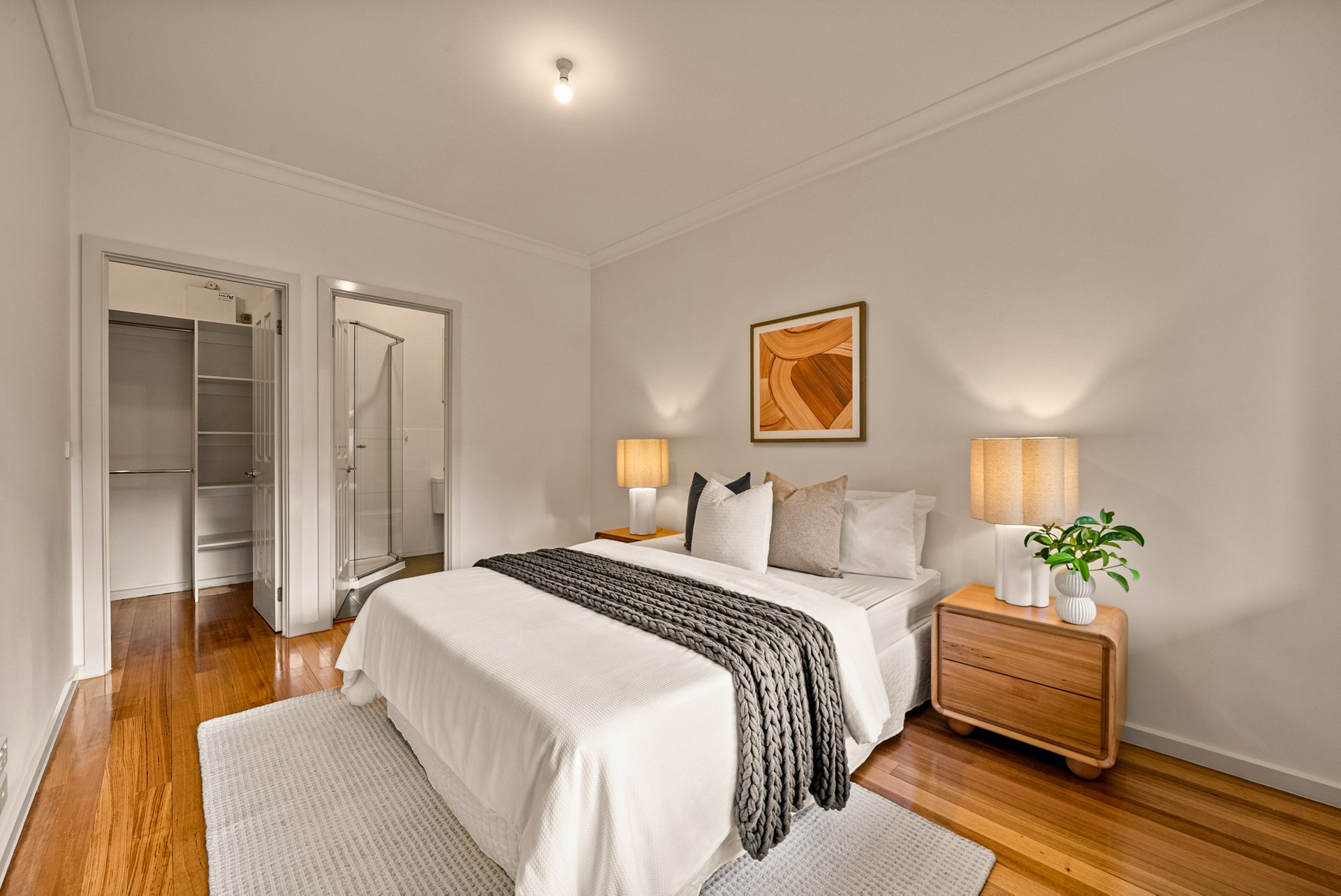Set in a peaceful, quiet street just moments from the beautiful Darebin Creek Trail, this generously sized three-bedroom street frontage town residence offers comfort, style, and effortless modern living. The ground floor welcomes you with a bright, light-filled open-plan living and dining area, complemented by a sleek contemporary kitchen complete with stainless steel appliances, dishwasher, and elegant stone benchtops perfect for both everyday living and entertaining. The spacious master suite is thoughtfully positioned downstairs, featuring polished floorboards, a walk-in robe, and a private ensuite, alongside a separate toilet and full laundry for added convenience. Upstairs, you’ll find two well-appointed, carpeted bedrooms with built-in robes, serviced by a central bathroom showcasing both a separate shower and relaxing bathtub. Additional highlights include ducted heating and evaporative cooling throughout for year-round comfort, a private courtyard ideal for outdoor enjoyment, and the security and practicality of a remote-controlled double garage. A beautifully presented home that combines space, warmth, and lifestyle in a truly inviting setting.