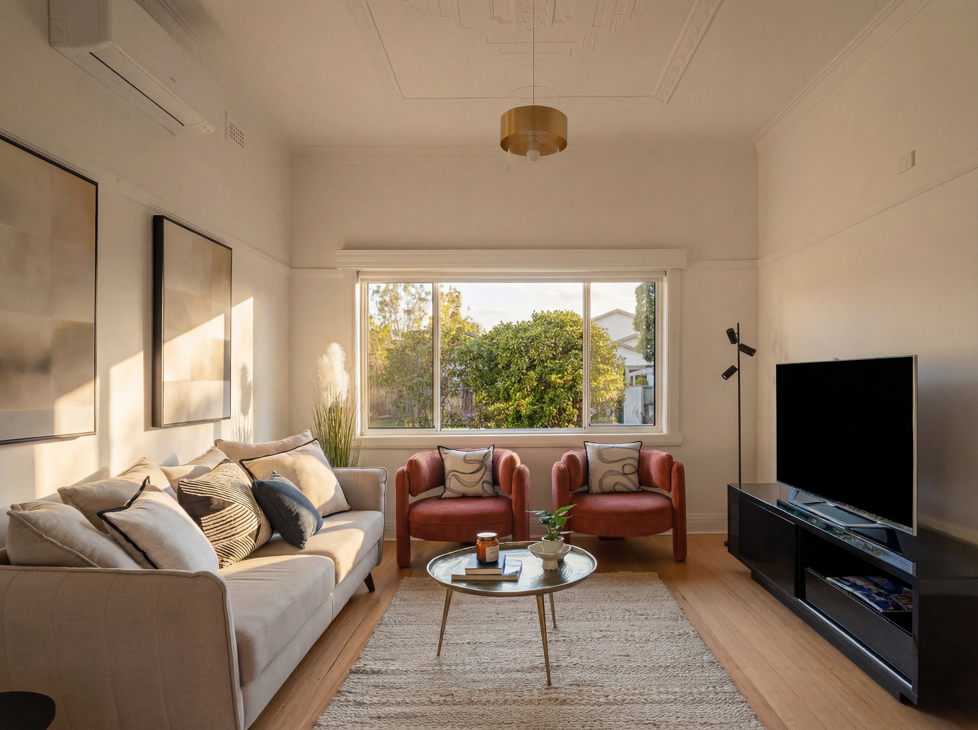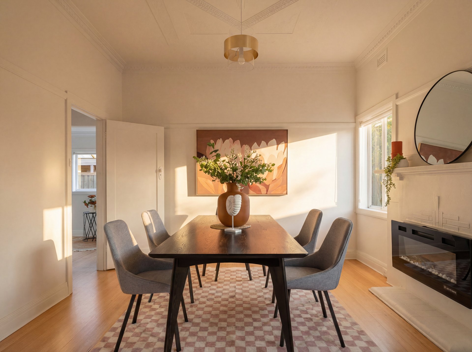 Thoughtfully refreshed throughout, the three-bedroom home showcases polished hardwood floors, a well-maintained bathroom, and a functional, well-appointed kitchen. The flexible floor plan includes a separate living area with electric heating, a dining space adjoining the kitchen, plus a rear study/bedroom and full laundry, providing plenty of versatility for growing families or those working from home.