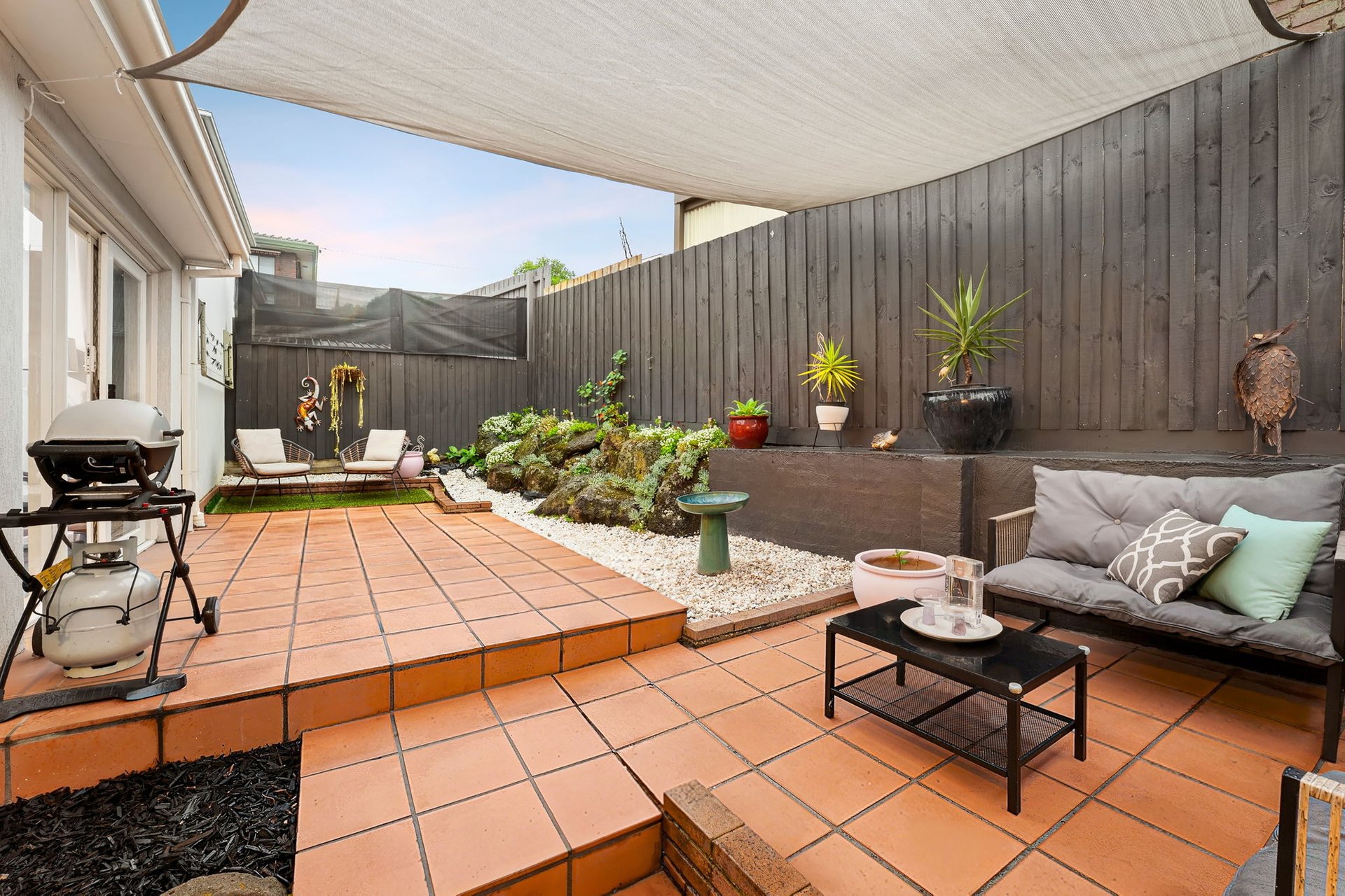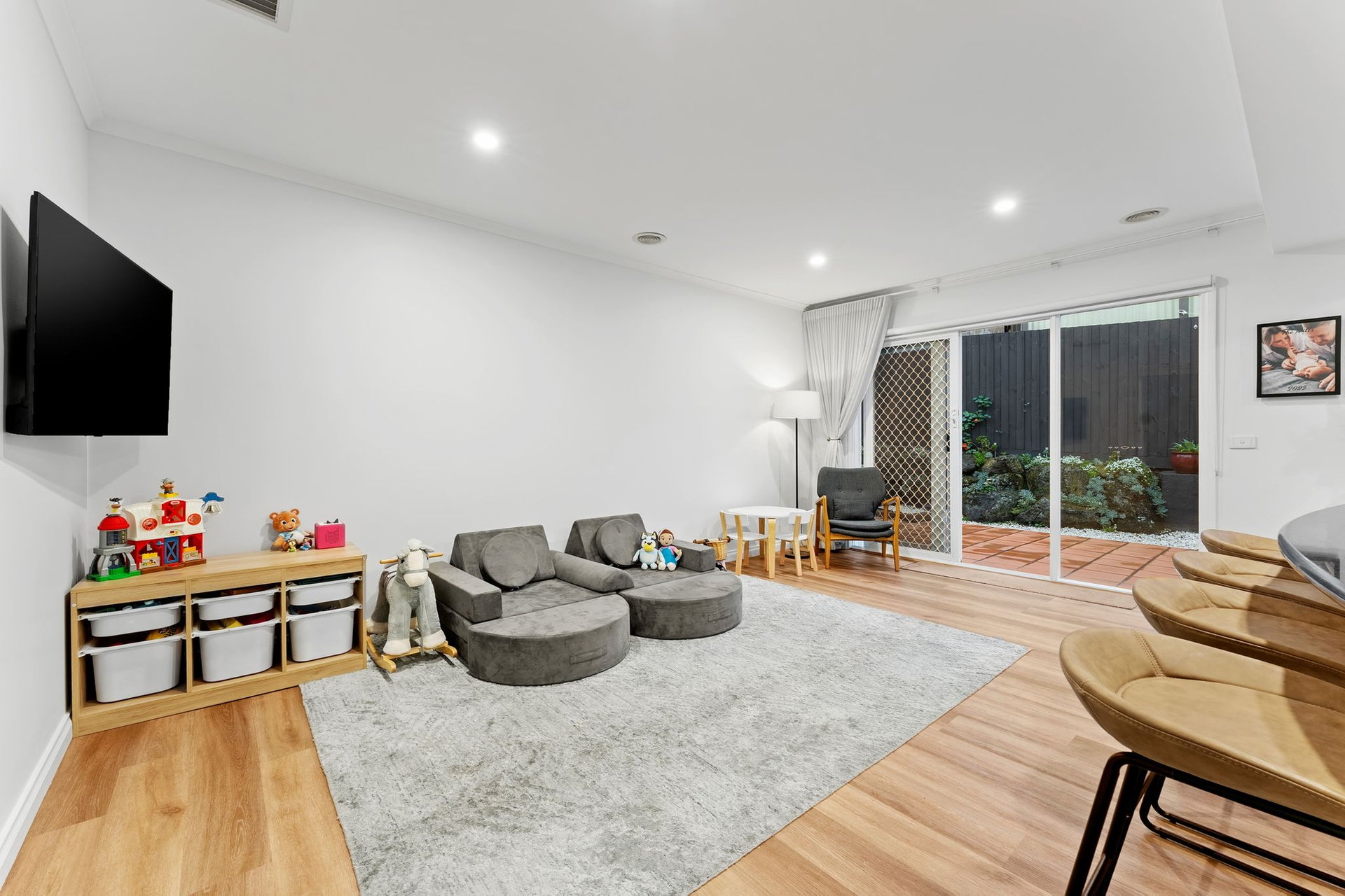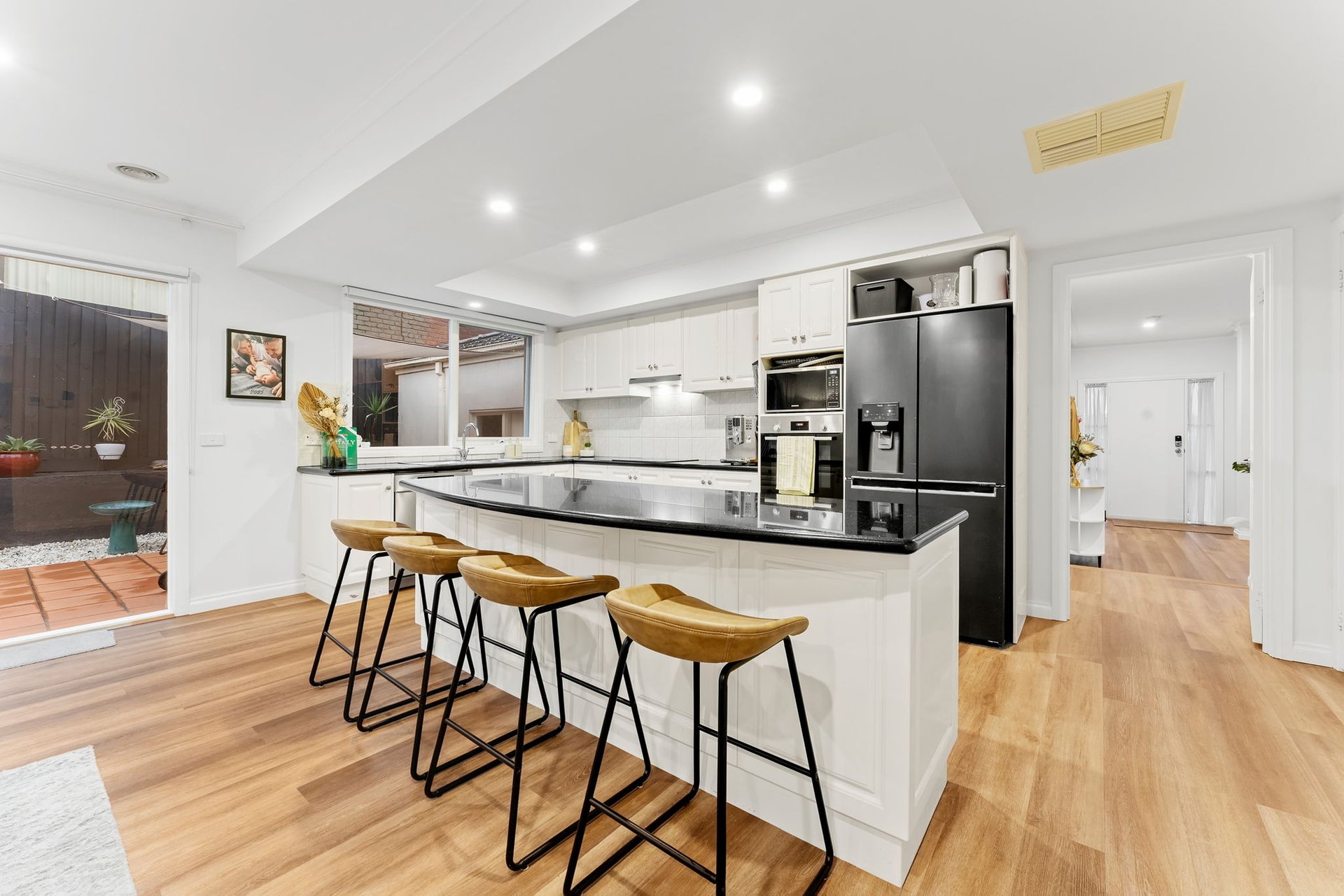 The heart of the home is the stylish kitchen, appointed with stone benchtops, quality appliances and a large breakfast island that overlooks the light-filled living space. Sliding doors connect seamlessly to a private paved courtyard — ideal for entertaining, relaxing or enjoying easy-care outdoor living.