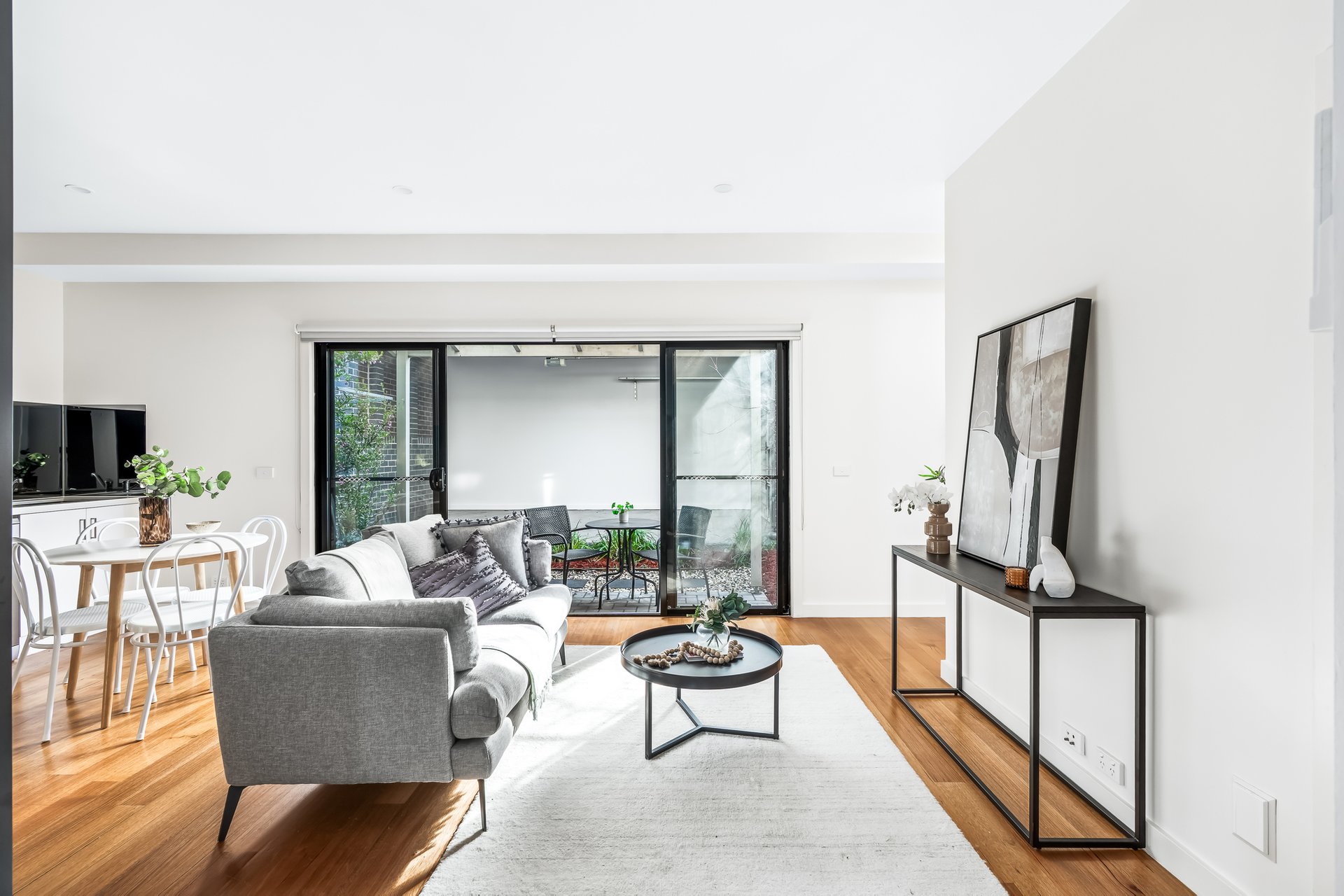 Contemporary style and undeniable convenience are immediate attributes that stand out with this executive residence. Set within a boutique complex, with street frontage this home instantly impresses with its spacious dimensions, quality finishes and zoned living. The interior features a downstairs bedroom and bathroom along with an open plan kitchen, dining and living area. The striking kitchen comes equipped with modern appliances, dishwasher and plentiful storage. Upstairs houses a large master bedroom with walk in robe and ensuite. There’s also the added appeal of a decent sized laundry and private courtyard with pergola. Additional highlights also include split system heating/cooling, timber floors, under stair storage and lock up garage with remote door. Enviably positioned within close distance to local cafes/restaurants along Plenty Rd, public transport, local parklands and Northland Shopping Centre.