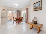Tucked upstairs are the two peaceful bedrooms – both benefiting from fitted wardrobing and the calming comfort of ceiling fans. They flank the central spa bathroom, while off the downstairs laundry, a powder room is offered for the convenience of guests. Ducted heating wards off the winter chill and a lock-up garage concludes a carefree setting