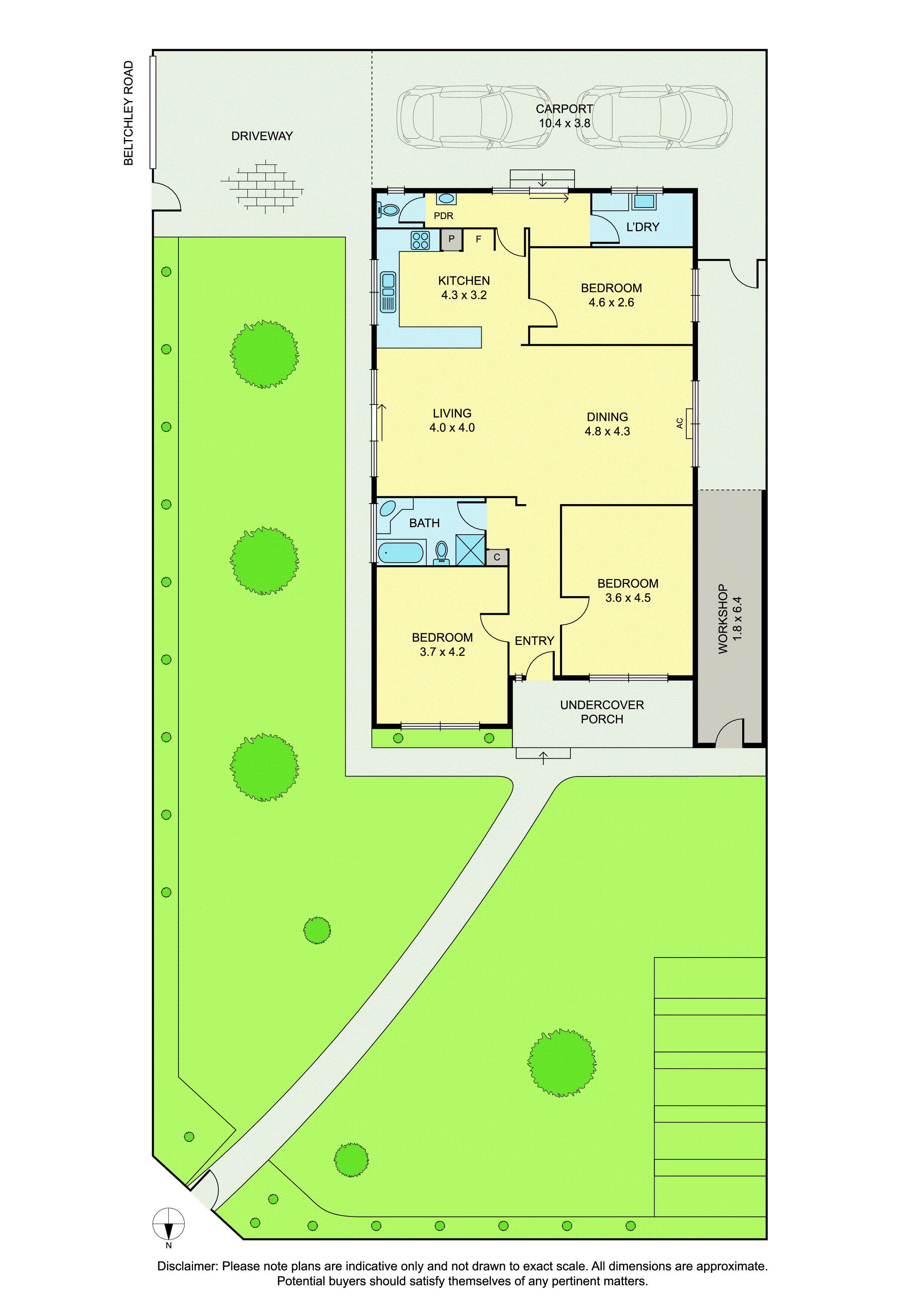There is a private 3rd bedroom at the back of the layout, as well as a full bathroom and 2nd toilet just off the laundry. Also enjoy ducted heating, reverse cycle cooling, undercover storage/workshop at the back, double tandem carport, and space for another car via secure gate. The parking can be accessed via Bletchley Road for added convenience,