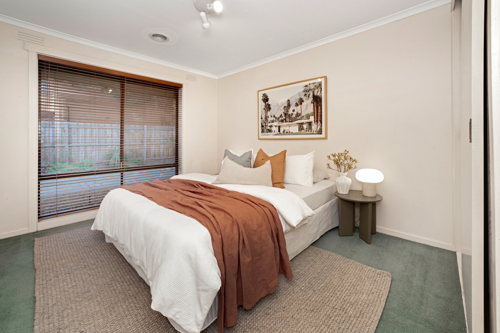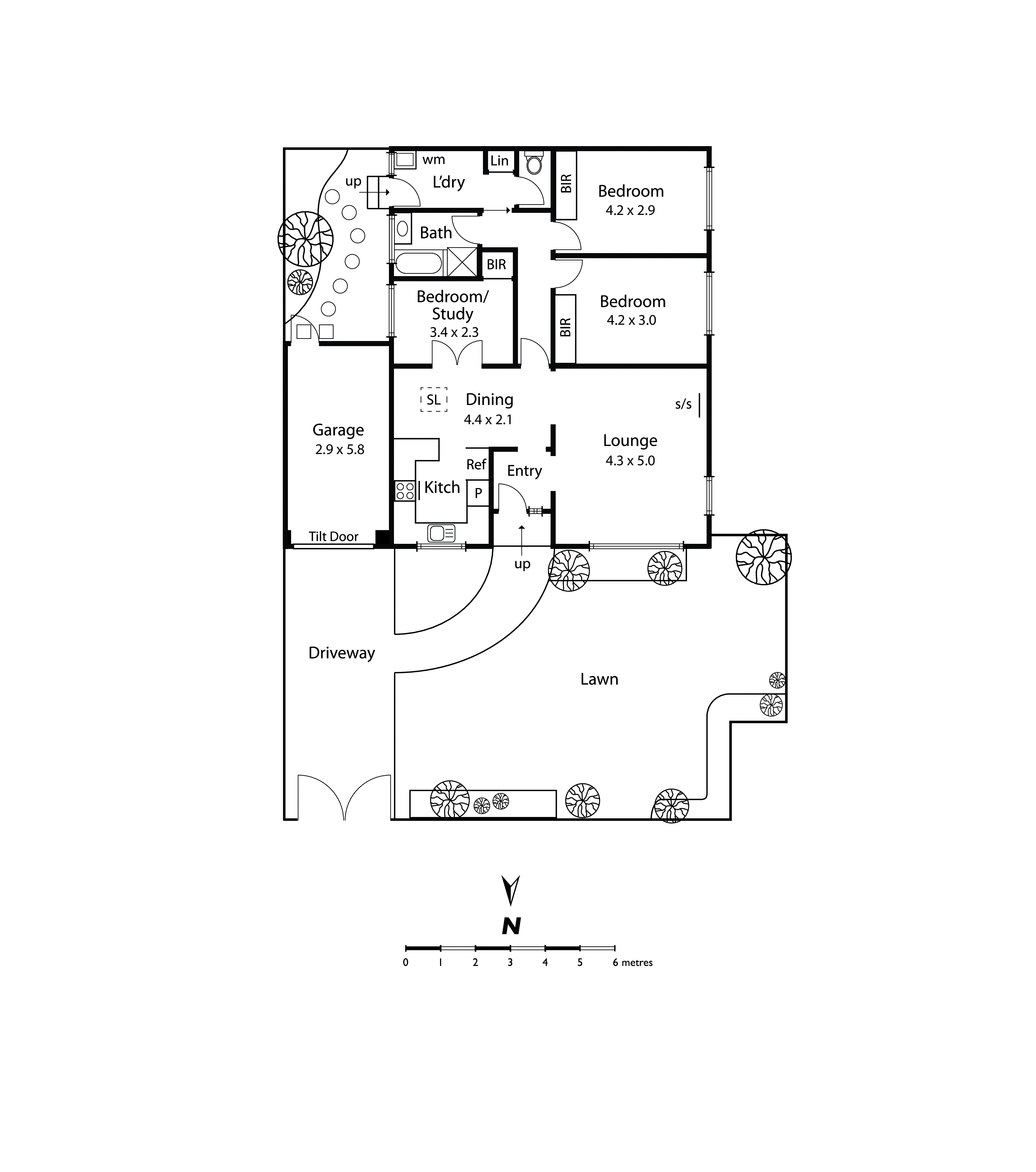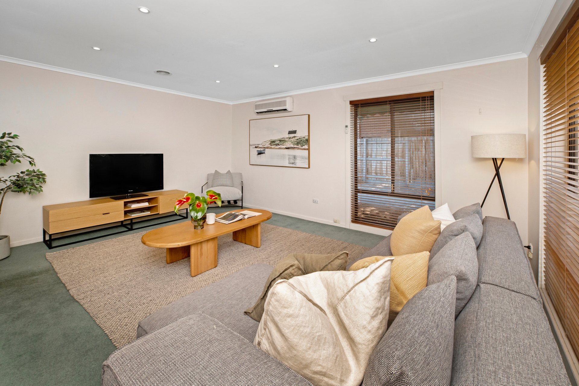Depending on your needs, there are up to three bedrooms – or two and a study – all with built-in wardrobes. They share a bathroom with bath & shower along with a separate WC while split system heating/cooling, a full laundry with rear access, external blinds and lock-up garage complete a truly appealing low maintenance package.