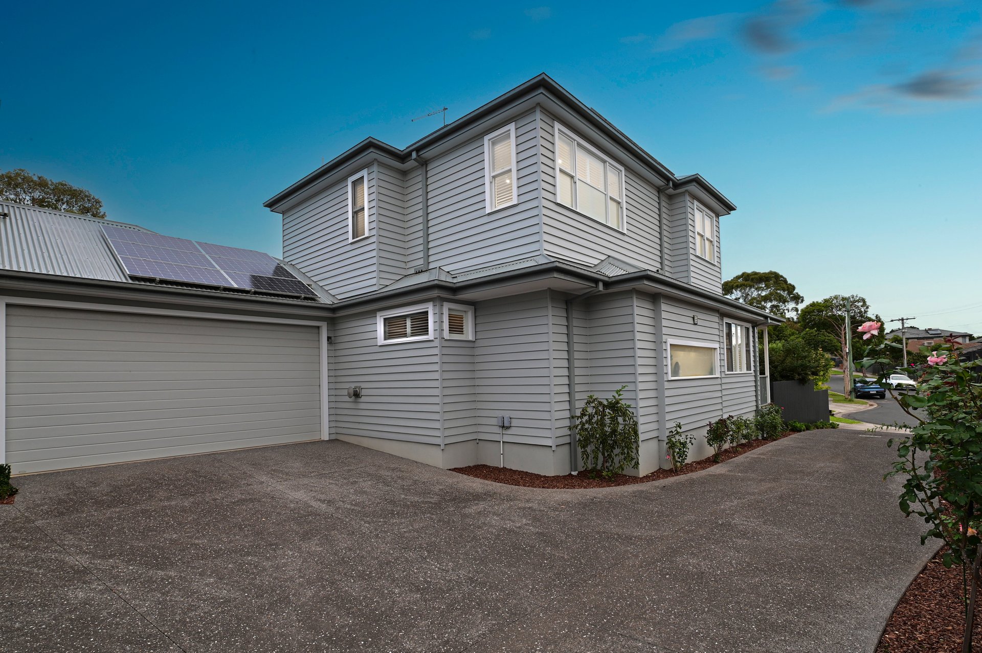 The main bedroom has a position on the ground floor and delights with a walk-in robe and unforgettable rain shower ensuite. Upstairs delivers 3 additional bedrooms with BIRs, a well-sized living retreat, and full bathroom. Other property delights include a downstairs powder room with Carrara marble herringbone splashback, laundry, 22 solar panels and battery, solar hot water with gas boost, Fujitsu ducted heating and cooling, gas log fireplace to family room, secure alarm, easy garden and courtyard, shed, and a double remote garage with sizeable attic storage (accessed via a pull-down ladder). The property’s exterior has also been freshly painted.