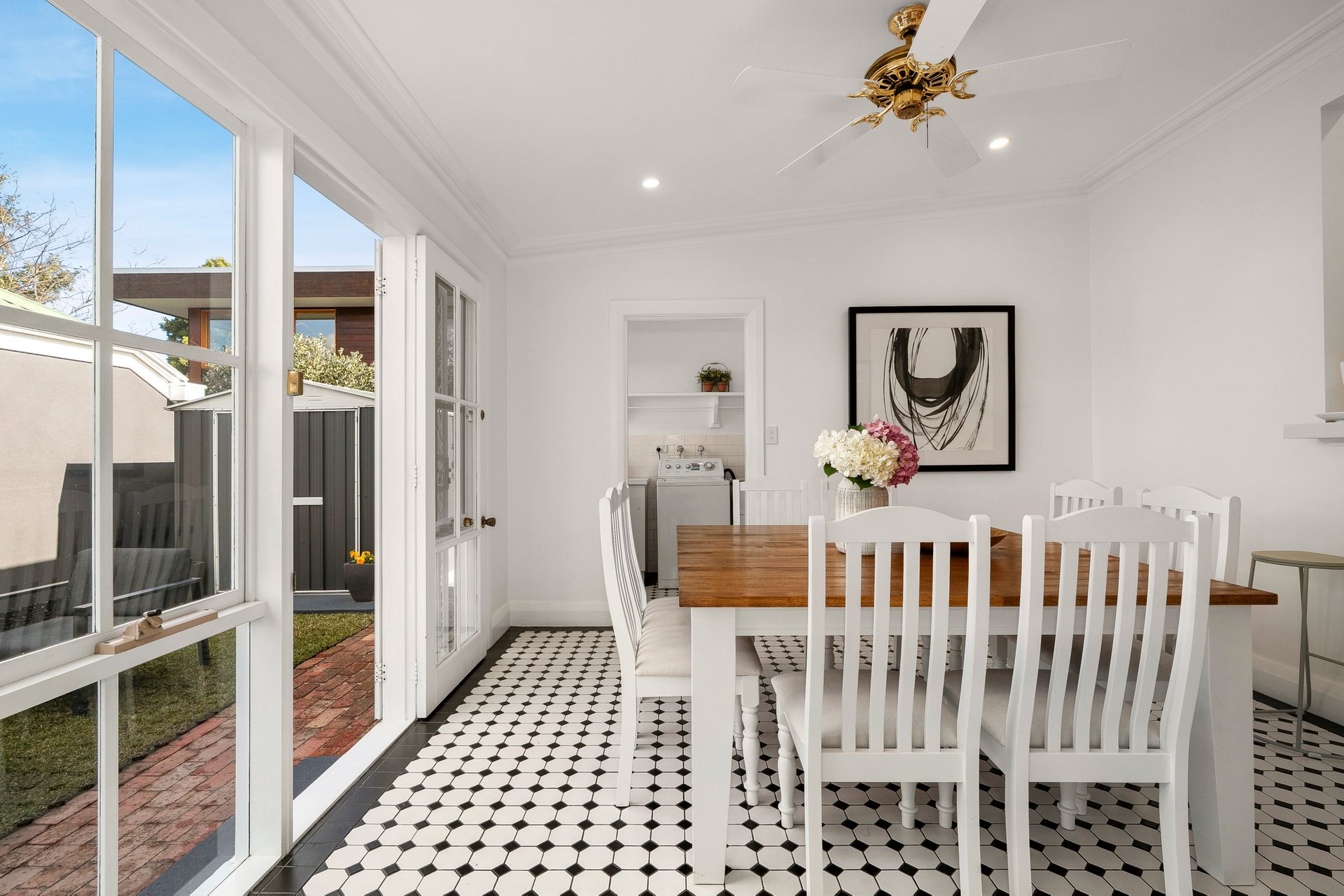 Soaring 11 ft ceilings (approx.), original Baltic Pine floorboards, and exquisite fireplaces remind you off this home’s period origin. However, so much work has been done to modernise the property, from classic-look chandelier lighting and heritage toggle light switches, to the property having been re-wired and re-stumped in recent times.