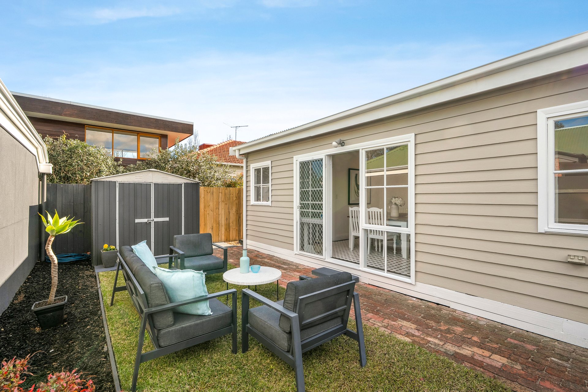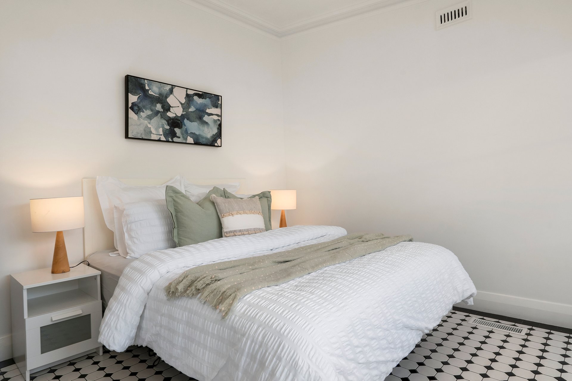 Step inside and be immediately dazzled by the 2 generous front bedrooms, which includes the main bedroom which promises a walk-in robe with handy vanity basin. A charming formal living area makes way for the light-filled central family/meals zone and kitchen, with the latter showcasing Caesarstone benchtops, hardwood 2pak detail, and stainless steel appliances. This zone is also blessed with beautiful tessellated tiling.