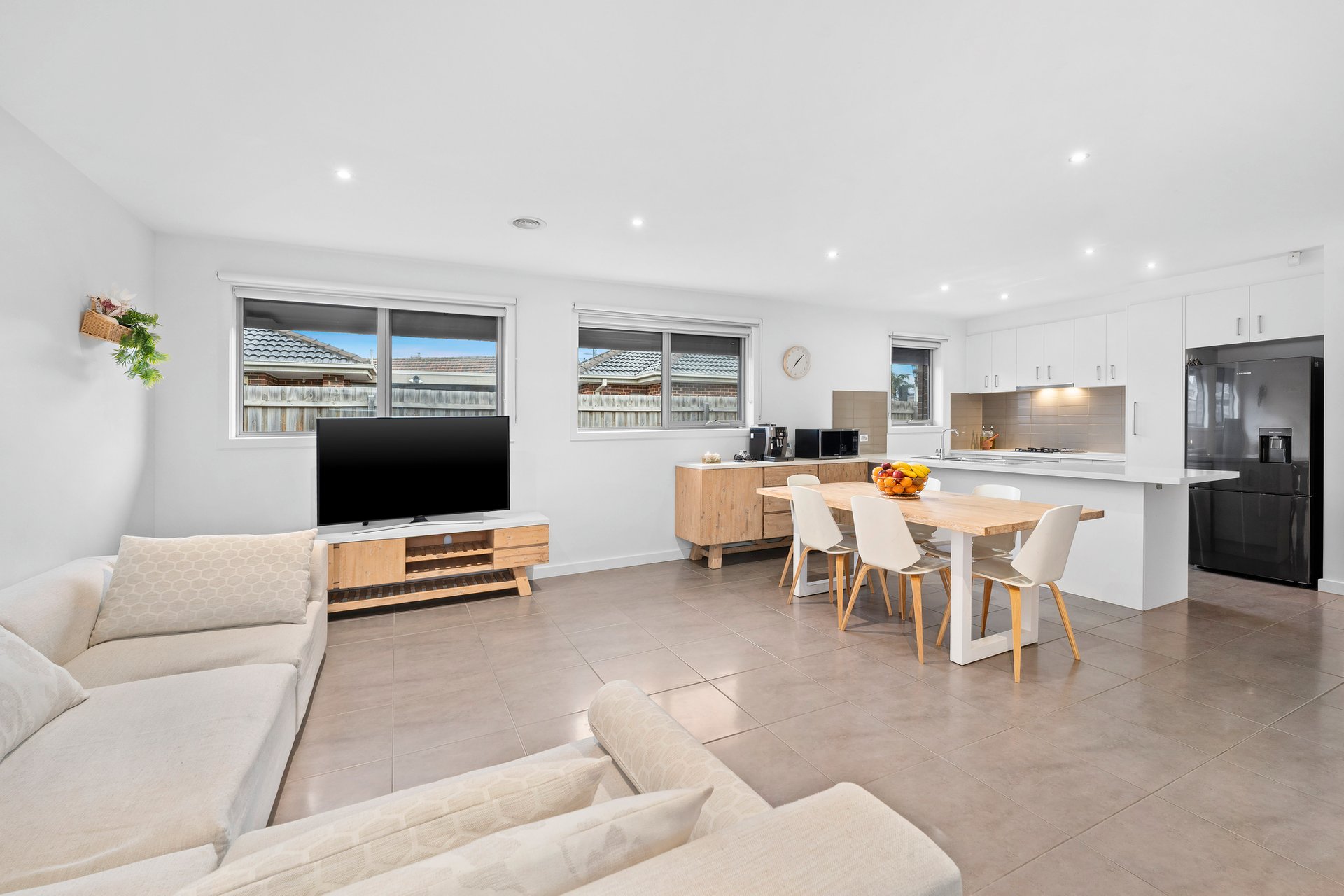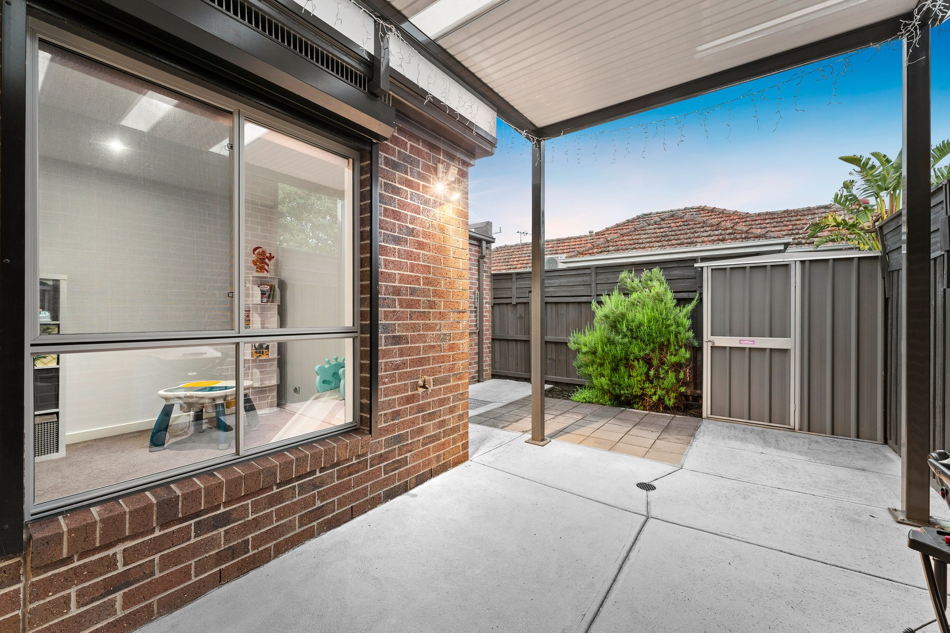 Set on its own driveway with no body corporate, the home features three bedrooms, a light-filled living and dining zone, a fenced front garden, and a Stratco veranda ideal for year-round entertaining. A low-maintenance backyard makes daily living effortless.
