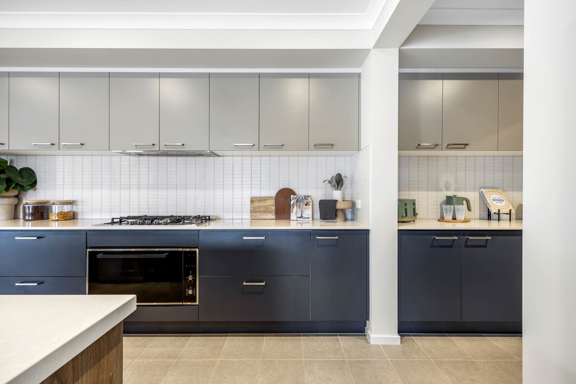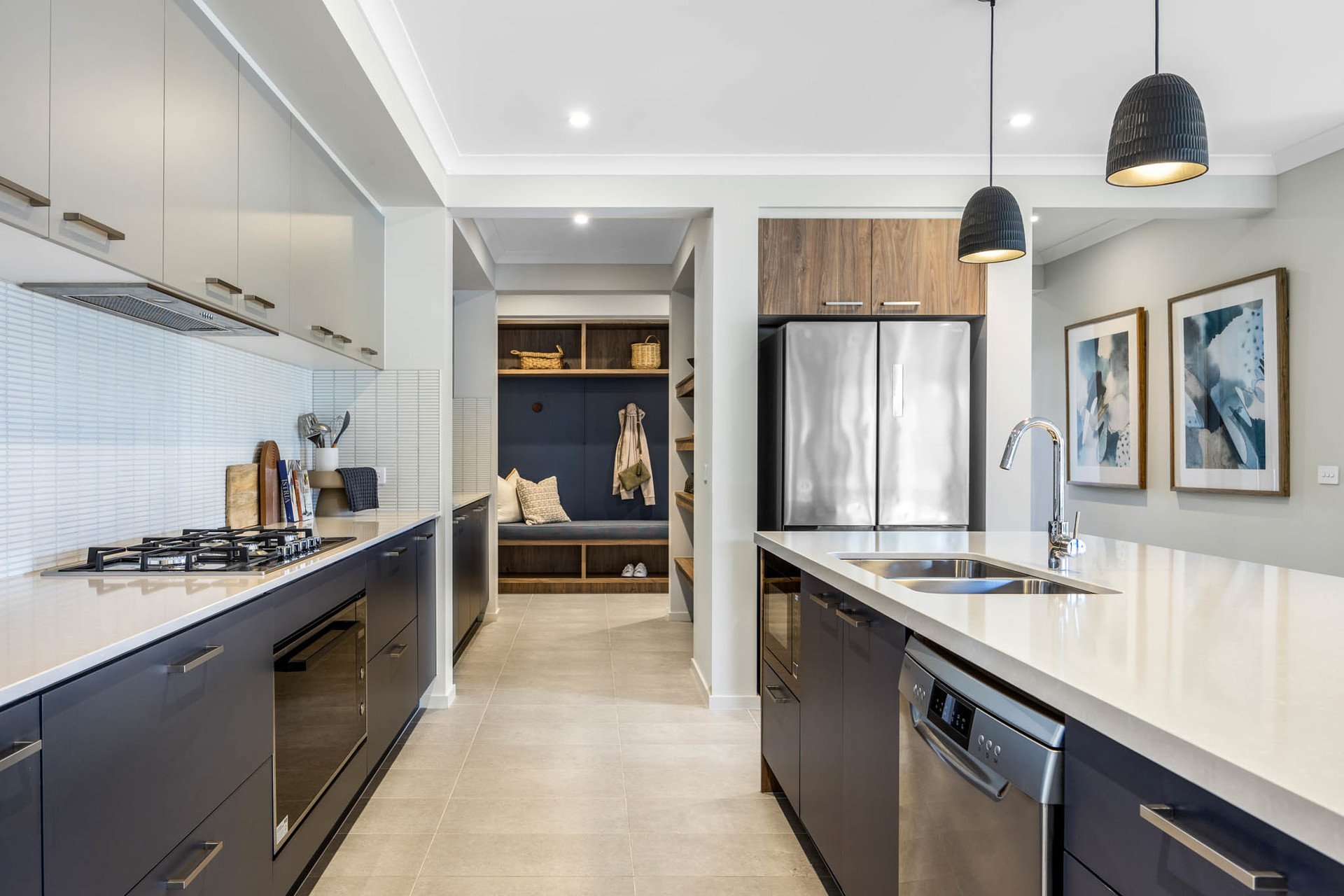 Embracing an ideal north-to-rear orientation that enhances a luminous layout, spacious interiors centre around a superb entertainer's kitchen showcasing a 40mm-thick stone island, stone to all countertops, soft-close cabinetry, a finger-tiled splashback, a 900mm oven with 5-zone cooktop, integrated microwave, dishwasher, and a large walk-in pantry set beside the mud/cloak room and garage.