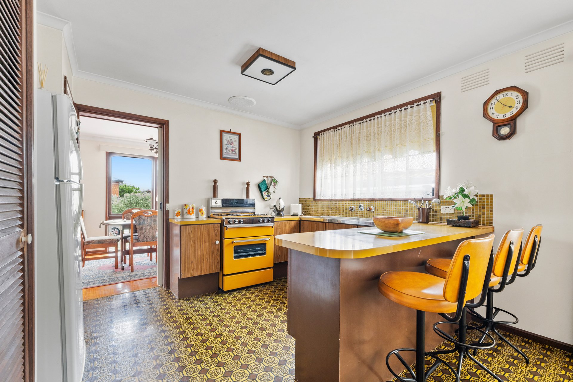 Lovingly held by one family since 1974, this family classic home delivers warmth, space, and lifestyle excellence in a peaceful cul-de-sac. Welcomed by delicate blossoms lining the avenue, and a secure gated porte-cochere, it exudes timeless charm with a tiled entry, polished hardwood floors, and two generous living zones, a formal lounge and dining plus an upstairs family retreat. The immaculate retro kitchen with original freestanding cooker, breakfast bench, and pantry opens to a vast enclosed entertaining area for all-weather celebrations, while an addition of a northerly patio adds flexibility. Upstairs, the master suite enjoys city glimpses, walk-in robe, and ensuite, while three ground-floor bedrooms each open outdoors, one with its own ensuite. Complete with gas heating, air conditioning, family bathroom, separate toilet, and laundry. Surrounded by lush established, citrus-filled gardens, a return driveway, a remote tandem carport and OSP. Ideally positioned near Rosehill Park playground, skate park, new kindergarten (underway), scenic river trails, elite schools, Essendon Station, and easy freeway access.