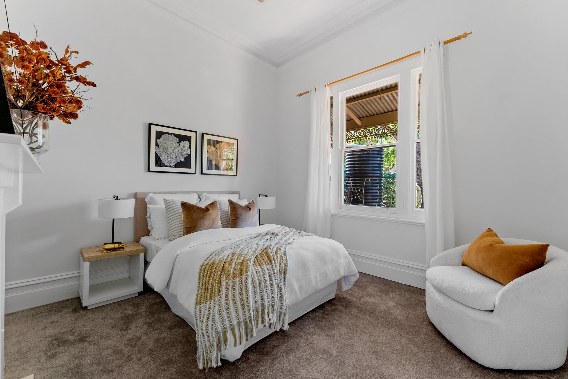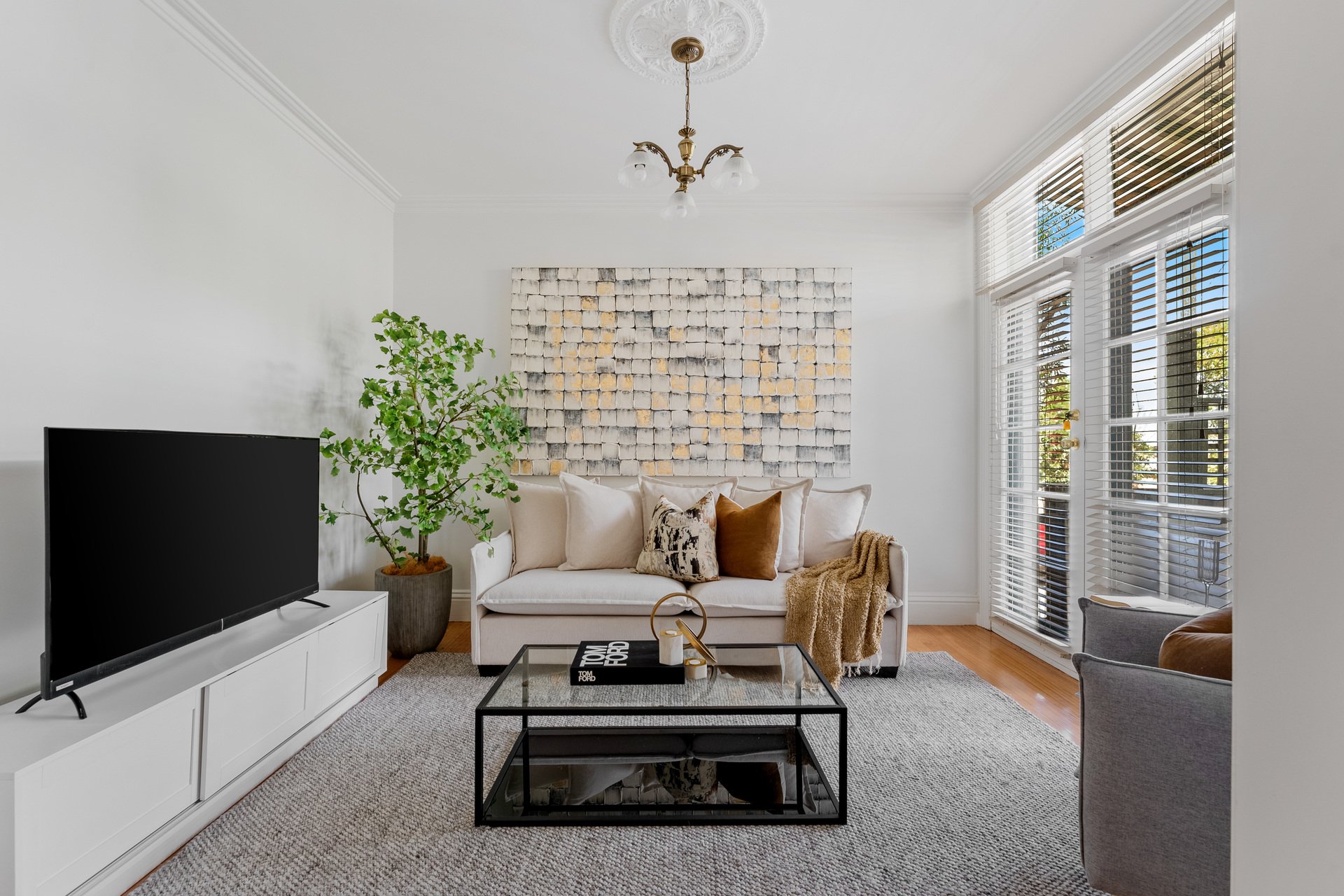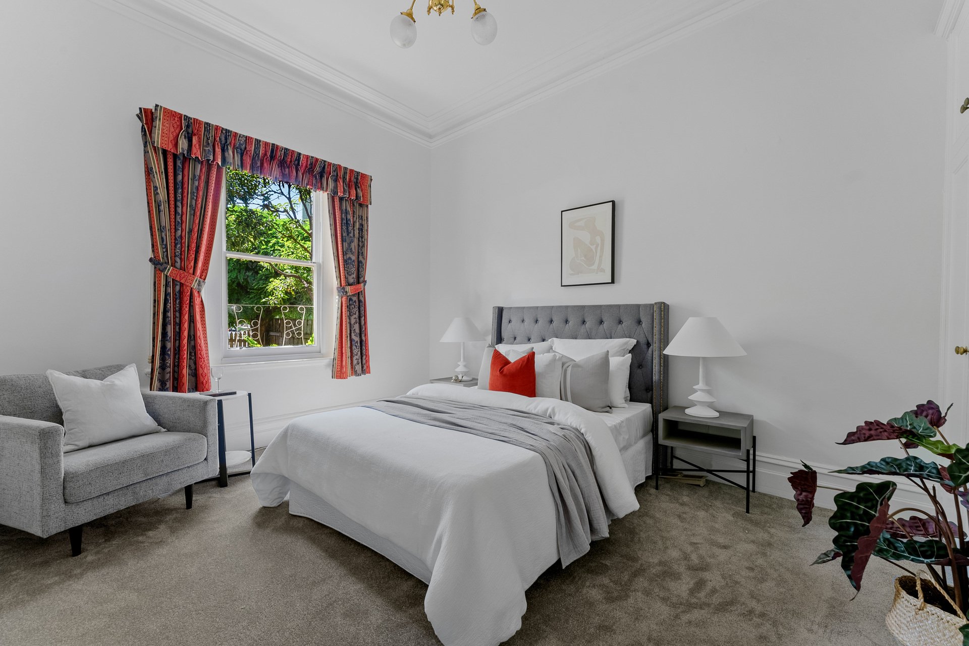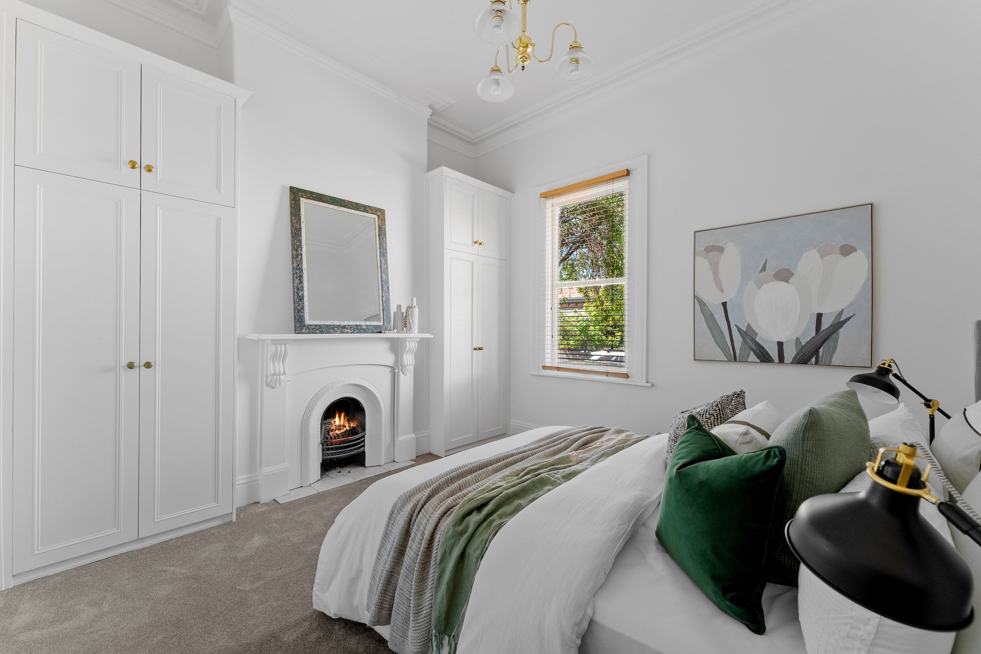 A rare offering, the property presents breathtaking city skyline views, remarkable period detail, and a versatile studio/office or additional living space above a secure carport. Behind a striking leadlight-adorned entrance, a grand arched hallway sets the tone with soaring ceilings, intricate rosettes, and Baltic pine floorboards. Generously proportioned living and dining rooms, along with robed bedrooms, are enhanced by timber-mantled open fireplaces with cast iron inserts, while the main bedroom boasts a walk-in robe and semi-ensuite access to the spacious central bathroom. Valuable attic storage is also available.