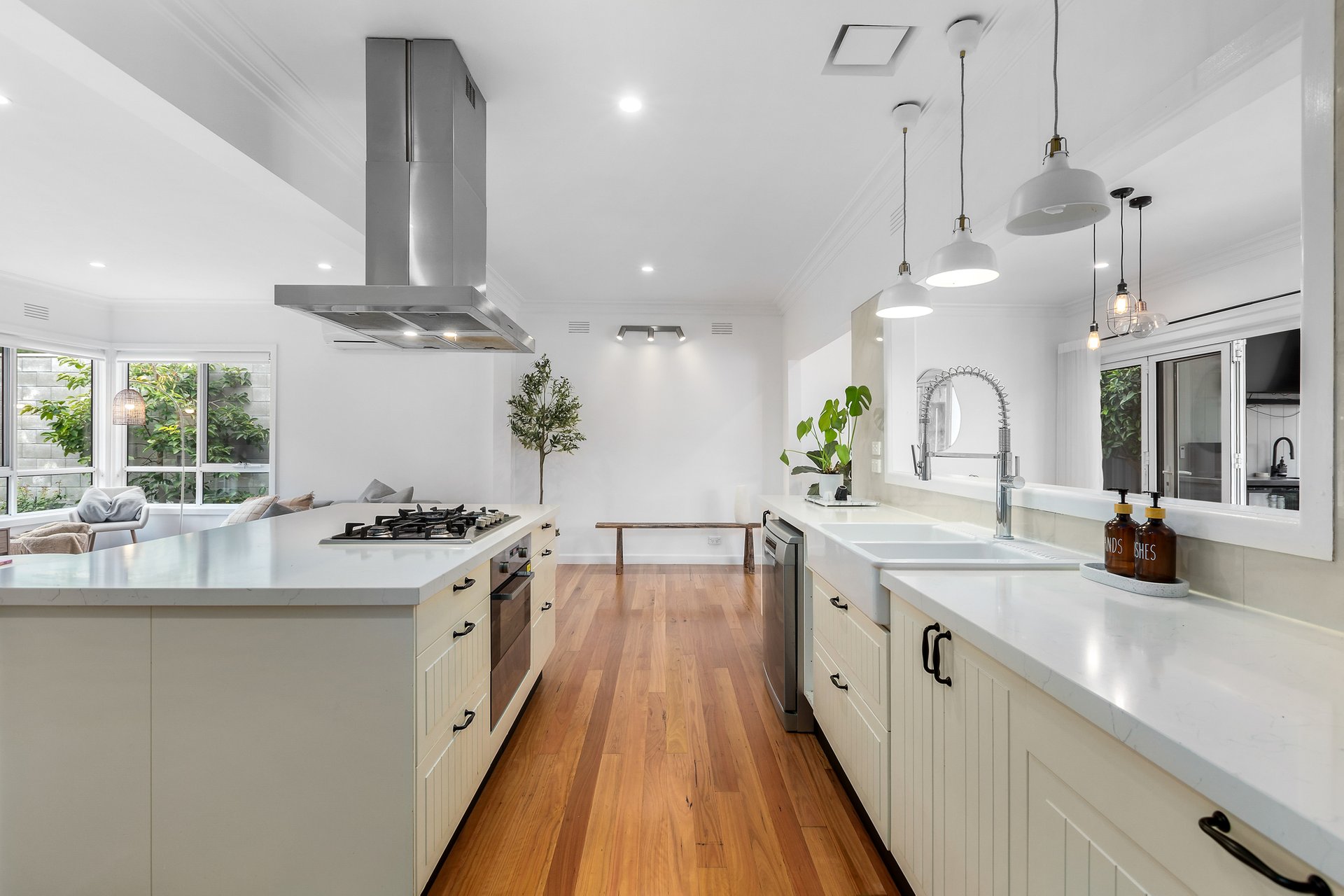 A standout from the street and even better once inside, this stylishly renovated home delivers bright, modern family living with a beautifully private entertainer’s setting to match. At its heart, a showpiece stone-bench kitchen with stainless steel appliances creates the perfect divide between sunlit living and dining zones, making everyday life and hosting effortless.
