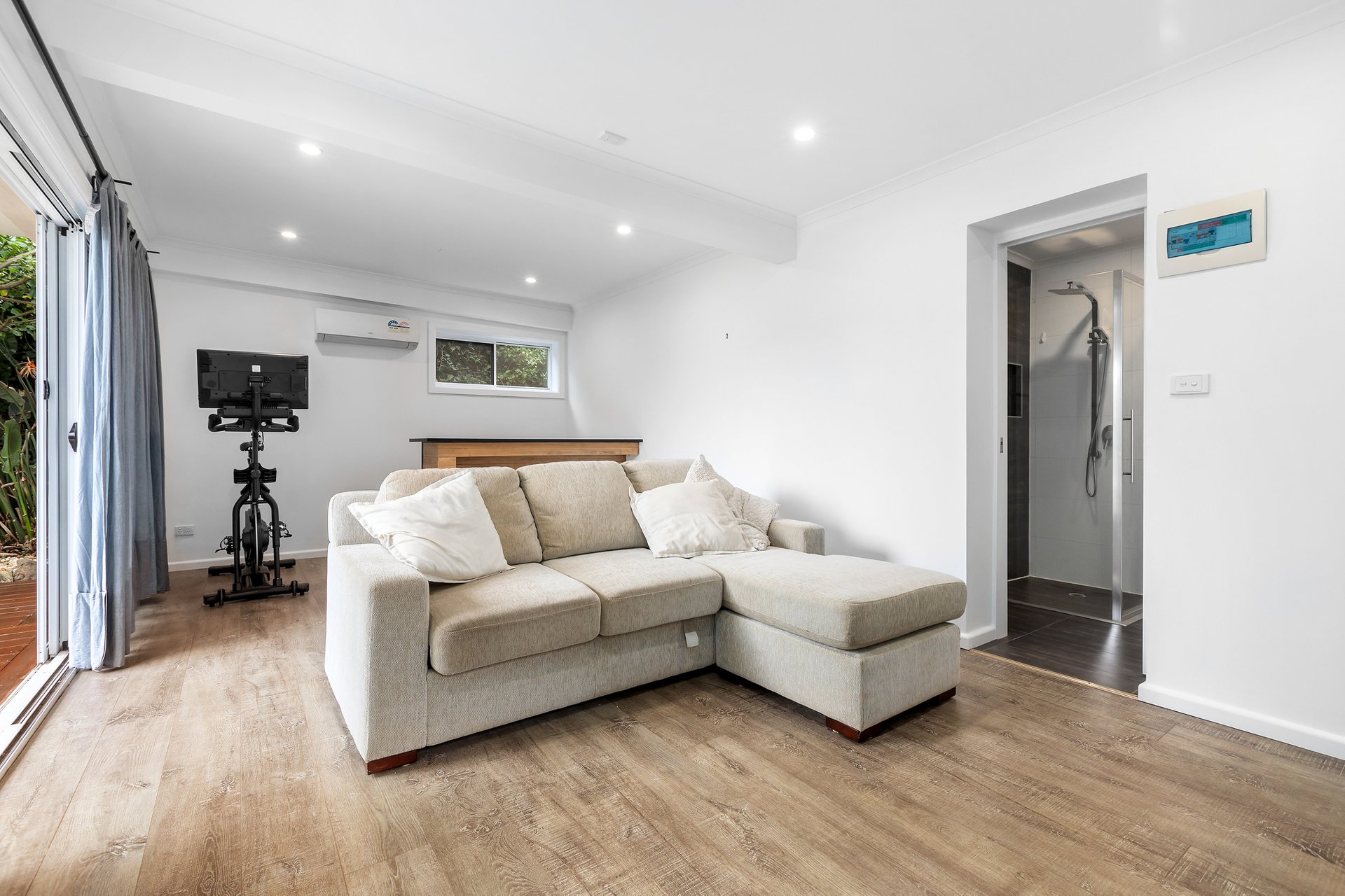The main bedroom is a true retreat, featuring a walk-in robe and a sleek ensuite highlighted by a freestanding bath, while two additional robed bedrooms are serviced by a deluxe, fully tiled family bathroom. Adding real flexibility is the separate bungalow/studio/home office—complete with its own bathroom—ideal for working from home, guests, or creative space.