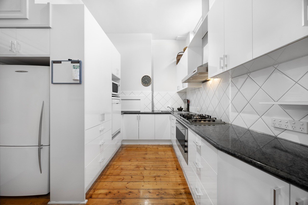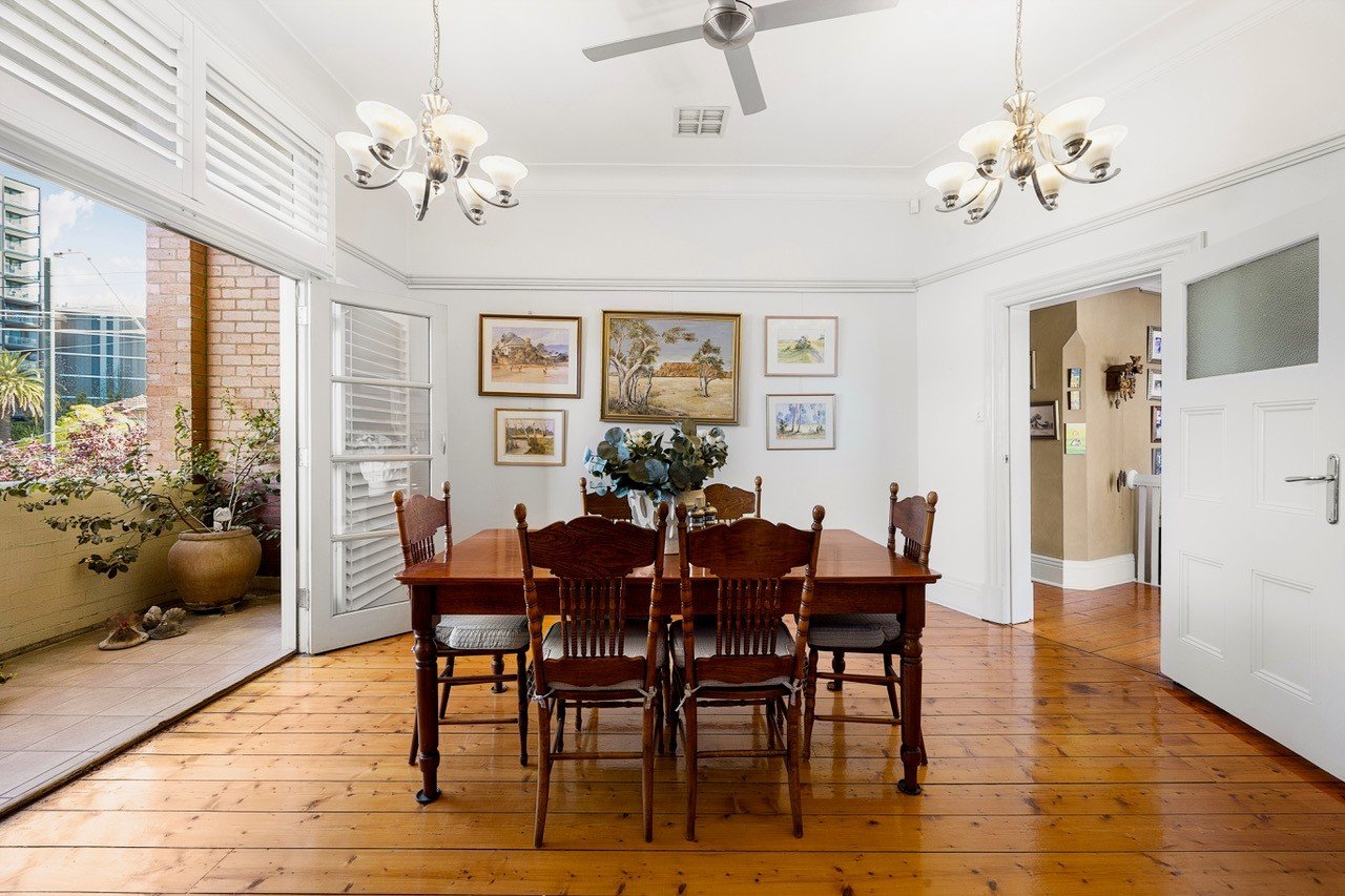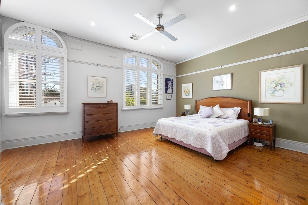 As you walk up the stairs (or stair lift) you are greeted by a personalised gallery which you can curate to your own desire should you be lucky enough to get the keys. Spanning across 4 shopfronts gives some perspective on the size you are about to encounter. Polished timber floors are underfoot through the entire property adding to the character of the period while modern upgrades such as double glazing bring it into the 21st century.