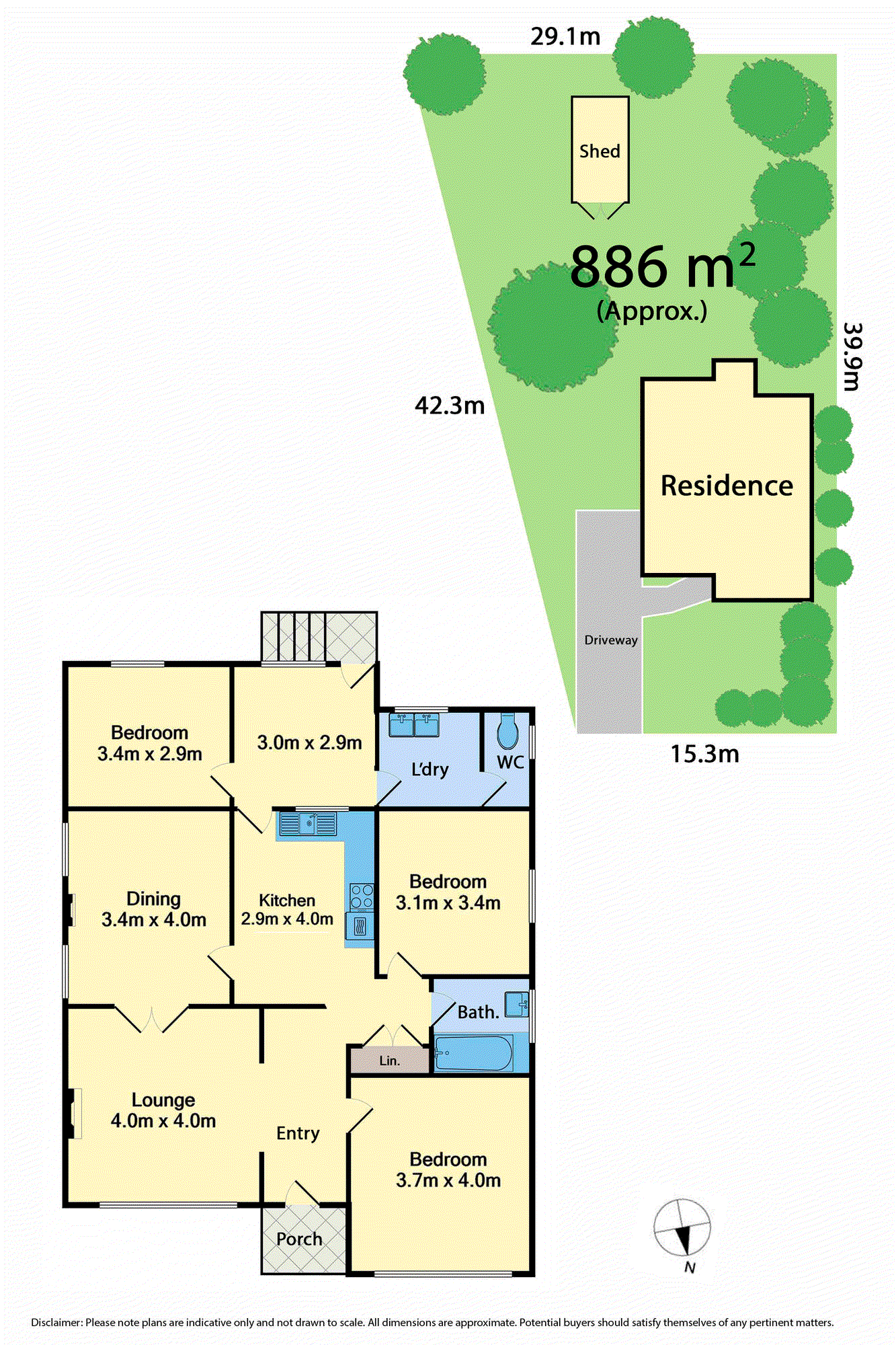Set toward the front of the block, the original red-brick home offers three well-sized bedrooms and a traditional layout that holds clear potential for renovation or extension. For buyers looking to retain and rejuvenate the existing dwelling, the home provides a solid foundation with character and long-term appeal.