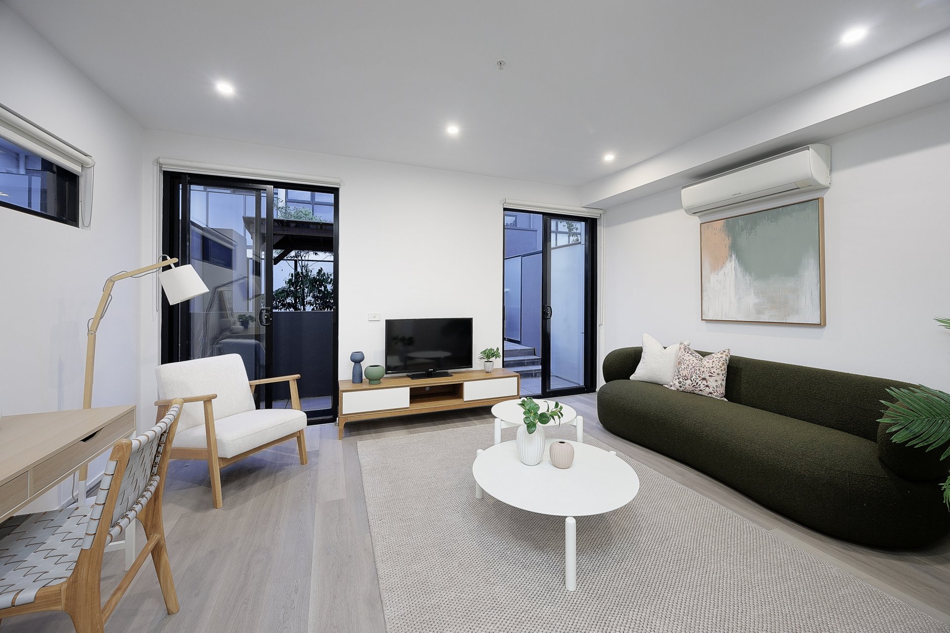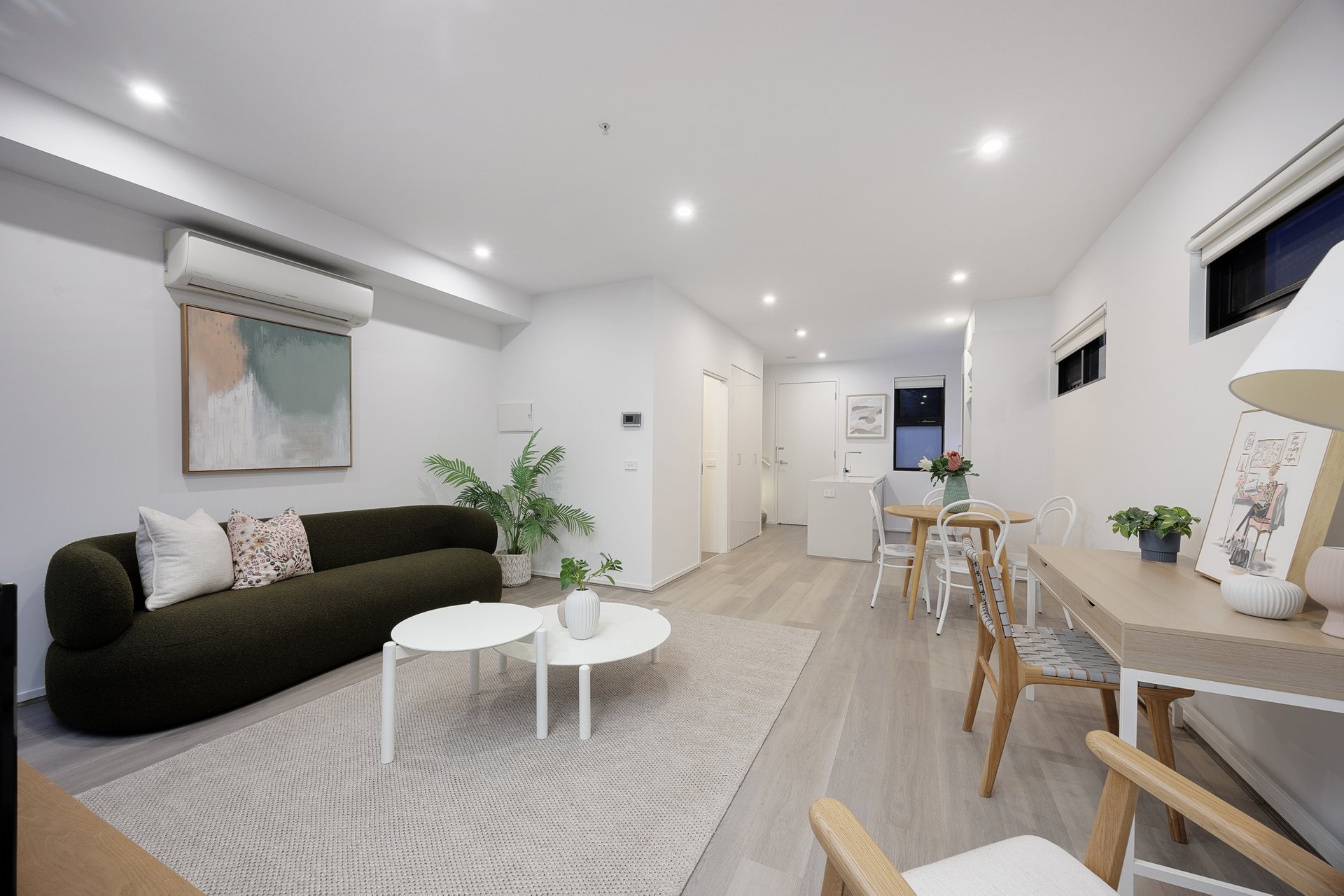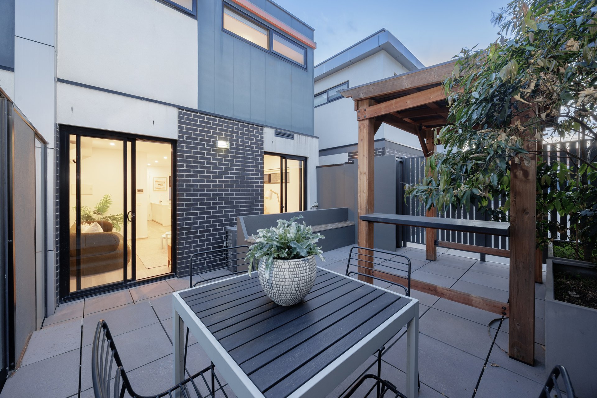 This bright, superior two storey house features open plan living, dining, sparkling kitchen including stone benchtops, Smeg stainless steel appliances, mirrored splashbacks and sleek cabinetry all flowing though to the sunny north facing, paved entertainers courtyard complete with pergola. Upstairs, the two bedrooms are spacious, with mirrored built-in-robes, split system air-con and a bright, tiled bathroom.