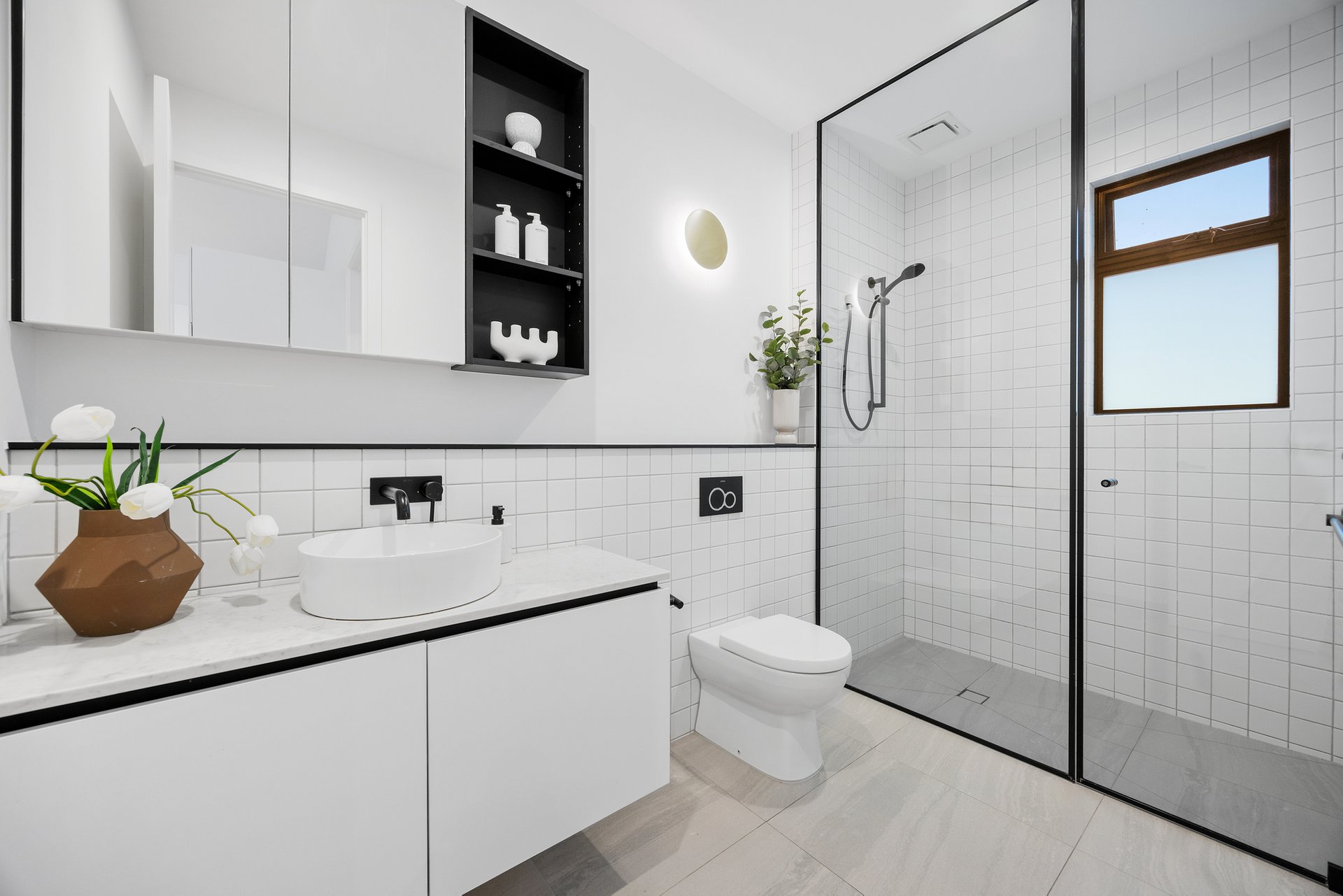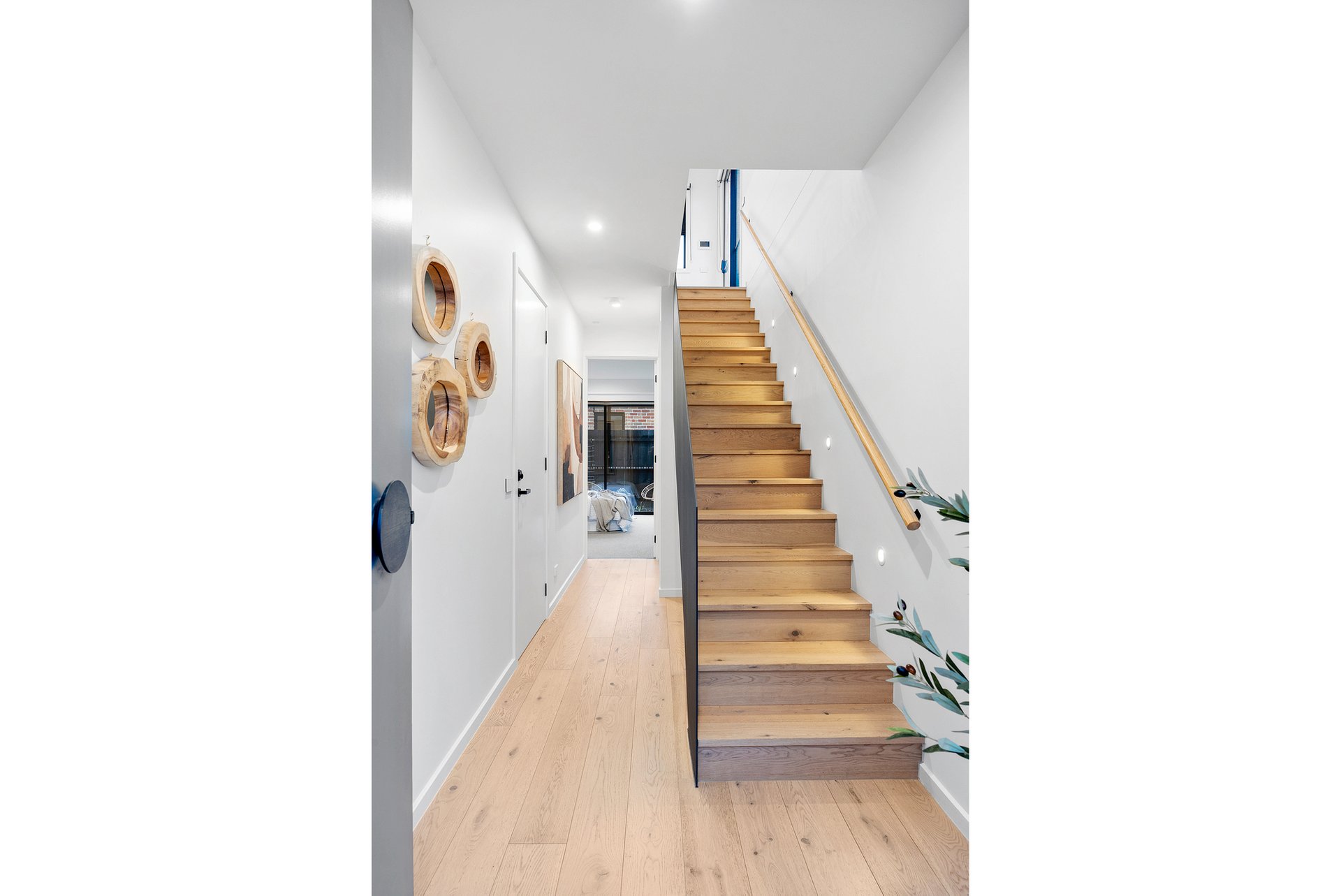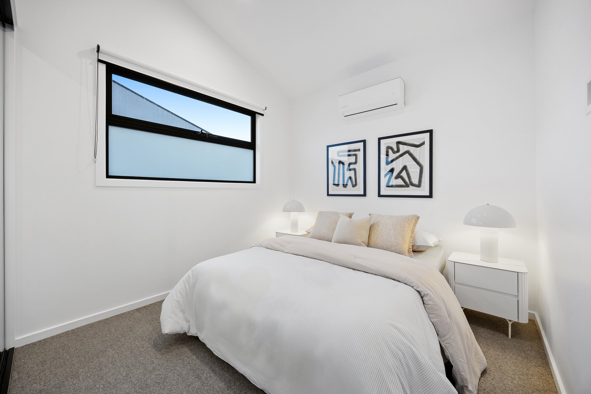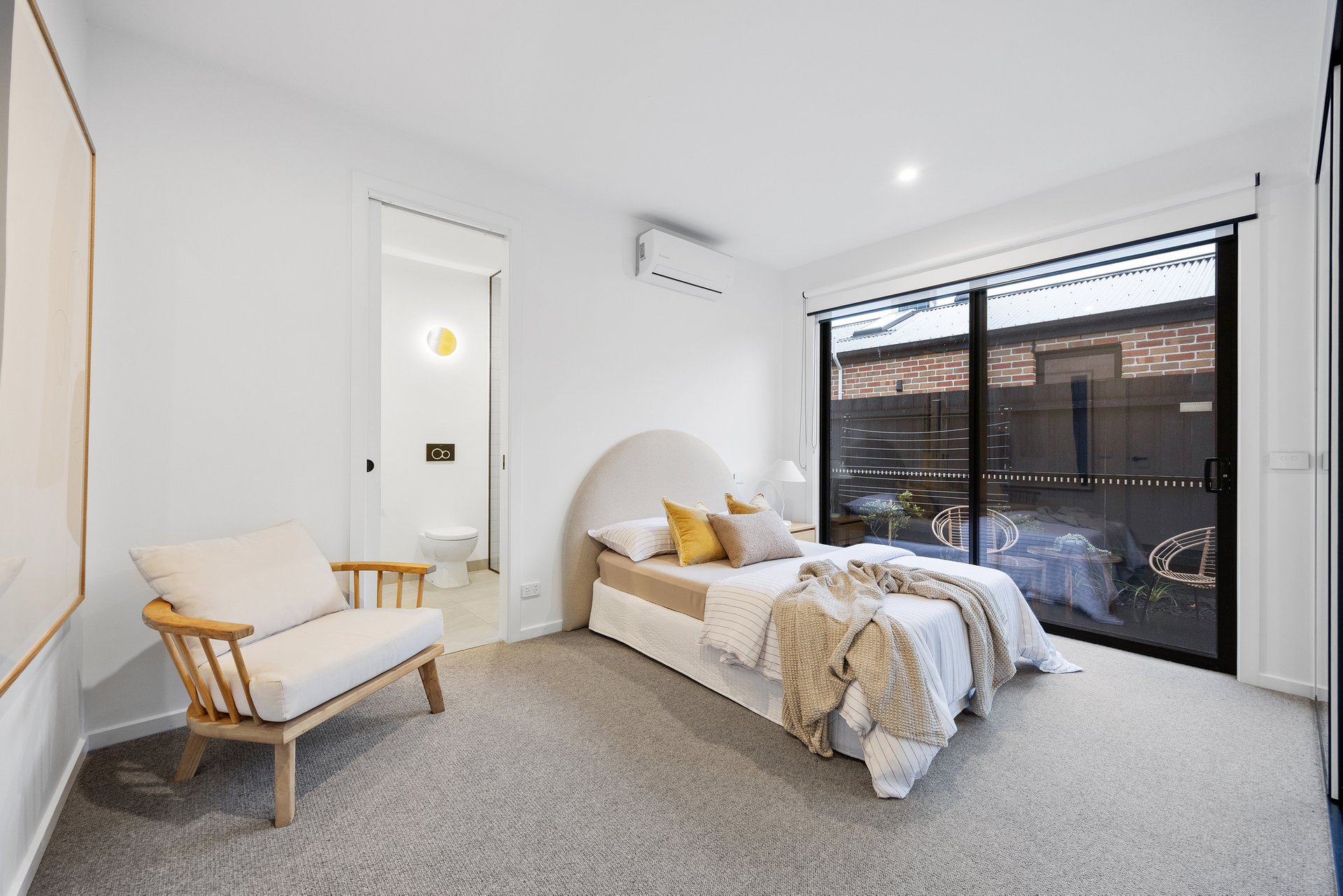 The master suite, privately positioned on the ground floor, boasts built-in robes, a modern ensuite, and direct access to a serene courtyard. Upstairs, the light-filled open-plan living, dining, and kitchen space impresses with soaring raked ceilings and a seamless connection to the balcony - ideal for relaxing or entertaining.