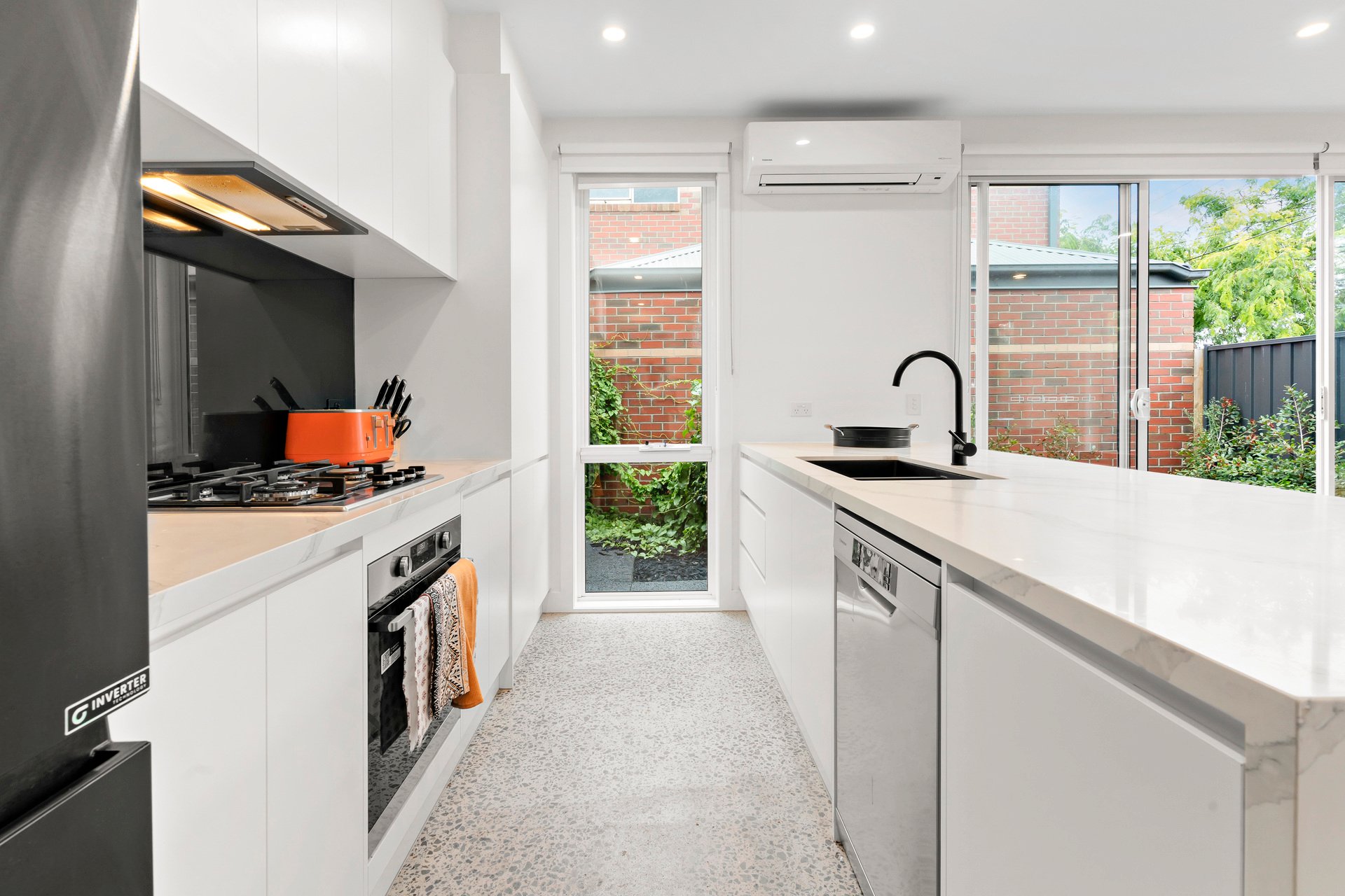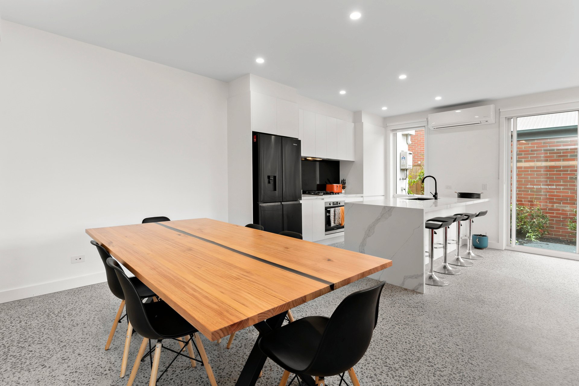 Take a contemporary approach to enjoying every Kingsville attraction. This exceptional townhouse applies cool current day thinking to a city edge location with a long established reputation as a desirable pocket close to Somerville Road cafes, Kingsville Primary School and Cruickshank Park. Downstairs living and dining areas featuring polished concrete floors include an open-plan kitchen distinguished by stone bench-tops, stainless steel appliances and ample casual meals space while a courtyard backdrop is landscaped for low-maintenance ease. Upstairs accommodation comprising a main bedroom with a walk-in robe and ensuite, 2 further bedrooms and a central bathroom conveys designer flair, distinctive touches and outstanding attention to detail. Heating/cooling. Secure garage plus additional parking. Impressive.