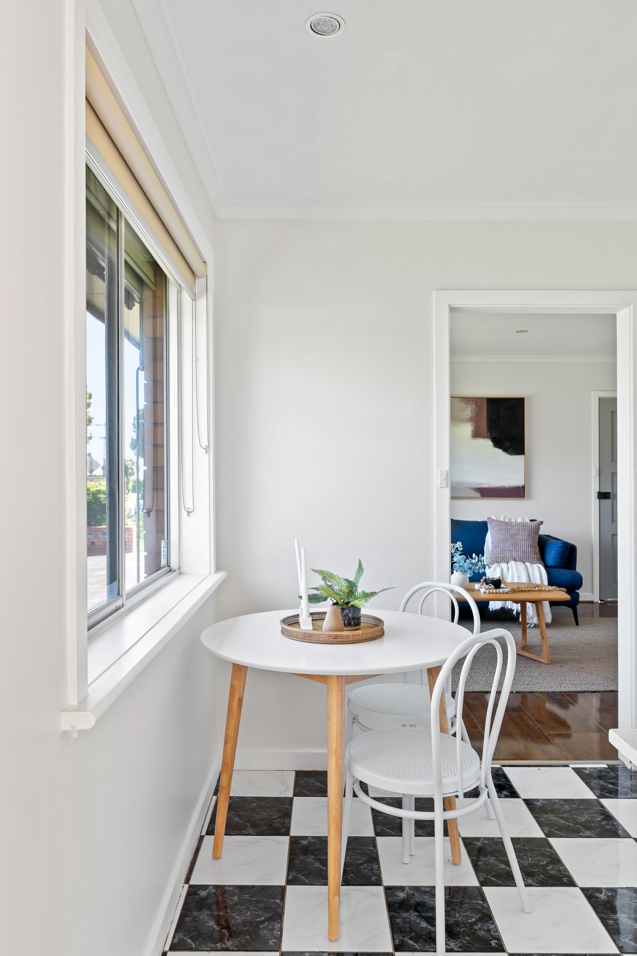 Discover the charm and modern comforts of this delightful unit located in Thornbury. Offering a balance of style and functionality, this residence features two spacious bedrooms with built-in robes, providing ample storage and a cosy retreat. The inviting open-plan living area caters to relaxation and entertainment with its generous layout, complemented by a chic dining nook in the modern kitchen, equipped with sleek cabinetry and a gas stove. The elegantly designed bathroom includes a contemporary shower, vanity, and integrated laundry facilities, enhancing everyday convenience. The home’s expansive courtyard is perfect for outdoor enjoyment and entertaining guests, while polished wooden floors and air conditioning provide year-round comfort. Additional features include a dedicated carport for secure parking and an inviting porch, enhancing the home's welcoming ambiance. This home offers a harmonious blend of practicality and charm for those seeking a comfortable lifestyle in a convenient location.