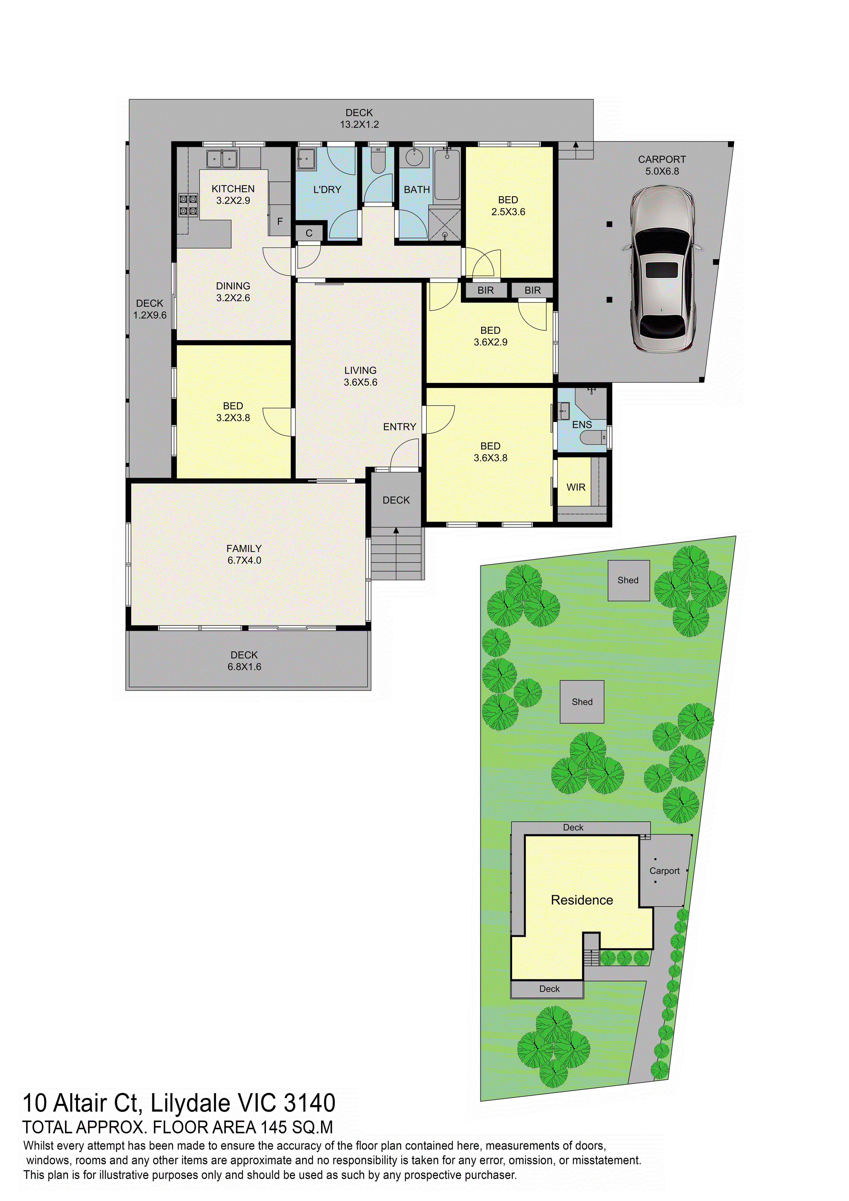 Accommodation needs are taken care of by the four bedrooms, serviced by a large family bathroom, plus master with ensuite and built in robes.