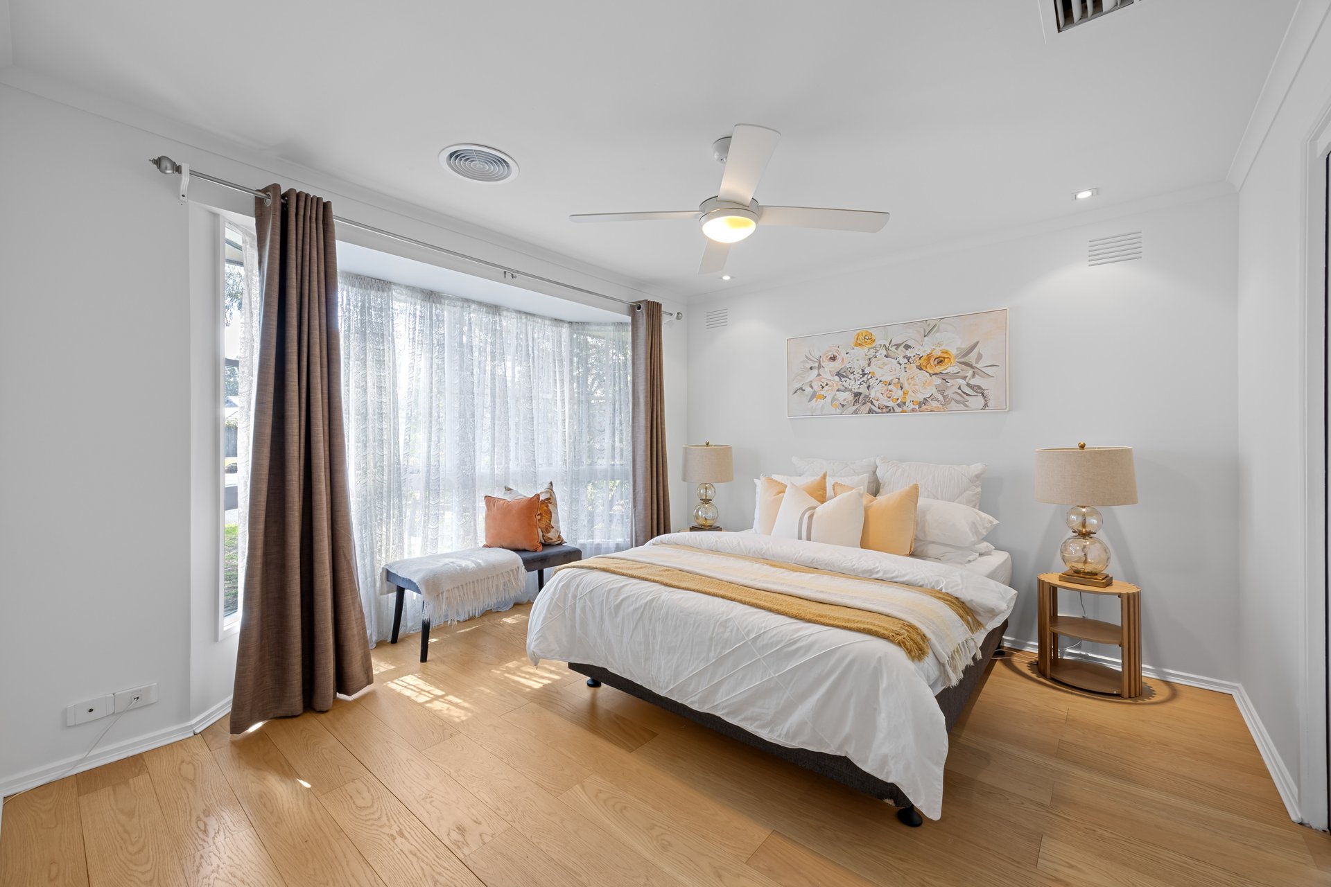 - Main bedroom with bay window, walk‑in robe & private ensuite
