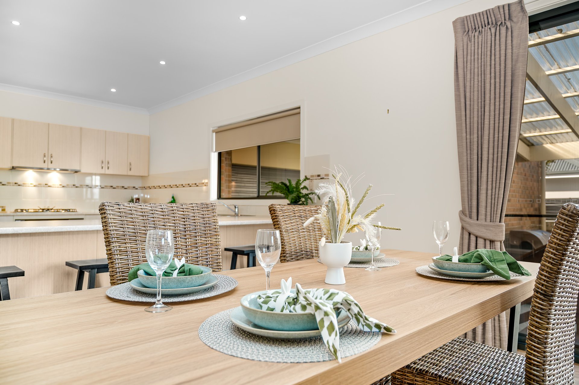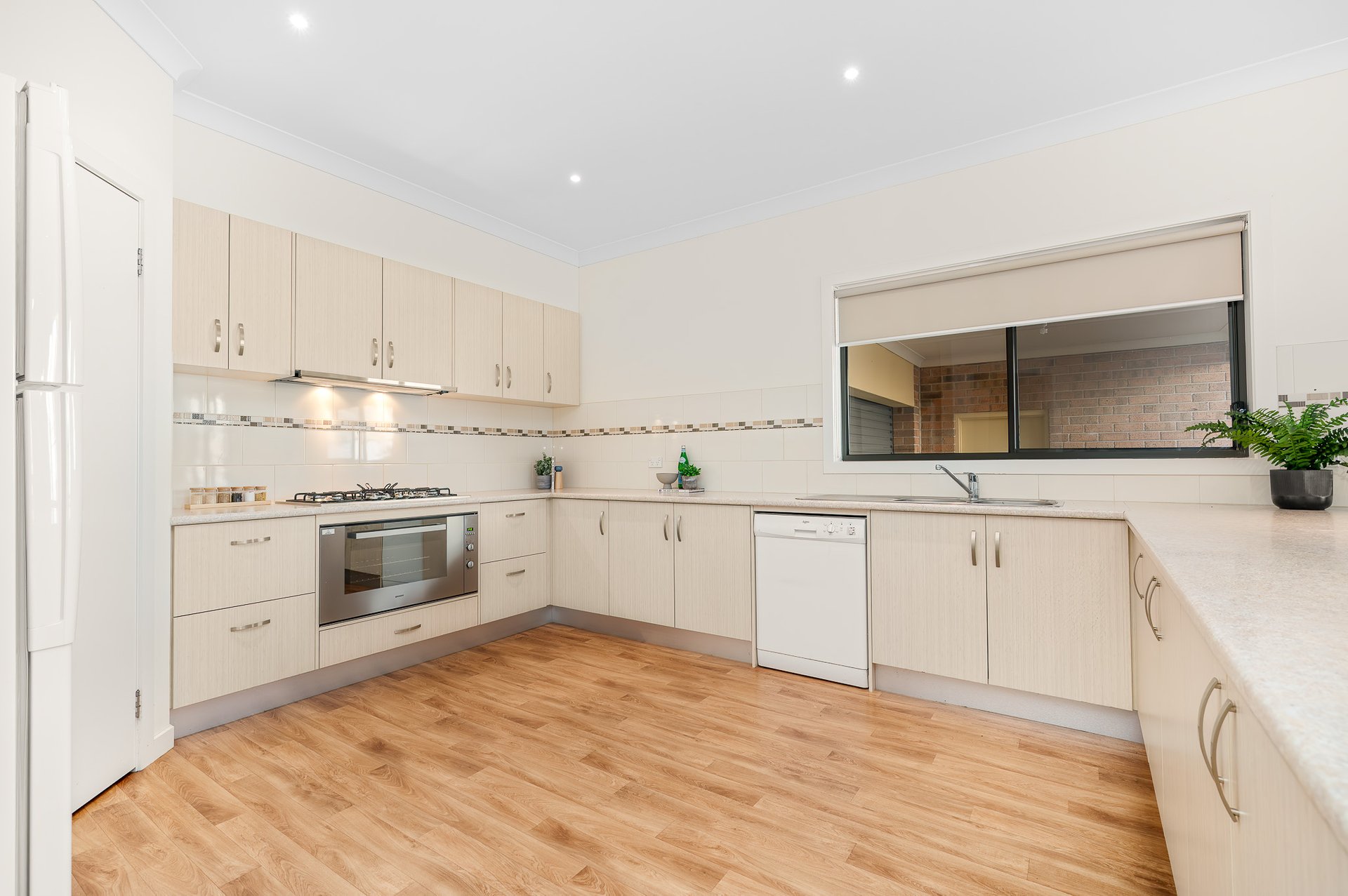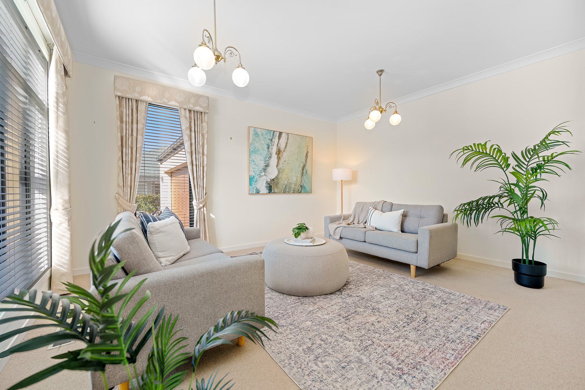 At the heart of the home, a large spacious kitchen boasts stainless steel appliances, including a 900mm oven and gas cooktop, and flows effortlessly into the expansive dining and living area—ideal for both everyday living and entertaining. A separate formal sitting room at the front of the house provides a peaceful retreat with a lovely garden outlook.