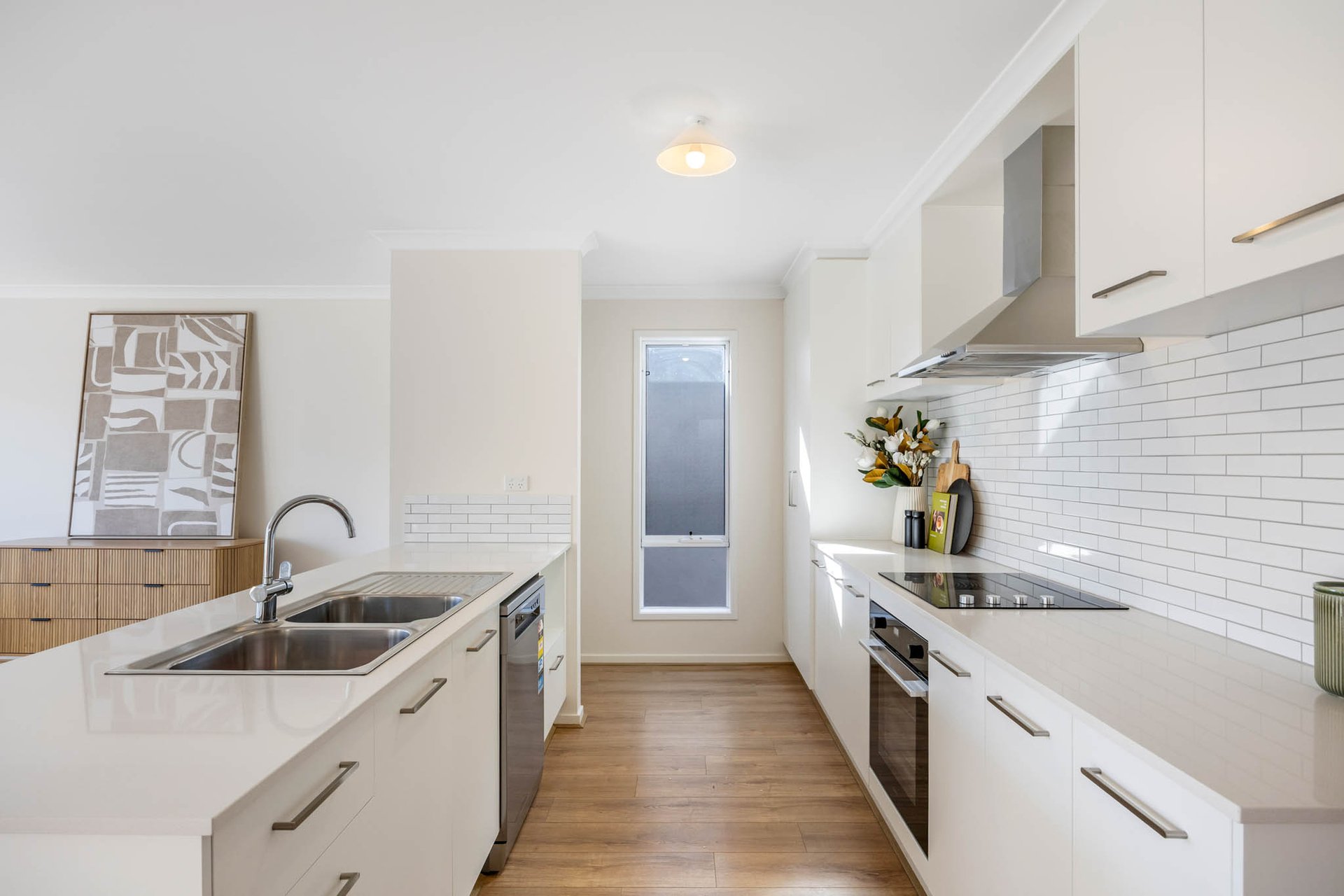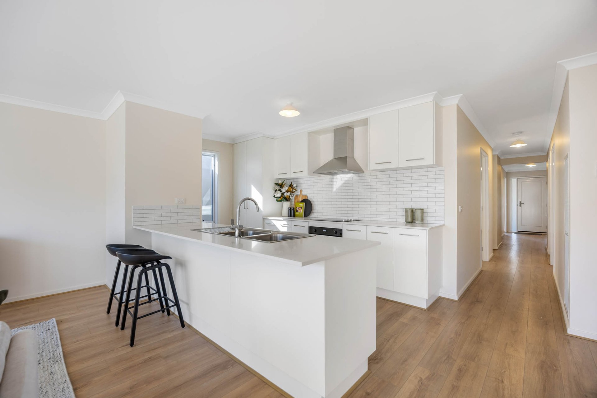 Beautifully positioned in the Maplestone Estate, this polished residence offers a quietly luxurious mood underlined by pale oak-tone floors, a crisp, pared-back palette, and generous natural light throughout.