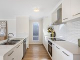 A smart galley kitchen anchors the plan with shimmering stone benchtops, a walk-in pantry, and stainless-steel appliances including a dishwasher. Adjoining dining is sunlit and welcoming, flowing to a relaxed living zone, while a private alfresco patio steps out to the secure rear garden.