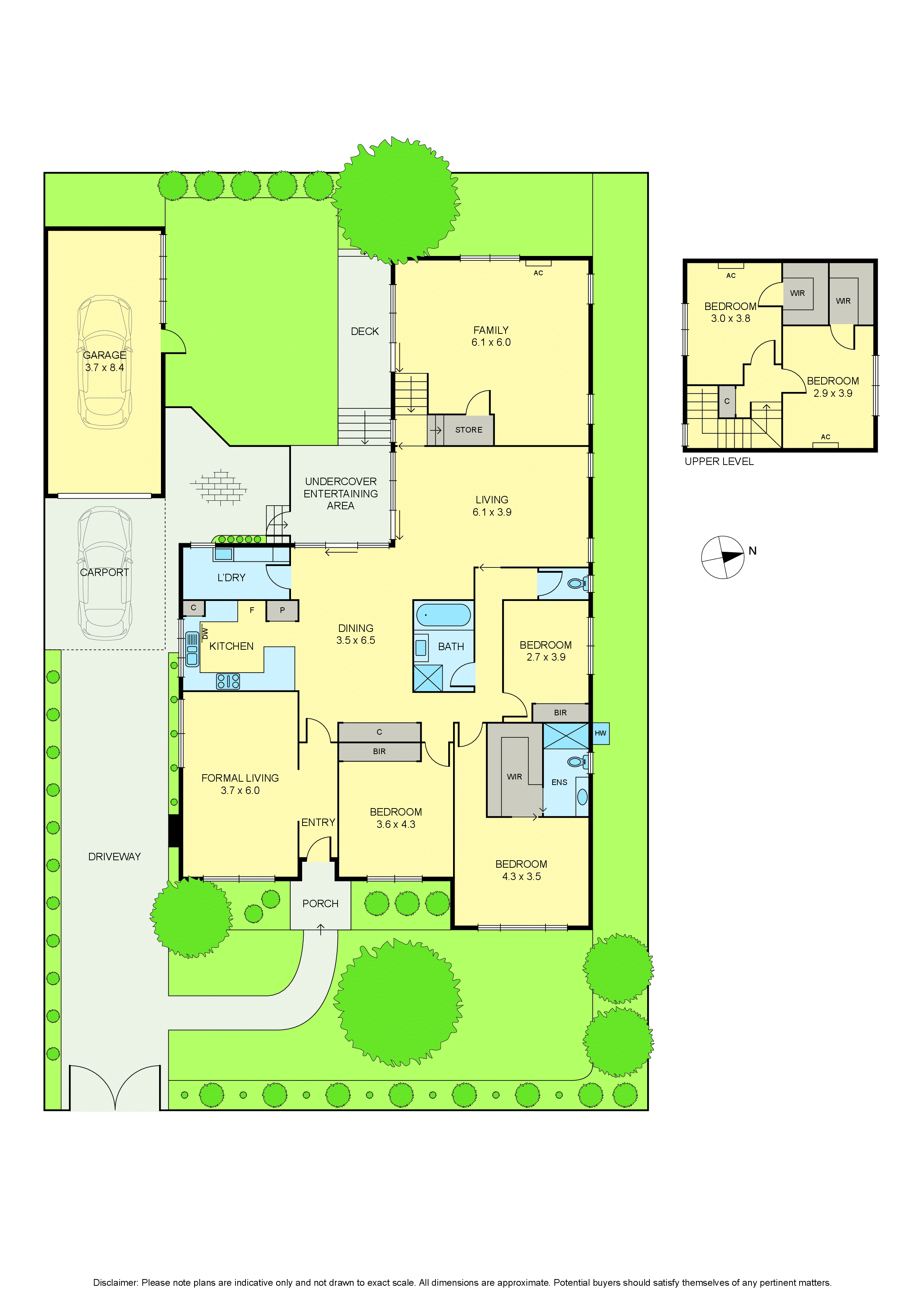Downstairs features 3 bedrooms which includes the magical master bedroom which benefits from walk-in robe storage and a rain shower ensuite with timber vanity, while the top floor is reserved for 2 additional bedrooms which both deliver walk-in robes. Summer won’t be able to come around fast enough so you can enjoy the entertainer’s deck and landscaped garden on a nightly basis! Other property extras include a laundry, ducted heating, evaporative cooling, reverse cycle cooling, ceiling speakers, single carport, and extra-large single garage.