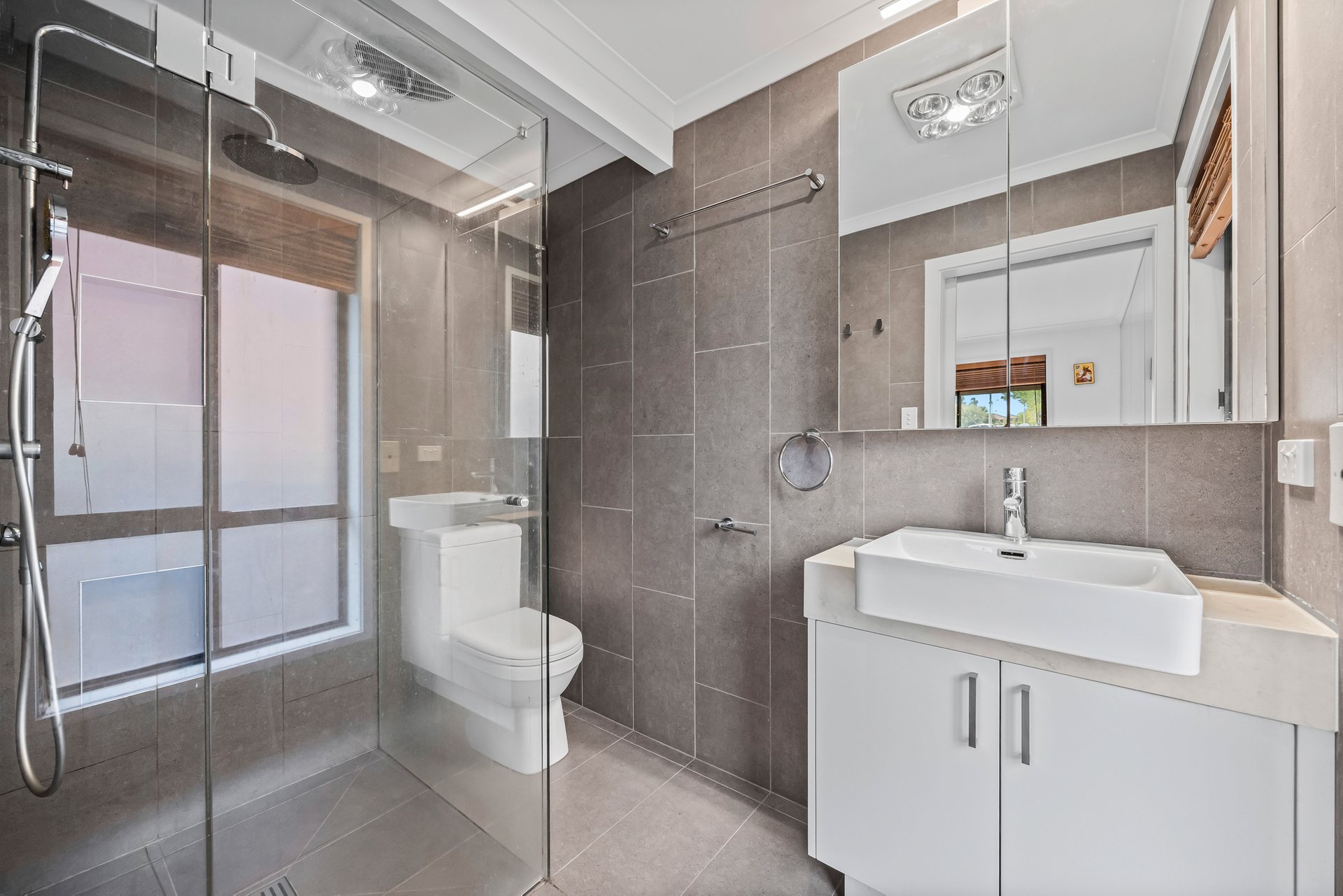 Practical touches enhance everyday life: ducted heating and cooling with Wi-Fi control, a dedicated home office, laundry with outdoor access, and a two car carport with storage. A kitchenette beneath the home adds versatility for extended family or entertaining, complemented by manicured gardens surrounding a concrete alfresco zone.
