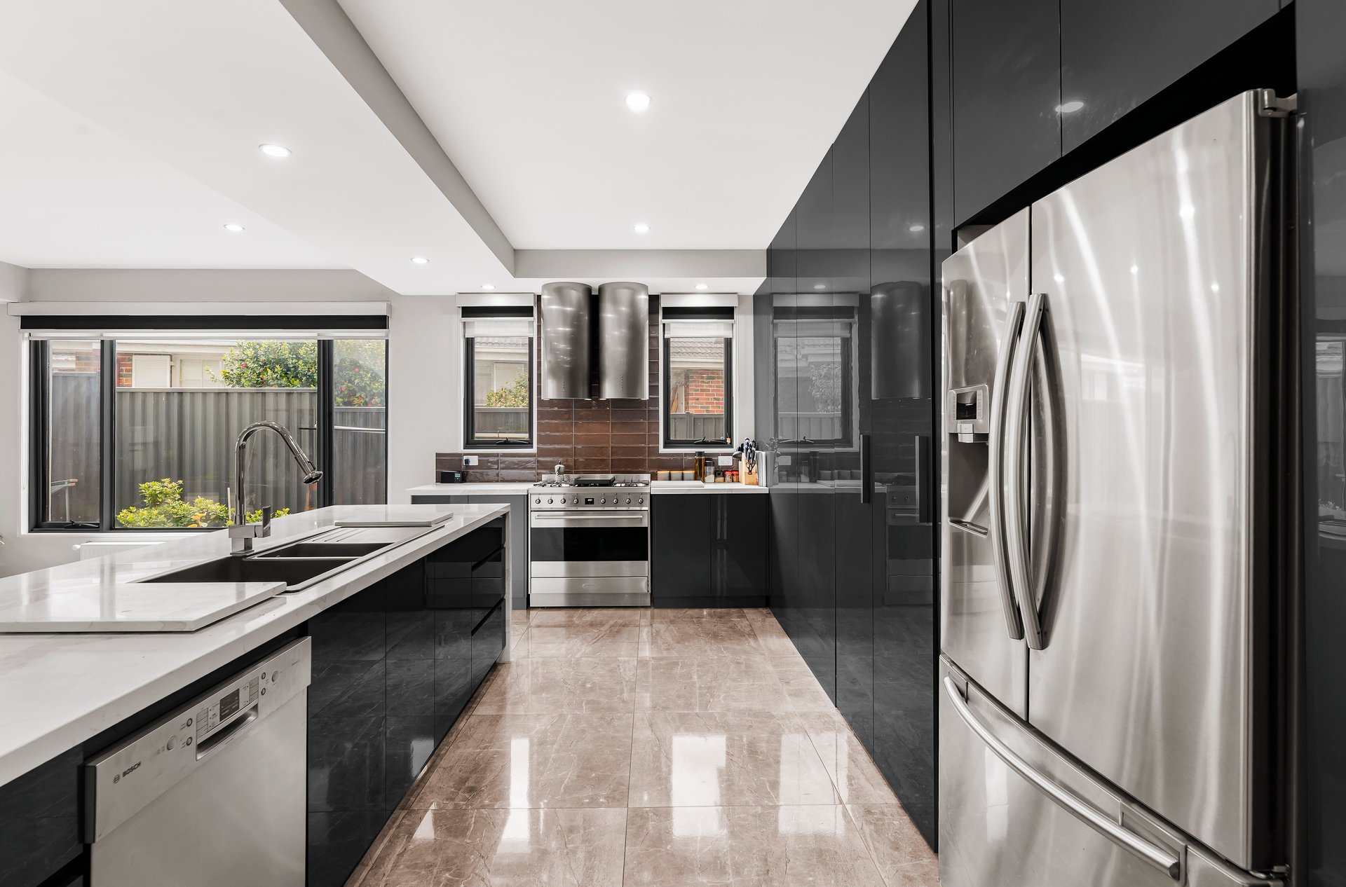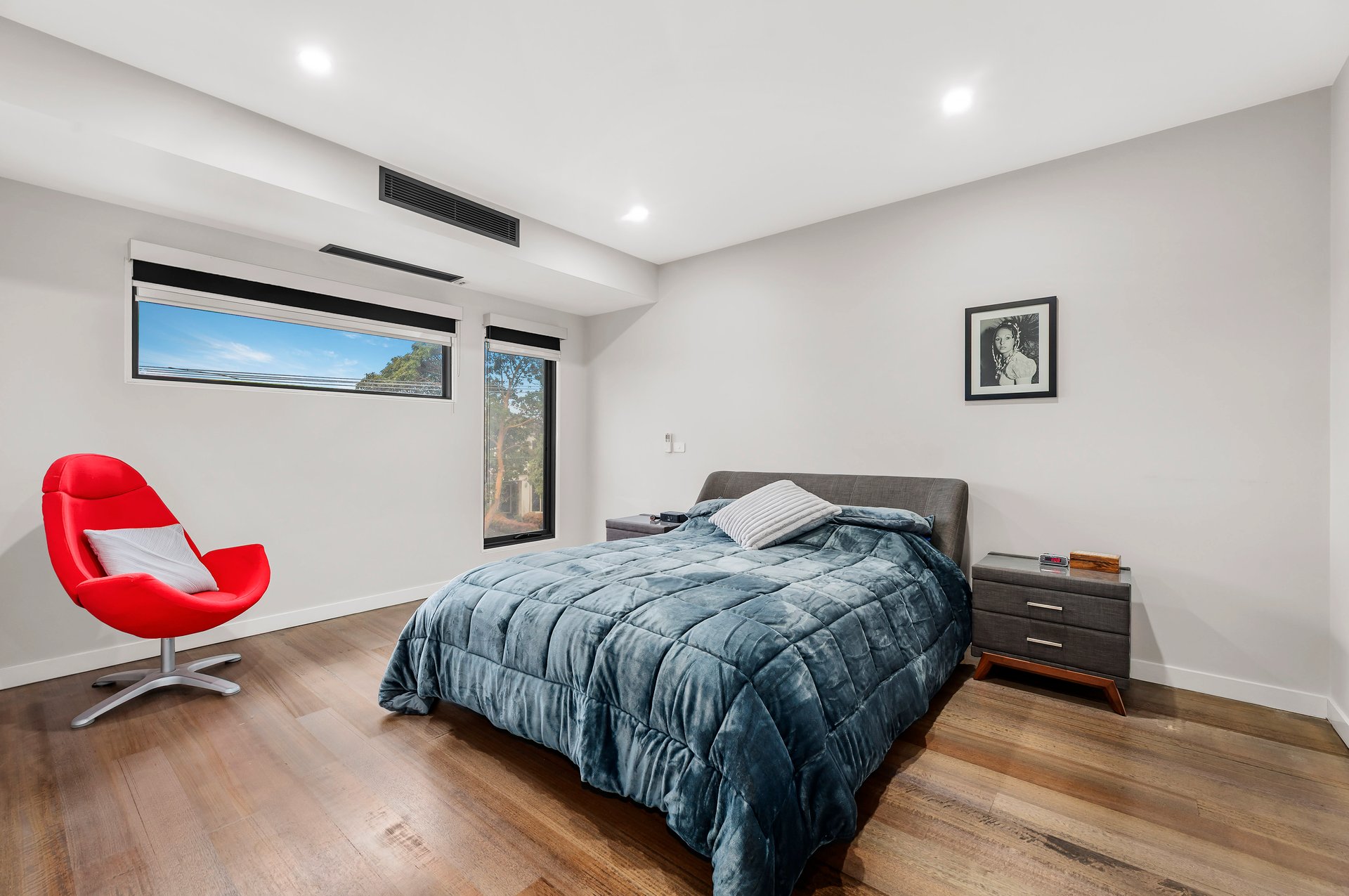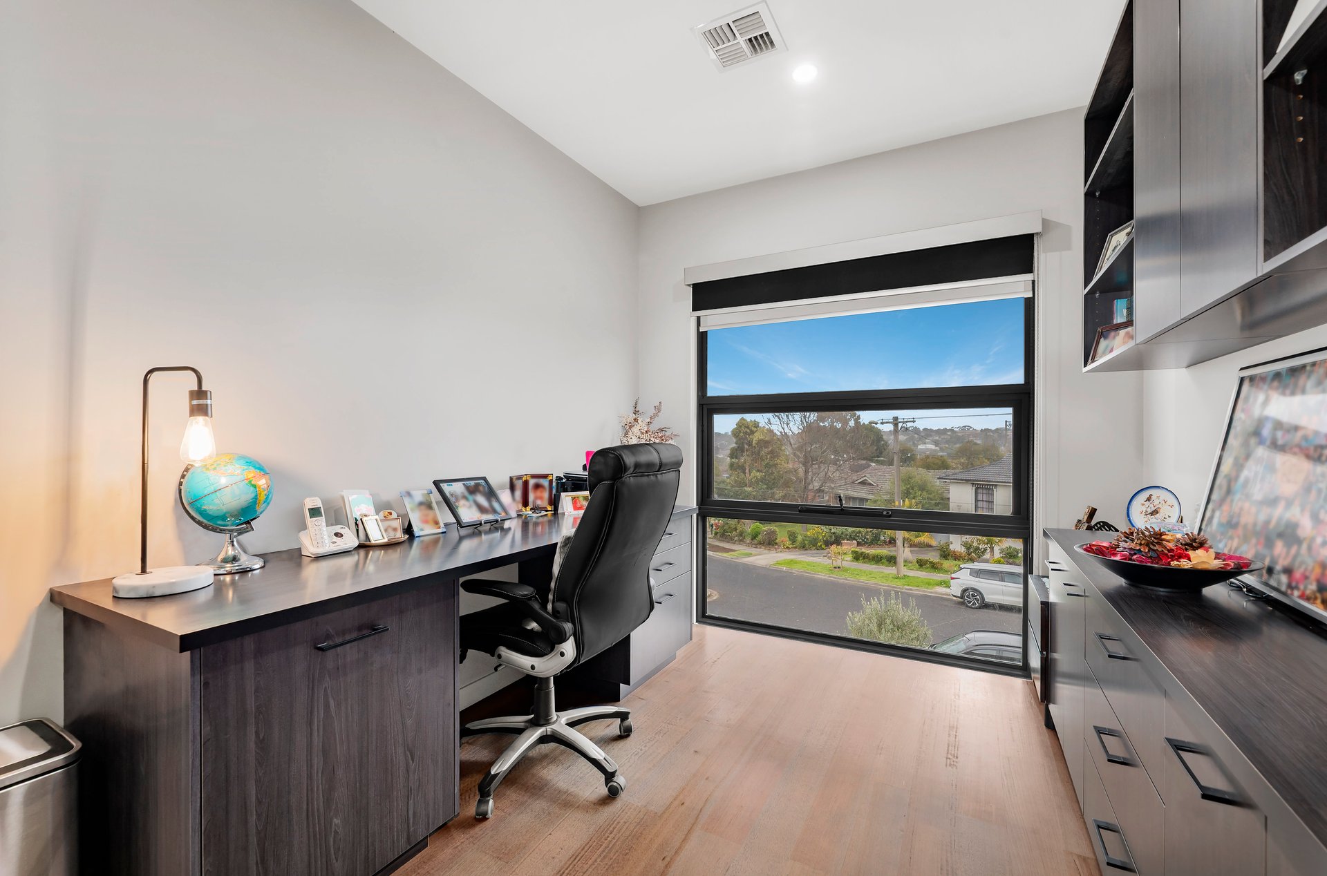 No detail has been overlooked, with hydronic heating, ducted split-system cooling, and electric blinds ensuring year-round comfort. The integration of sustainability is equally impressive, with 26 solar panels producing 6.5kW of power and solar-assisted hot water for efficiency without compromise.