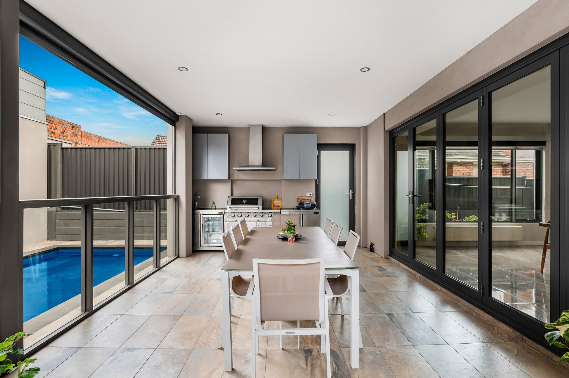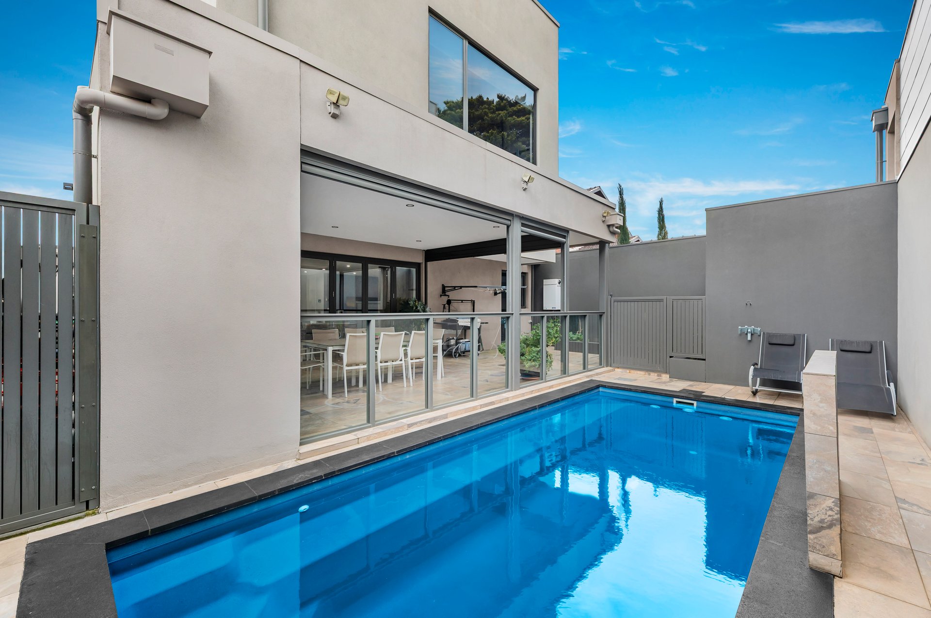 Outdoors, the residence continues to impress with an opulent undercover alfresco, designed for entertaining on a grand scale, overlooking manicured surrounds and a sparkling solar-heated pool that promises resort-style living at home.