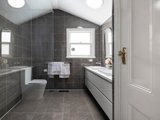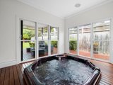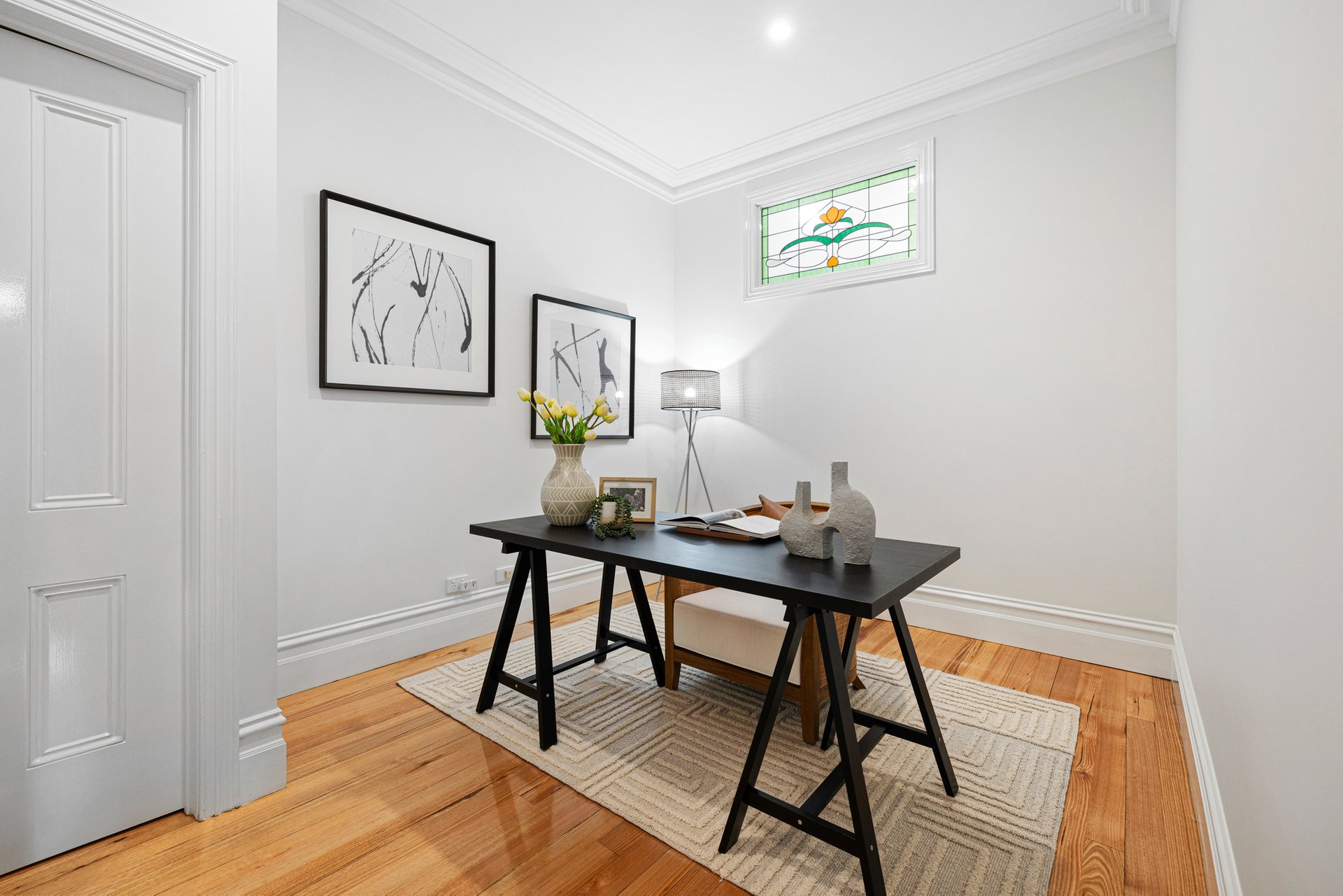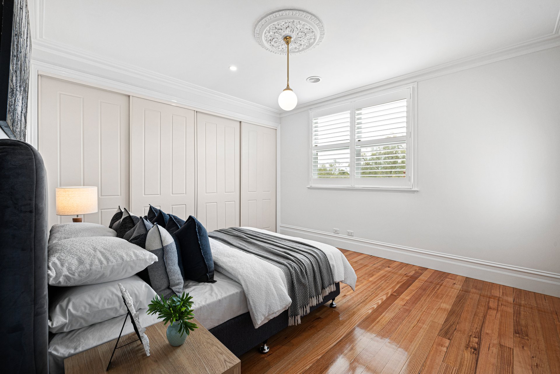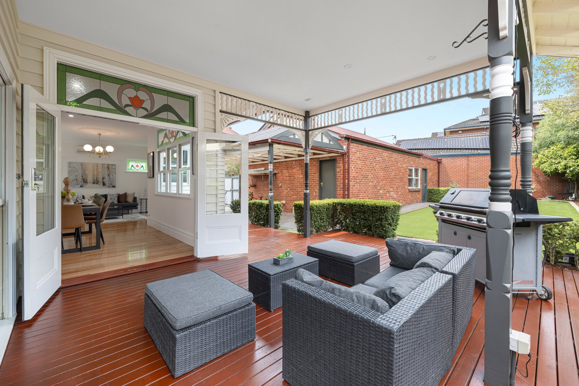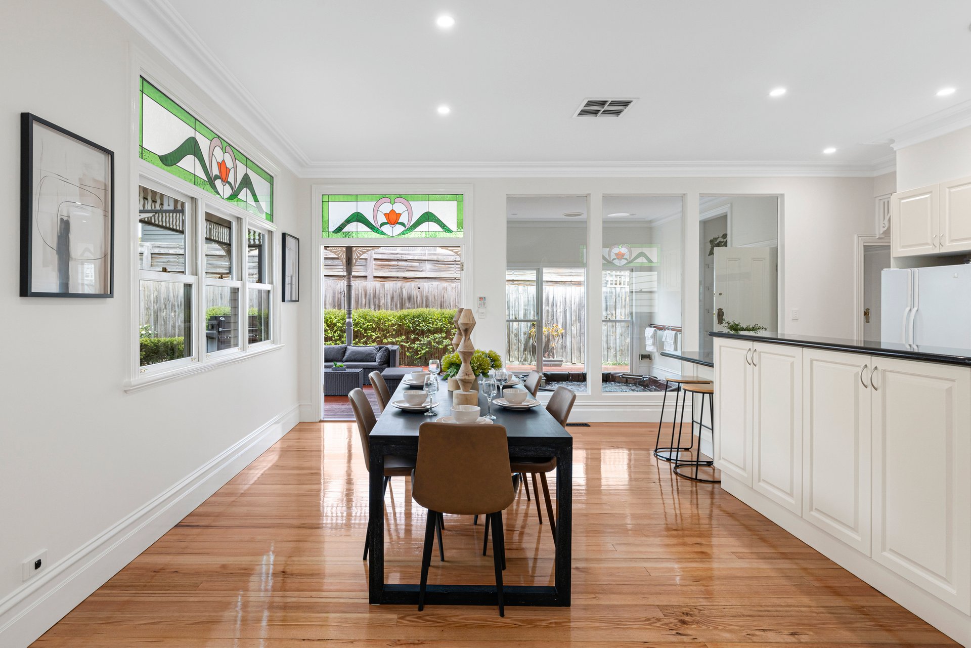 Across the shaded return verandah, the interiors are crowned by soaring ceilings, while polished hardwood floors flow seamlessly under foot. Introduced by an elegant entrance hall, there is a choice of formal living areas including the generous garden-view lounge with a heritage inspired electric fireplace. Families will be drawn to the open plan entertaining zone where there is room to relax and dine warmed by a cosy wood-burner fire. A granite kitchen appointed with European appliances will inspire hosts, while an enclosed spa room and alfresco deck overlooking the mod-grass garden give options of where to unwind.