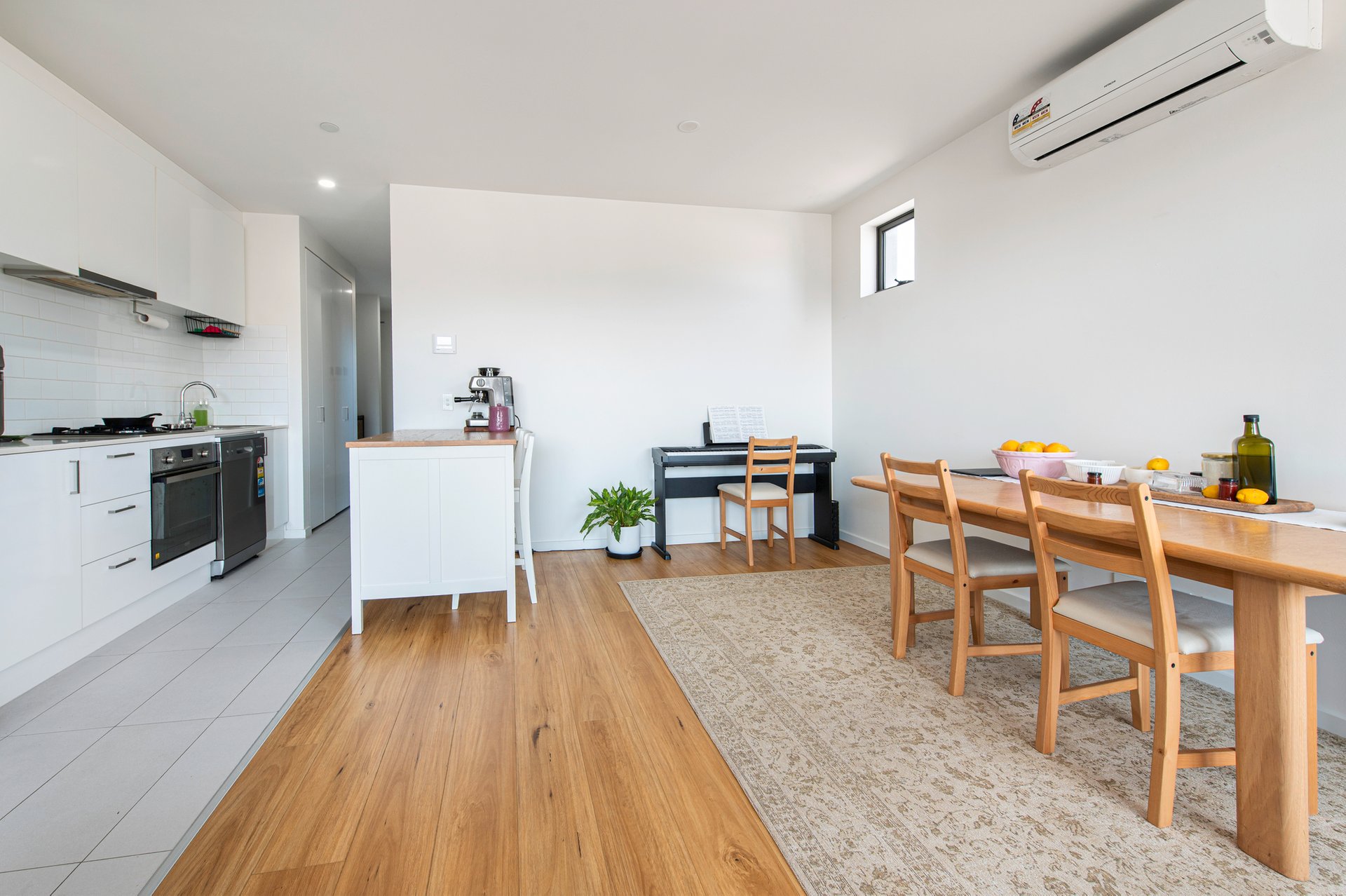At the heart of the home is a generous open-plan kitchen, living, and dining area designed to maximise space and flow. The sleek kitchen features stone benchtops, stainless steel appliances, and good storage space, while the expansive living and dining zone opens seamlessly to a generously sized private balcony with road views—ideal for relaxing or entertaining.