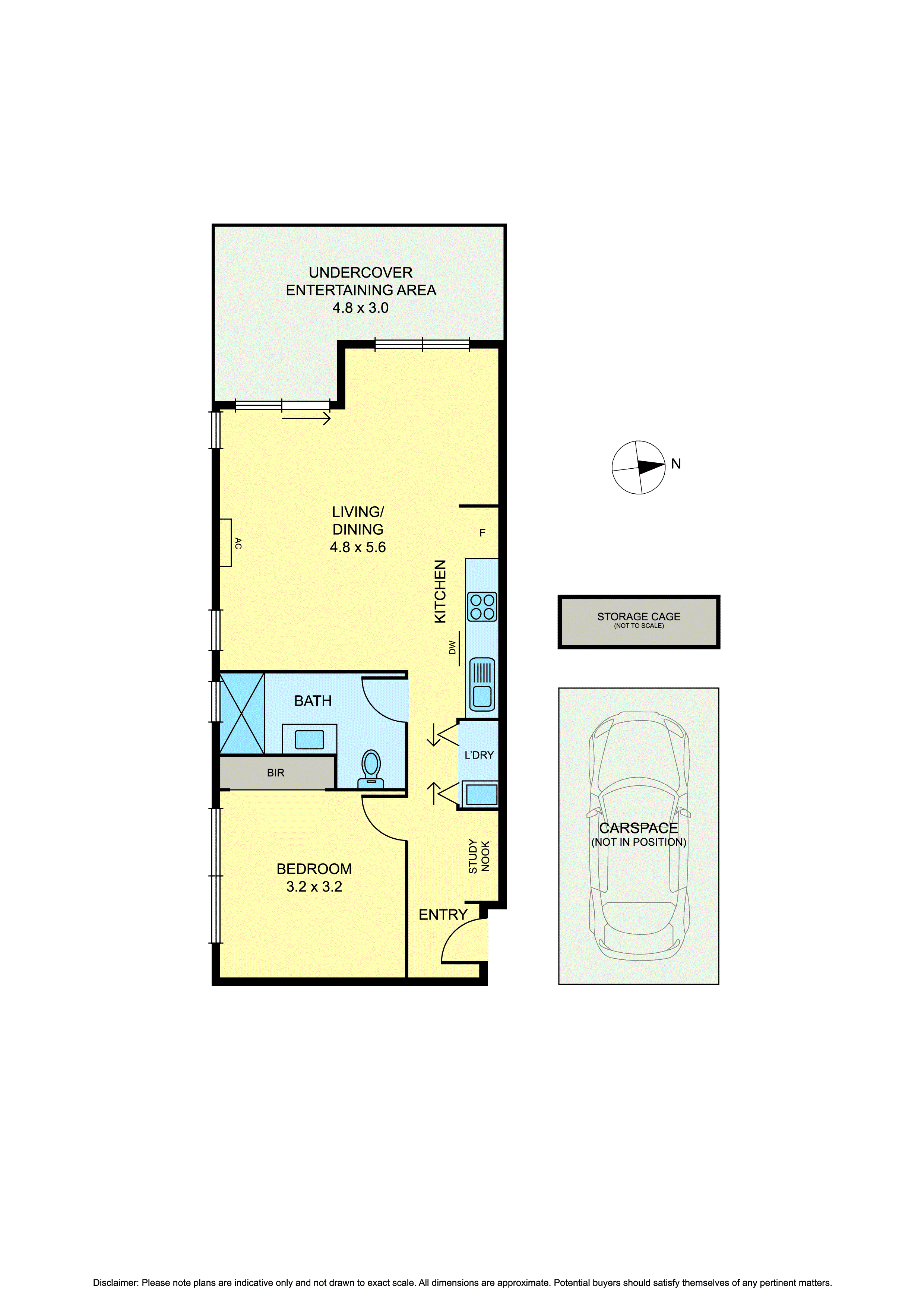 A well-proportioned study nook is cleverly integrated into the layout, making working or studying from home easy and practical. The spacious bedroom includes built-in robes and direct access to a modern bathroom, completing a well-balanced and functional floorplan. Additional features include split-system heating and cooling, secure basement parking with a designated storage cage, and CCTV throughout the building for added peace of mind.