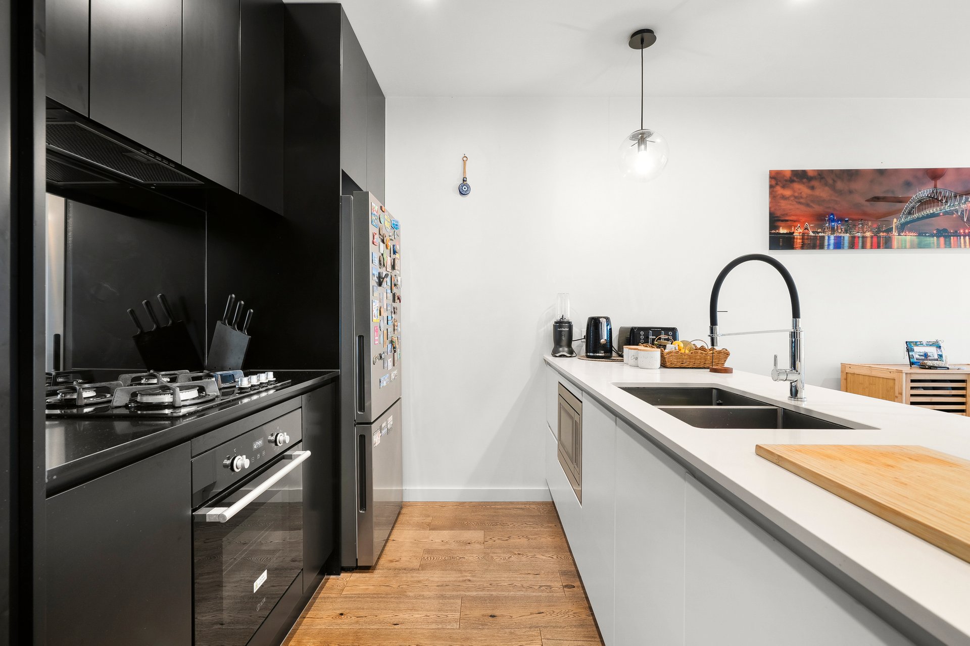 Elegance and sophistication define this first floor haven (which promises 173sqm approx. of total space), and is adorned with eye-catching timber flooring, sublime stone detail, and a wealth of other superior fittings and fixtures. The size and openness of the central living and dining zone needs to be seen to be believed, as does the gourmet kitchen which is fitted with premium ILVE appliances.