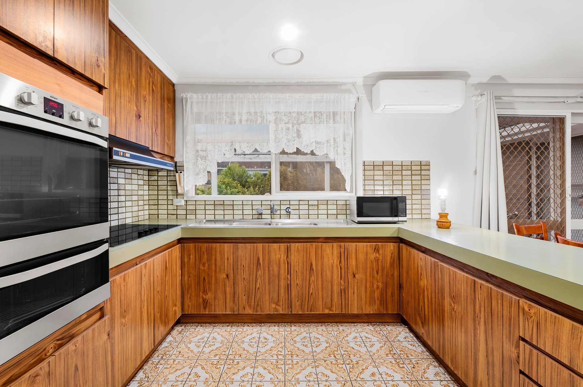 The elevated brick home rests on a generous 650m² (approx.) garden allotment, a sizeable offering ideal for family living. It features dual living and dining areas, one formal and one designed for more casual use, a central kitchen, four robed bedrooms and two bathrooms, including a privately positioned master with an ensuite and walk-in robe.
