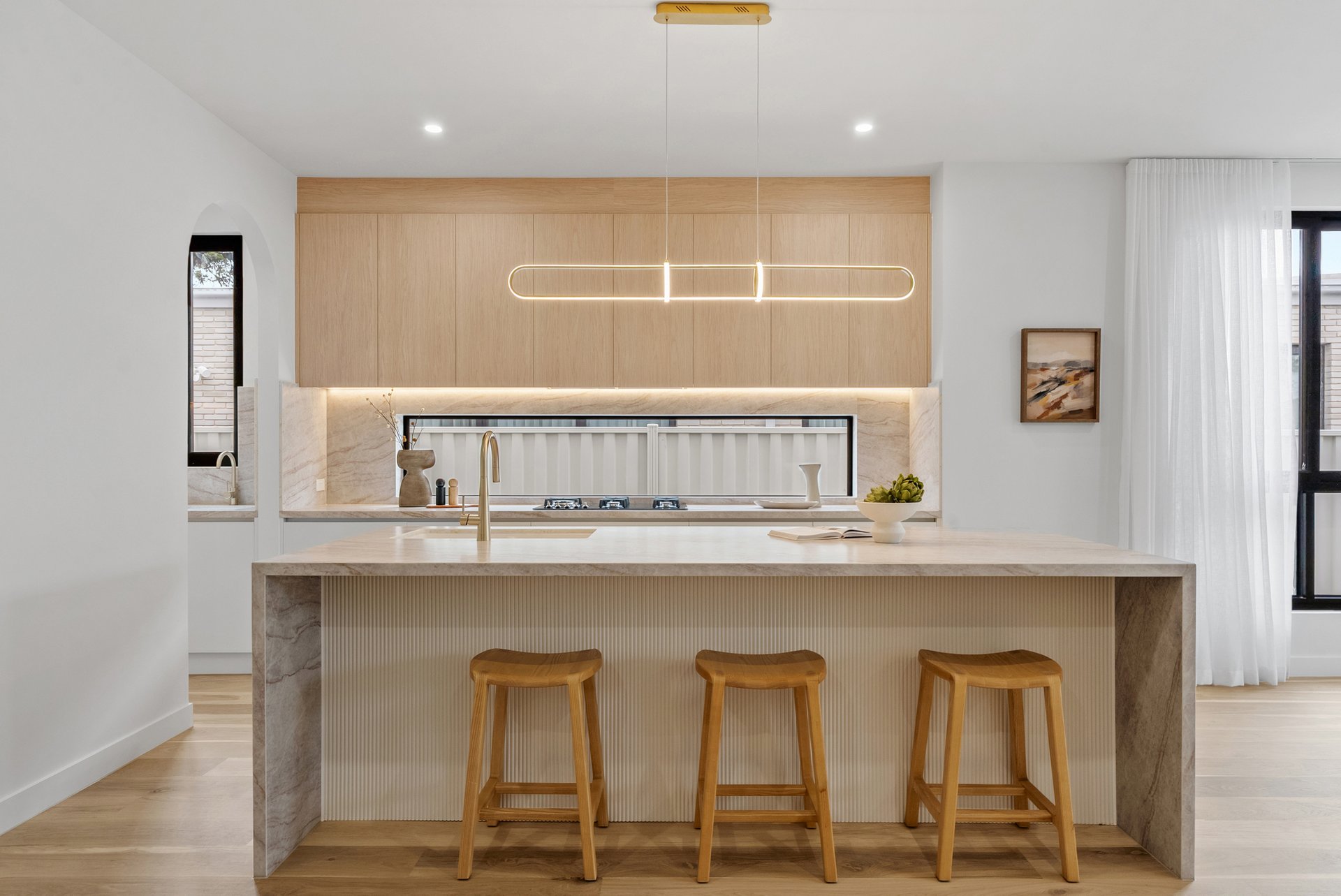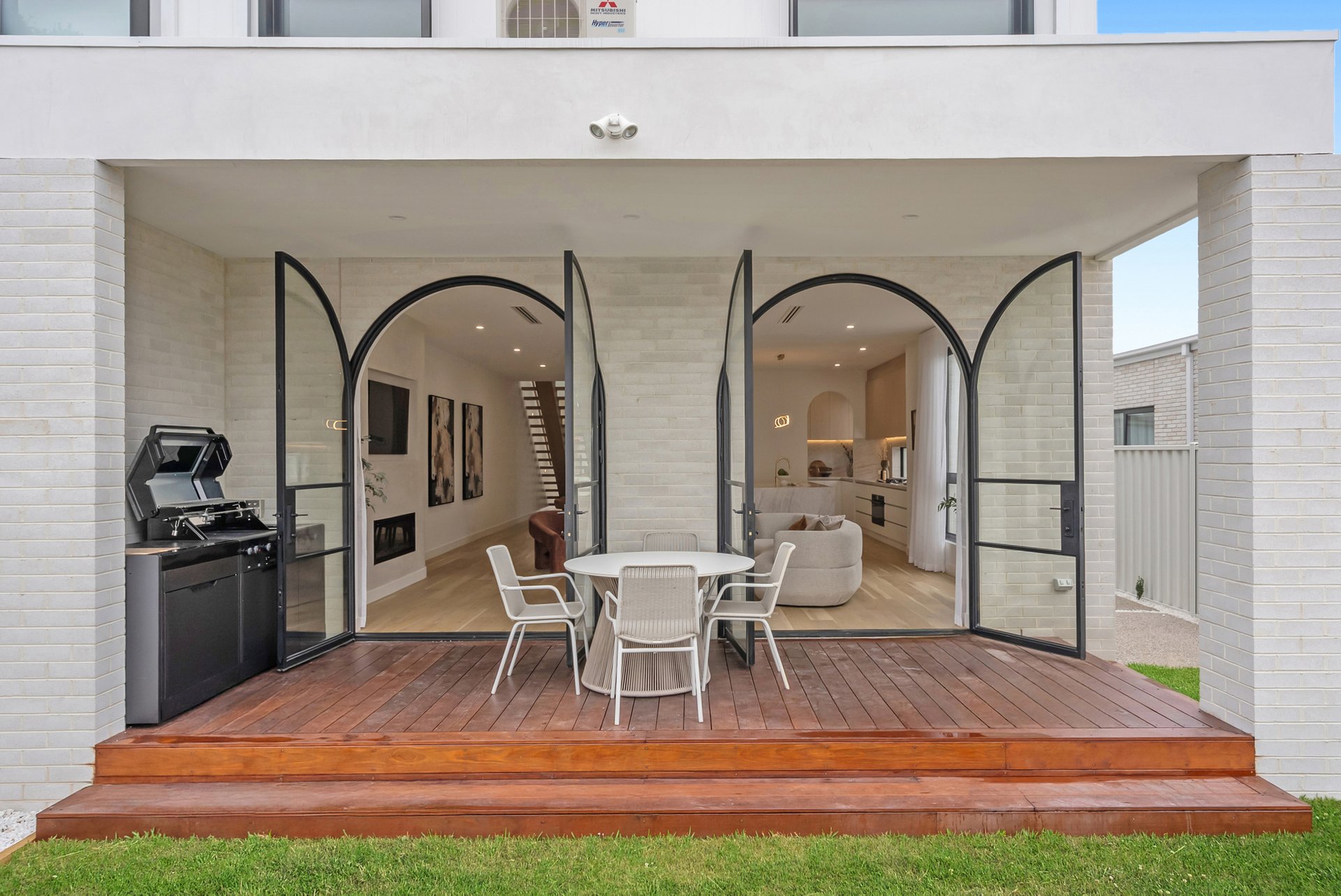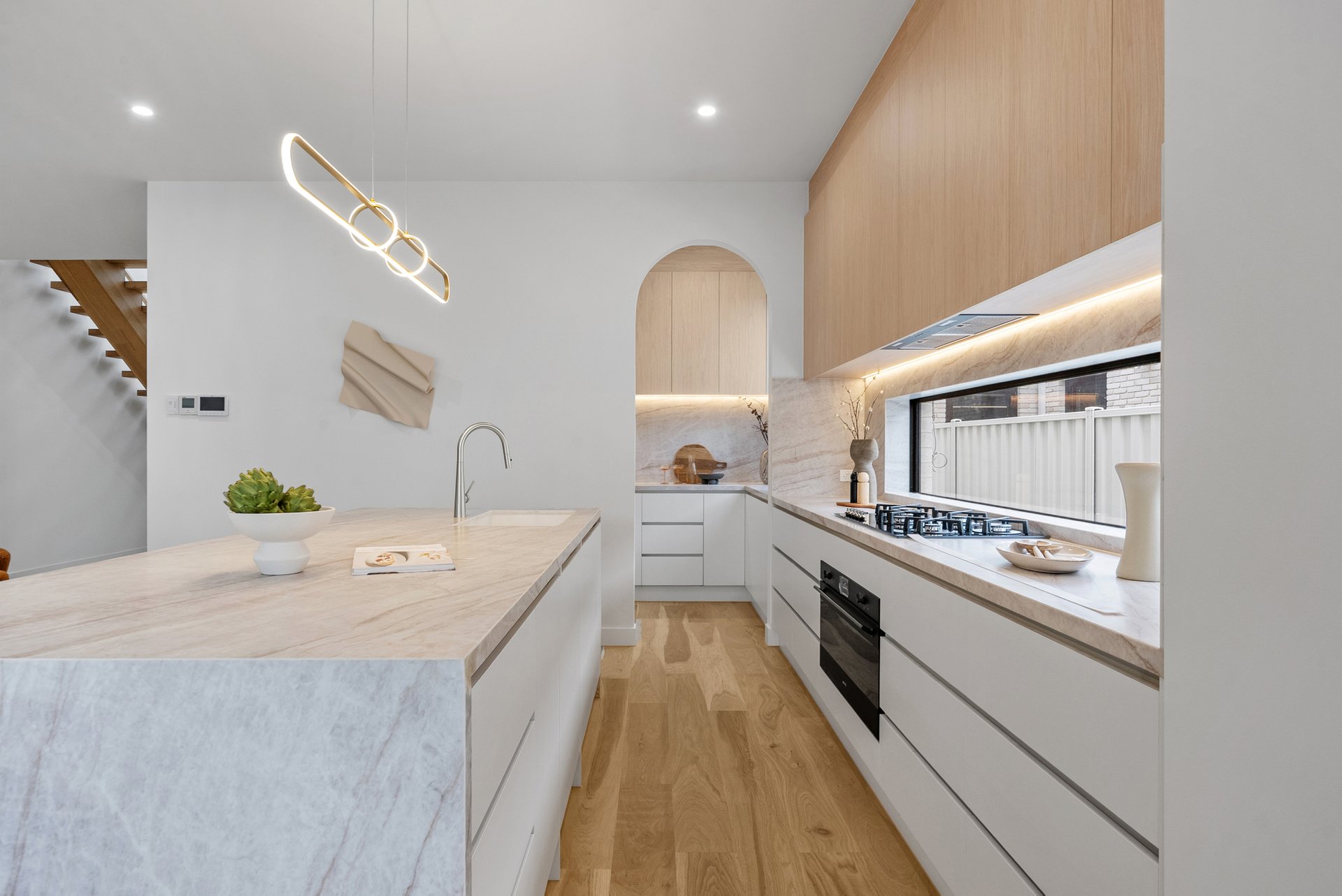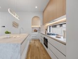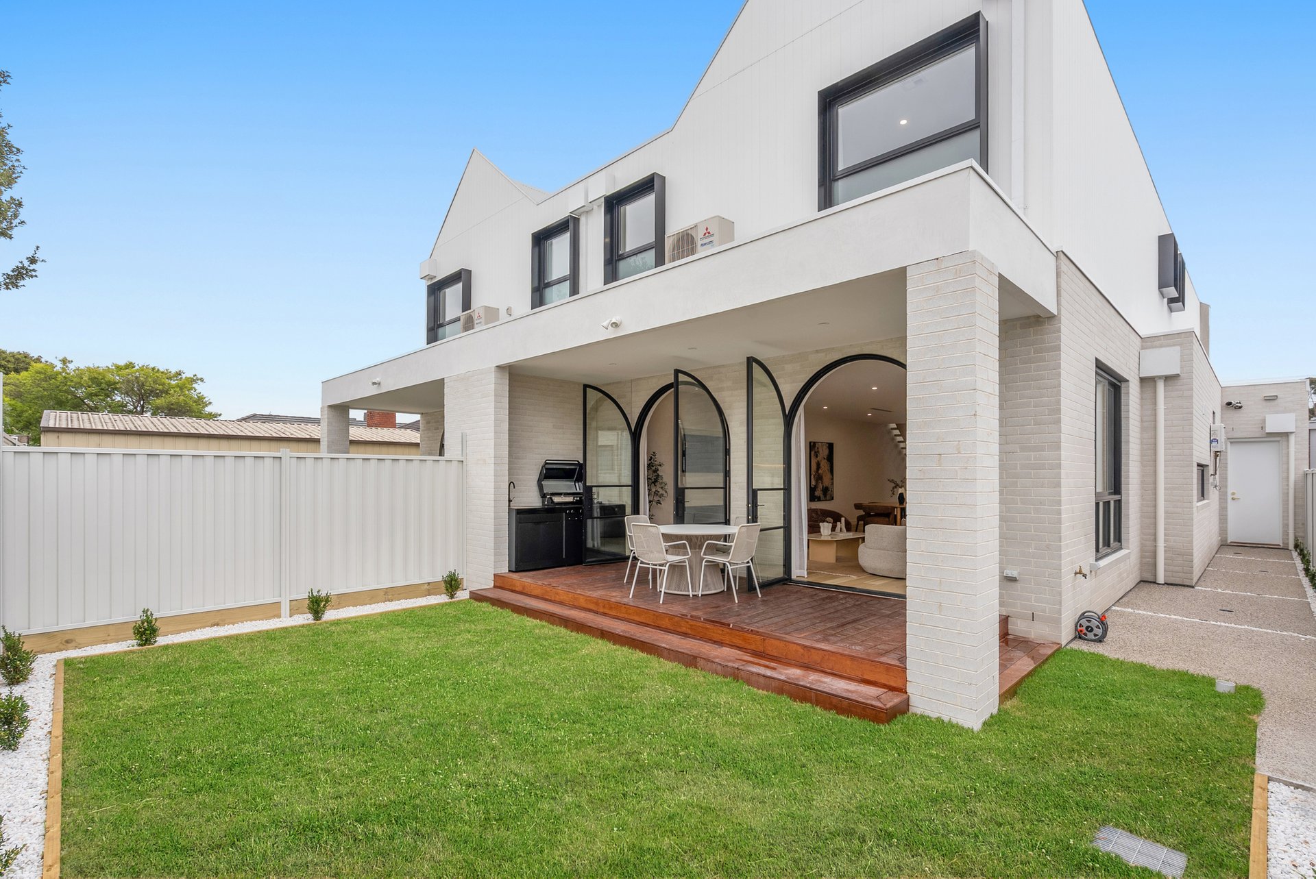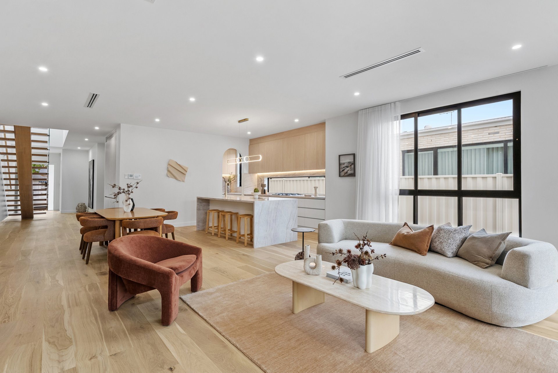 Architecturally and meticulously, this striking brand new two level brick residence delivers contemporary family living defined by curves, arches, and premium finishes throughout. Designed to prioritise space, light, and connection, the home offers a seamless balance of sophistication and everyday comfort. Positioned at the rear of the home, the expansive open plan living zone is the heart of the residence. Two elegant arch doors open directly to the backyard, enhancing the indoor outdoor flow and inviting natural light into the space. Lighter timber flooring and crisp white walls create a bright, airy atmosphere, while a custom inlaid television cabinet with a gas log fireplace beneath adds a refined focal point. The generous proportions allow flexibility for any seating arrangement, making it ideal for relaxed family living. The dining area sits adjacent to the kitchen yet remains adaptable within the expansive layout. As the first space encountered down the wide hallway, it sets the tone for open and connected family life, offering ample room for large gatherings and everyday meals. The newly appointed kitchen is a standout feature. Equipped with SMEG induction cooktop and oven, stunning marble styled stone benchtops, and a waterfall edge island that doubles as a breakfast bar, it combines practicality with elegance. A feature pendant light sits above the island, while a graceful archway leads through to the butlers pantry, offering additional preparation space and storage. Stone benchtops continue throughout the home, reinforcing the cohesive, high end finish. Accommodation comprises four spacious bedrooms, two with private ensuites. Each bedroom is fitted with neutral cream carpeting and sheer curtains, creating a calm and sophisticated retreat. The master suite is particularly impressive, showcasing a vaulted ceiling and a dramatic full wall window that floods the room with light. A generous walk in robe leads to a luxurious ensuite finished with finger tiling, floor to ceiling tiles, a freestanding bathtub, double stone vanity, walk in shower with niche and LED strip lighting, and a roof mounted waterfall rain shower head. The central bathrooms continue the sleek design language, featuring waterfall showers, frameless shower screens, LED strip lighting, and calming floor to ceiling tiling. A beautiful floating timber staircase connects the levels, reinforcing the architectural appeal. Reverse cycle heating and cooling ensures year round comfort, while LED downlights, sheer curtains, and refined detailing elevate the interior to a truly modern standard. Outdoor entertaining is equally impressive, with a rear deck perfect for barbecues or relaxed evenings, complemented by large arched windows that echo the home’s distinctive design. The location offers excellent lifestyle convenience. Enjoy close proximity to Altona Village, Altona Gate, Borrack Square, and Yarraville Square Shopping Centre for shopping and dining options. Transport is effortless with Seaholme and Altona Train Stations nearby and easy access to the M1 Freeway. Families are well supported with zoning for Altona North Primary School and Bayside P 12 College, along with Emmanuel College St Paul’s Campus close by. Outdoor recreation is within easy reach at AW Langshaw Reserve and the beautiful Altona Beach. We donate a portion of our fee from every property transaction to the Woodards Foundation to support people experiencing homelessness, family violence and social isolation.