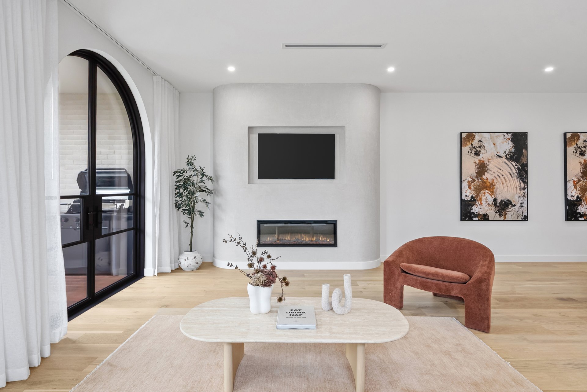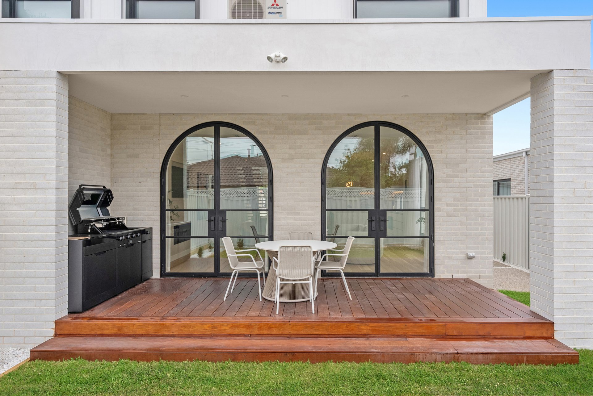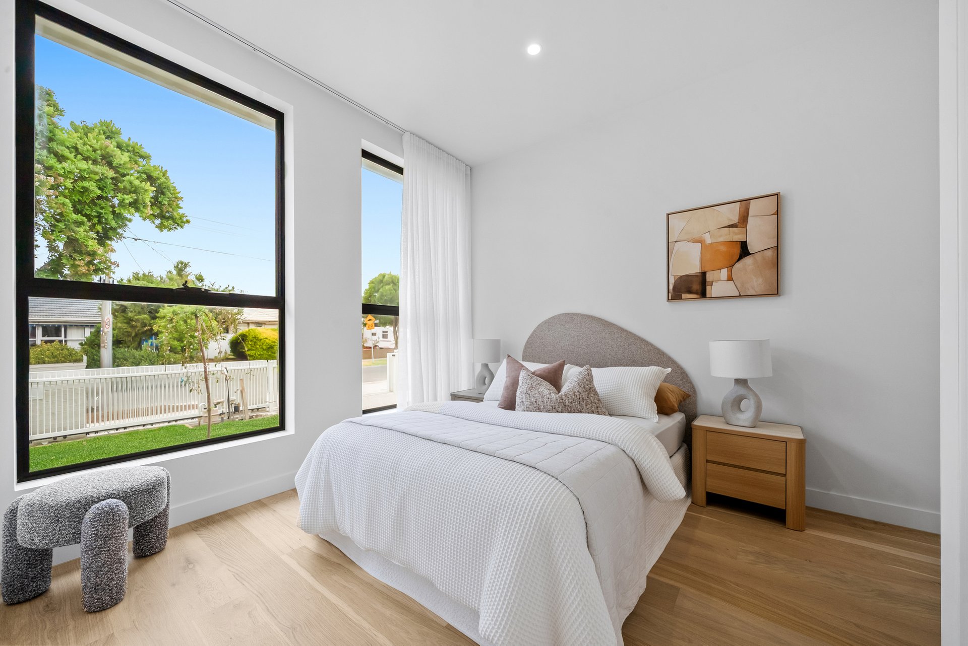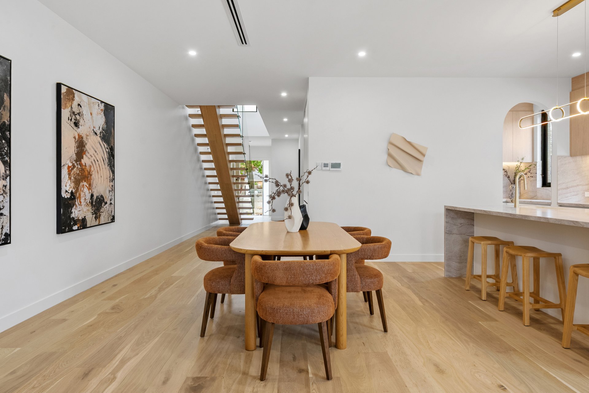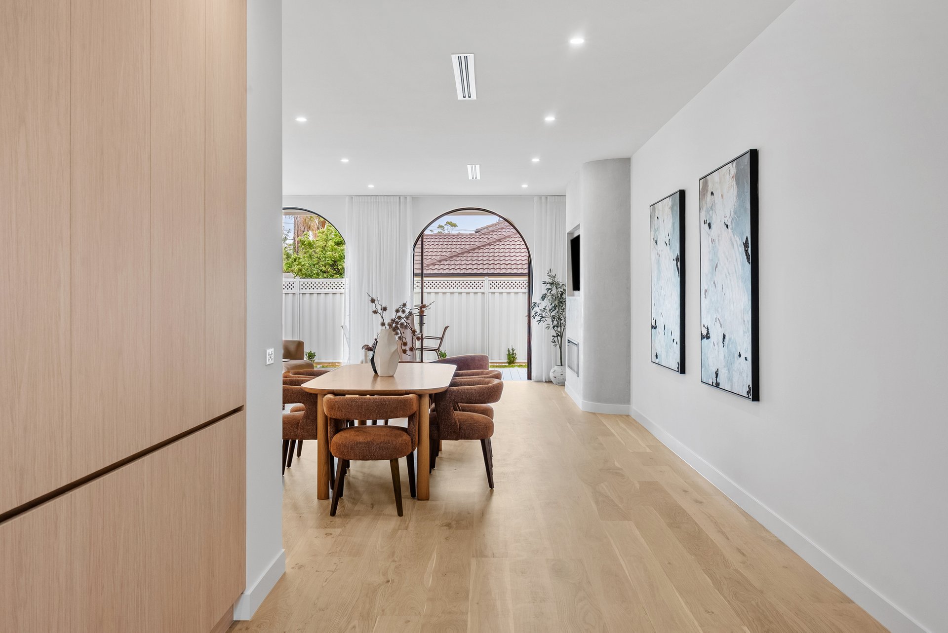 Architecturally and meticulously, this striking brand new two level brick residence delivers contemporary family living defined by curves, arches, and premium finishes throughout. Designed to prioritise space, light, and connection, the home offers a seamless balance of sophistication and everyday comfort. Positioned at the rear of the home, the expansive open plan living zone is the heart of the residence. Two elegant arch doors open directly to the backyard, enhancing the indoor outdoor flow and inviting natural light into the space. Lighter timber flooring and crisp white walls create a bright, airy atmosphere, while a custom inlaid television cabinet with a gas log fireplace beneath adds a refined focal point. The generous proportions allow flexibility for any seating arrangement, making it ideal for relaxed family living. The dining area sits adjacent to the kitchen yet remains adaptable within the expansive layout. As the first space encountered down the wide hallway, it sets the tone for open and connected family life, offering ample room for large gatherings and everyday meals. The newly appointed kitchen is a standout feature. Equipped with SMEG induction cooktop and oven, stunning marble styled stone benchtops, and a waterfall edge island that doubles as a breakfast bar, it combines practicality with elegance. A feature pendant light sits above the island, while a graceful archway leads through to the butlers pantry, offering additional preparation space and storage. Stone benchtops continue throughout the home, reinforcing the cohesive, high end finish. Accommodation comprises four spacious bedrooms, two with private ensuites. Each bedroom is fitted with neutral cream carpeting and sheer curtains, creating a calm and sophisticated retreat. The master suite is particularly impressive, showcasing a vaulted ceiling and a dramatic full wall window that floods the room with light. A generous walk in robe leads to a luxurious ensuite finished with finger tiling, floor to ceiling tiles, a freestanding bathtub, double stone vanity, walk in shower with niche and LED strip lighting, and a roof mounted waterfall rain shower head. The central bathrooms continue the sleek design language, featuring waterfall showers, frameless shower screens, LED strip lighting, and calming floor to ceiling tiling. A beautiful floating timber staircase connects the levels, reinforcing the architectural appeal. Reverse cycle heating and cooling ensures year round comfort, while LED downlights, sheer curtains, and refined detailing elevate the interior to a truly modern standard. Outdoor entertaining is equally impressive, with a rear deck perfect for barbecues or relaxed evenings, complemented by large arched windows that echo the home’s distinctive design. The location offers excellent lifestyle convenience. Enjoy close proximity to Altona Village, Altona Gate, Borrack Square, and Yarraville Square Shopping Centre for shopping and dining options. Transport is effortless with Seaholme and Altona Train Stations nearby and easy access to the M1 Freeway. Families are well supported with zoning for Altona North Primary School and Bayside P 12 College, along with Emmanuel College St Paul’s Campus close by. Outdoor recreation is within easy reach at AW Langshaw Reserve and the beautiful Altona Beach. We donate a portion of our fee from every property transaction to the Woodards Foundation to support people experiencing homelessness, family violence and social isolation.