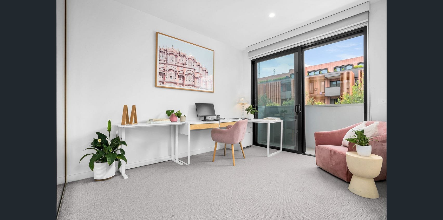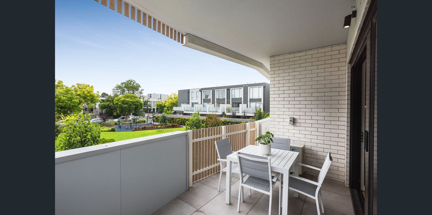 Luxe master bedroom, looking out to well maintained park, boasts walk through robe to designer bathroom, featuring on trend floor to ceiling tiles. Second bedroom is well appointed with built in robe and large sliding stacker doors out to balcony.