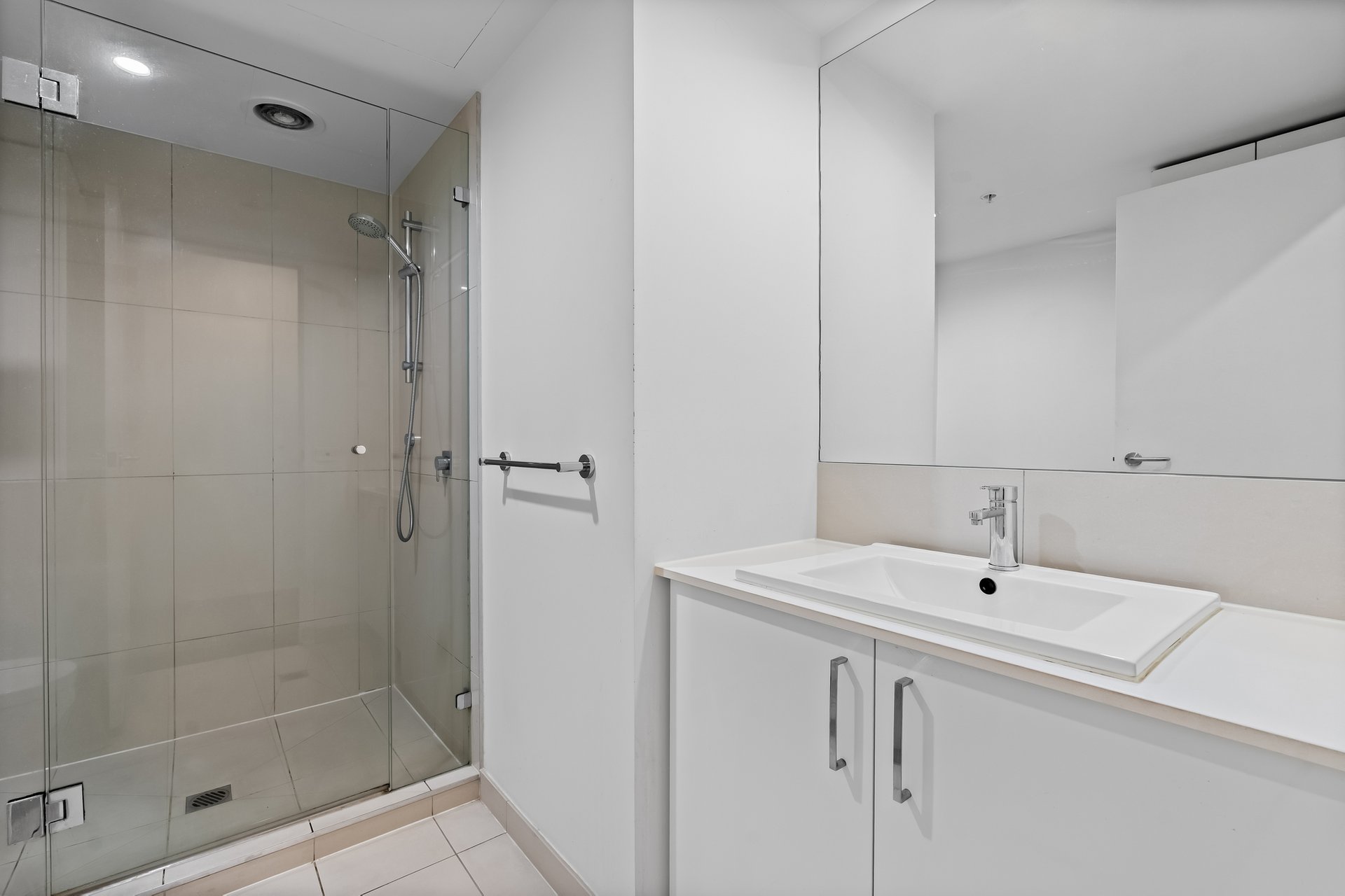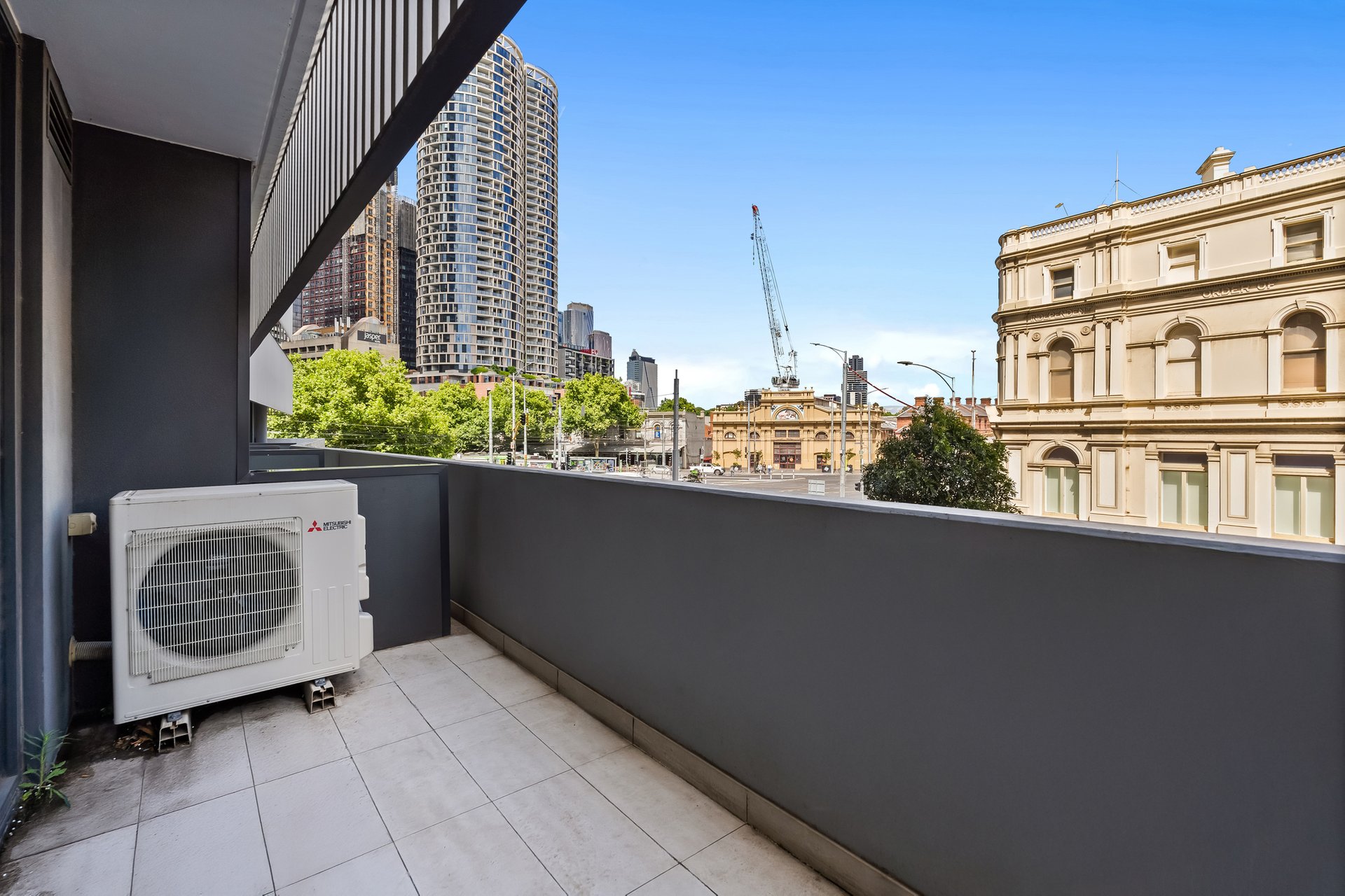 The open plan living, dining, and kitchen zone flows seamlessly to a balcony that overlooks the market, offering a front row seat to one of the city’s most vibrant neighbourhoods.Inside, comfort meets practicality with a tidy kitchen featuring a gas stove, ample overhead and under bench storage, and a split system ensuring year round climate control. The main bedroom includes a built in wardrobe and sliding glass doors for privacy, while the second bedroom provides flexibility as a study. The modern bathroom features tiled floors, framed shower, laundry facilities, and storage space.