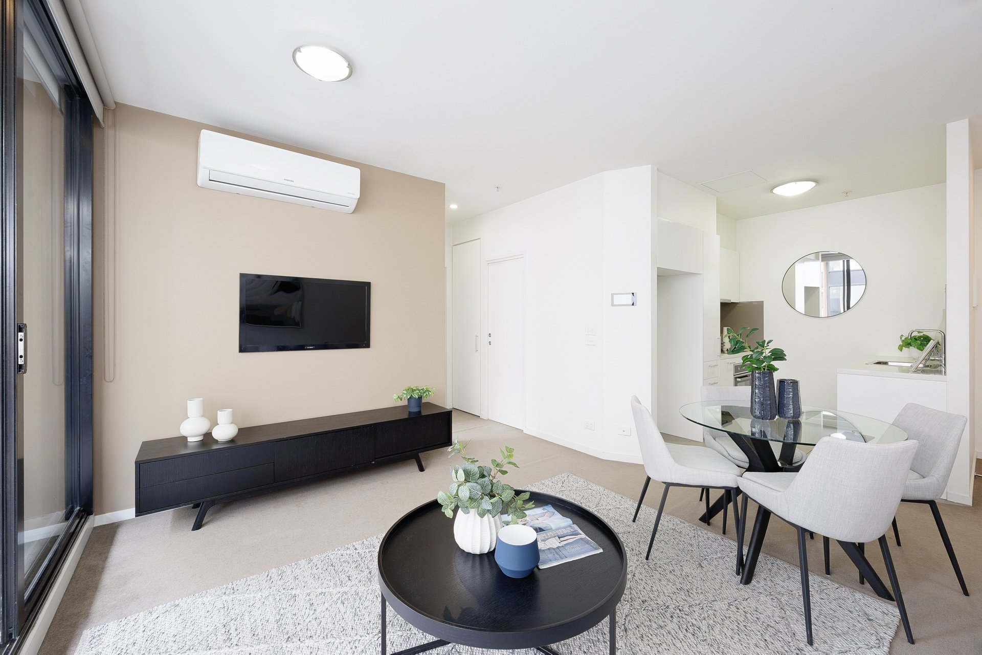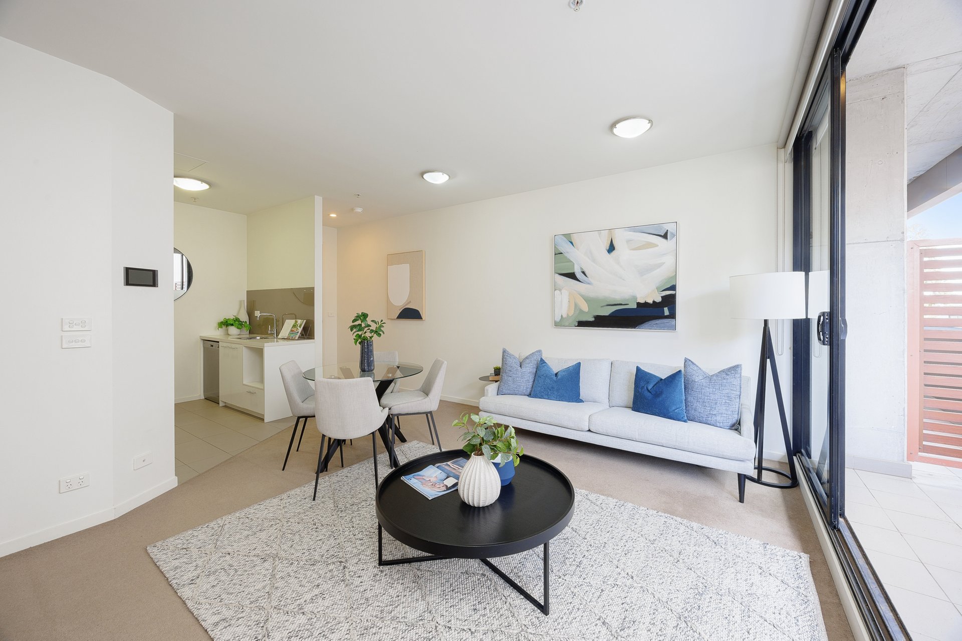 The kitchen features stainless steel cooking appliances, integrated dishwasher, stone bench tops and glass splashbacks. The generous bedrooms – main with study nook - are completed with floor to ceiling, mirrored built-in robes and a sleek bathroom is fully tiled with full size bath and toilet.